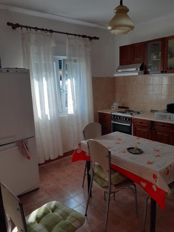 Apartman se nalazi na najboljoj poziciji u Arbaniji ,smješten na prvom katu obiteljske kuce.Samostalni ulaz u apartman sa dvije spavace sobe,kuhinjom sa pratecim sadrzajem. Kupaonicom,dnevnom sobom,prostranom teracom s otvorenim pogledom na more. Apartman ima osigurano parkirno mjesto i direktan ulaz u more.