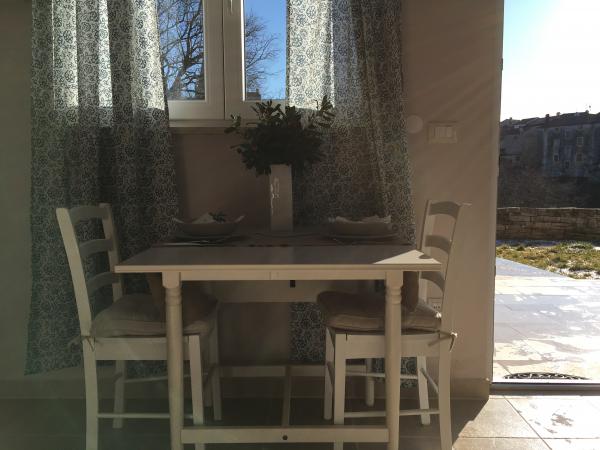 Apartman Dulcis Domus smješten je u naselju Bale između Rovinja i Pule. Mirno mjesto udaljeno do Rovinja 13 kilometara, od Pule 15 km. Na obali mora koje je udaljeno 6, 6 kilometara nalaze se dva suvremeno uređena kampa sa plažama. Za goste Apartmana Dulcis Domus ulaz u kampove je besplatan. Sam apartman ima 35 m2, terasu sa vrtnim namještajem, poseban ulaz i besplatan parking odmah uz apartman na javnom parkingu. Apartman je suvremeno opremljen, ima satelitsku TV i besplatan WIFI. Za sve dodatne usluge i informacije domaćini su uvijek raspoloživi za pomoć. Apartman je smješten u prizemlju te ima pogled na stari grad Bale.