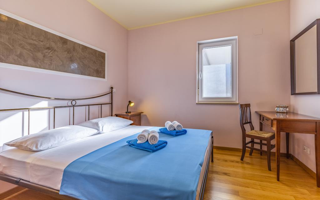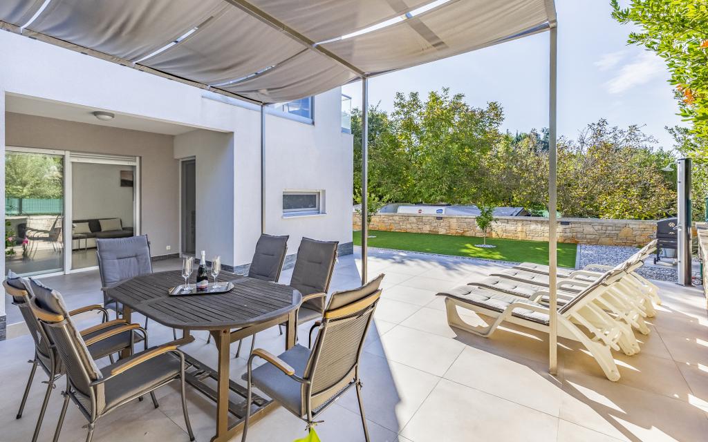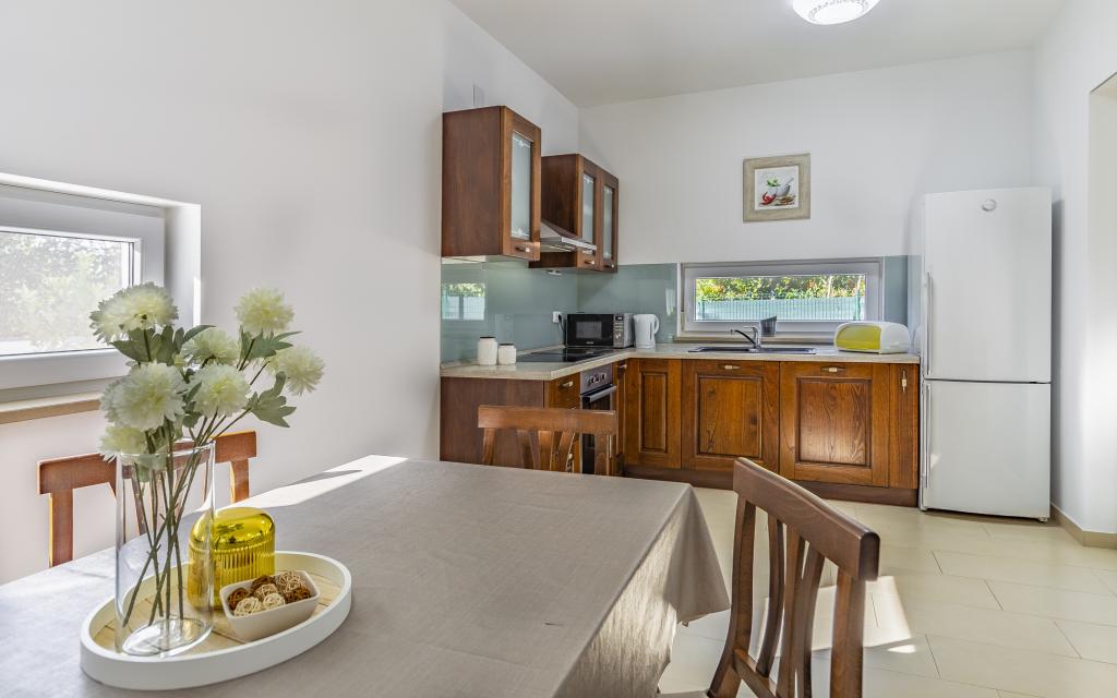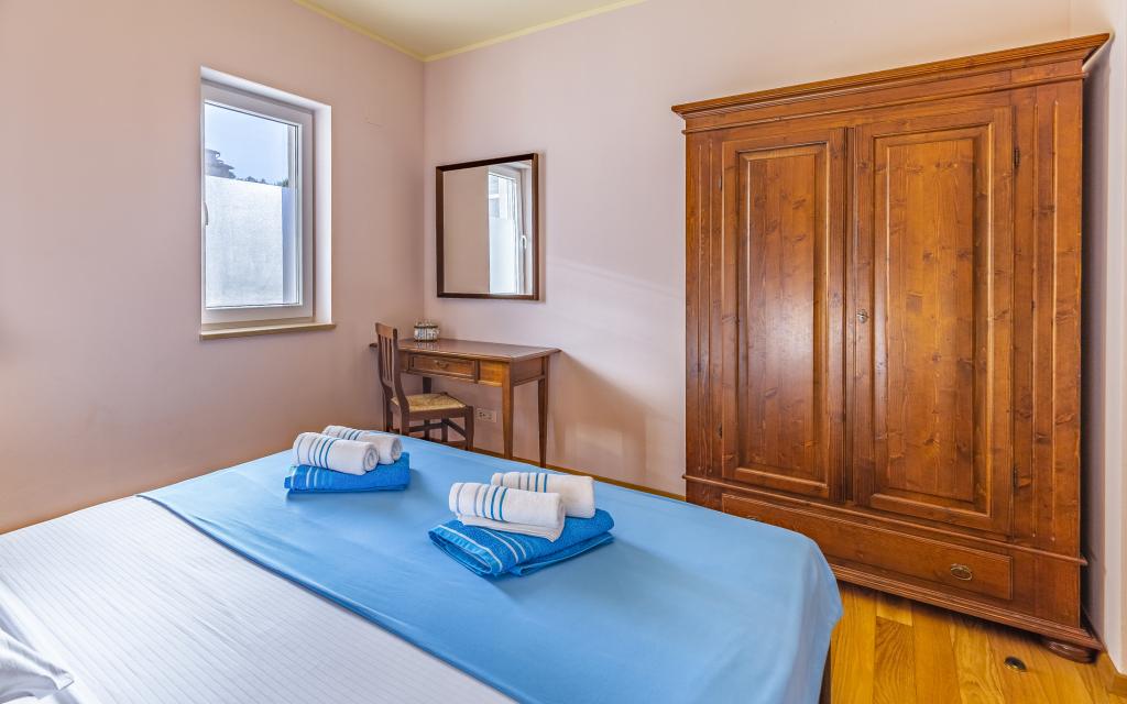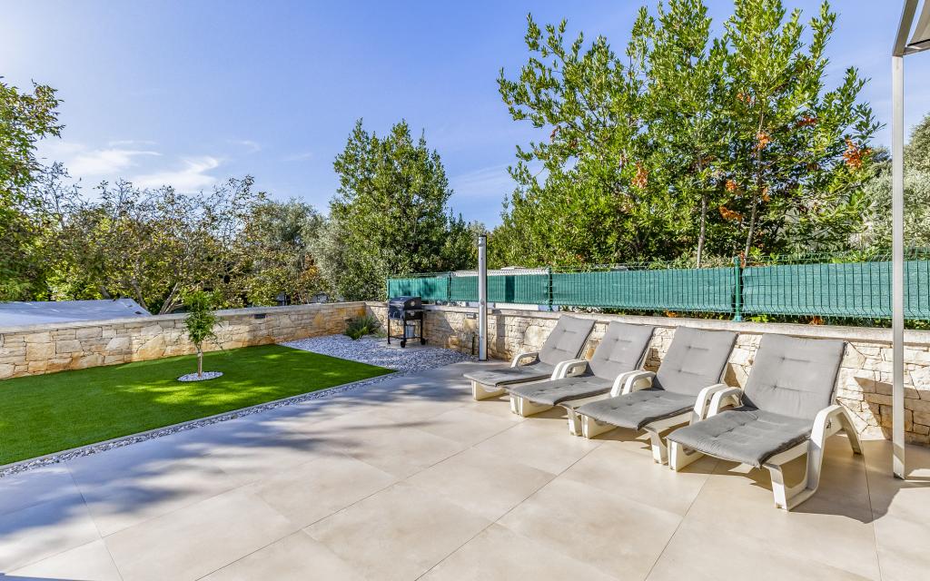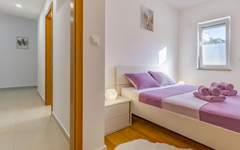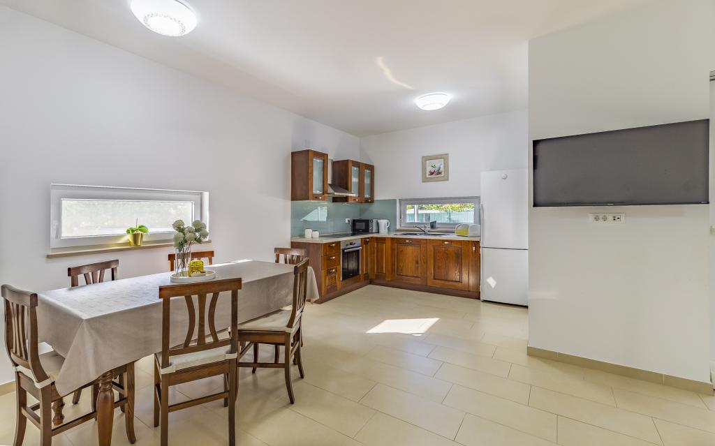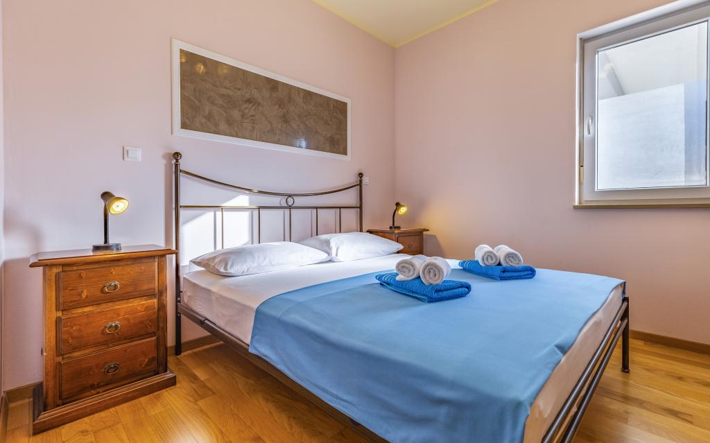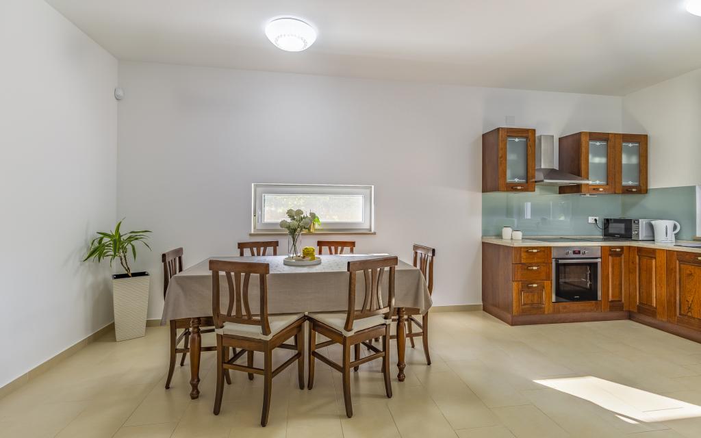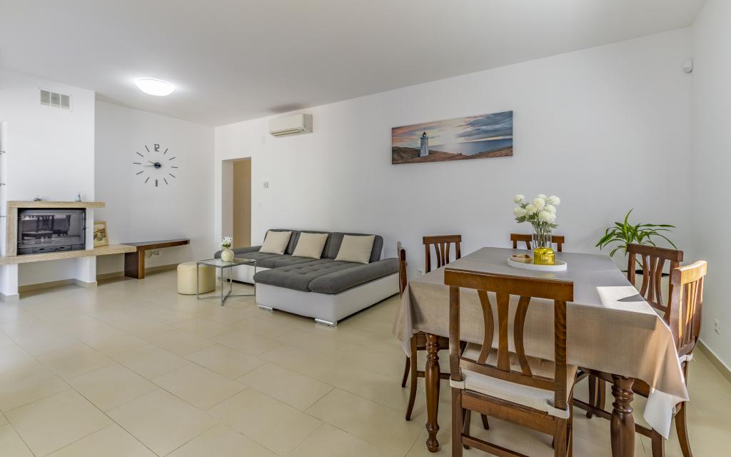 Potpuno i nadstandardno namješten apartman (80 m2) na izvrsnoj lokaciji u mirnom dijelu Banjola, samo 5 minuta (300 m) hoda do najljepših plaža na lokaciji. Apartman se nalazi u prizemlju stambene zgrade sa samo tri stana. Apartman ima vlasnički vrt (100 m2) sa terasom, stolom, ležaljkama, vanjskim tušem i roštiljem koji omogućava ugodno druženje uz puno privatnosti te je posebno pogodan za obitelji s djecom. Uz zgradu se nalazi privatno parkiralište s kojeg se ulazi direktno na vrt i terasu. Vrt je potpuno renoviran 2024. godine. Cijeli objekt je zaštićen sigurnosnom ogradom (pristup karticom). Apartman ima 2 spavaće sobe s bračnim krevetima, 2 kupaonice s WC-om i tuš kabinom, prostrani dnevni boravak s rastezljivim kaučom, blagovaonicom i kuhinjom. Apartman je klimatiziran i grijan zimi (podno grijanje) te ima unutarnji kamin pa je pogodan i za boravak u hladnijim mjesecima jeseni i zime. U neposrednoj blizini apartmana nalaze se brojni barovi i restorani, kao i uređene st