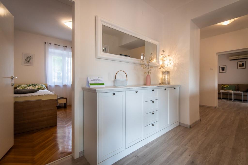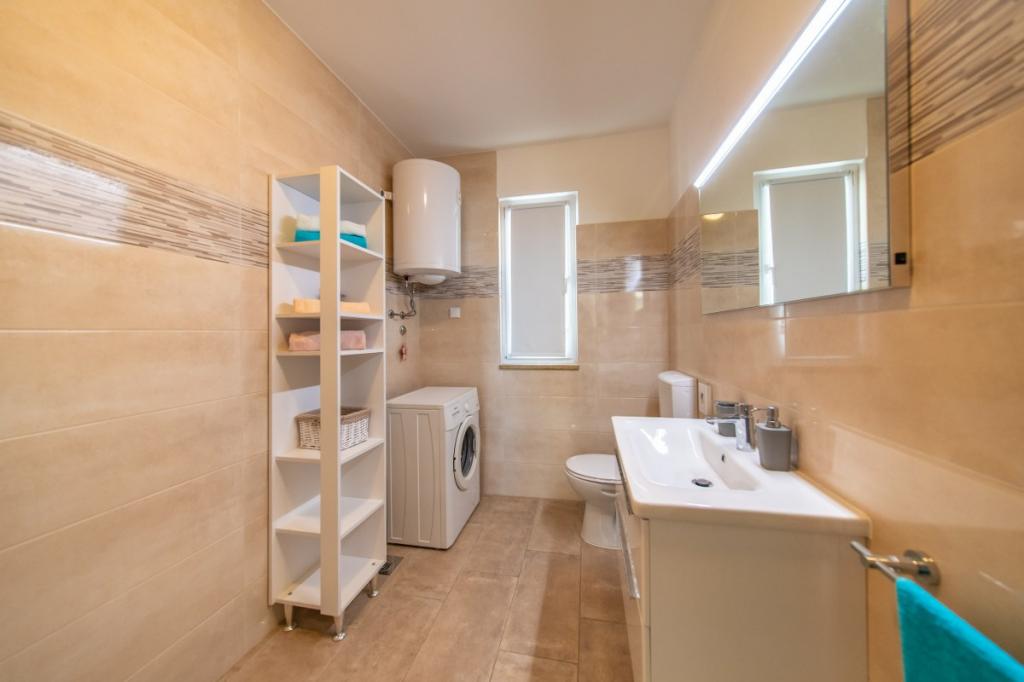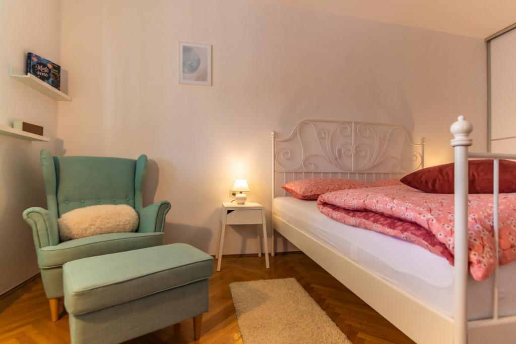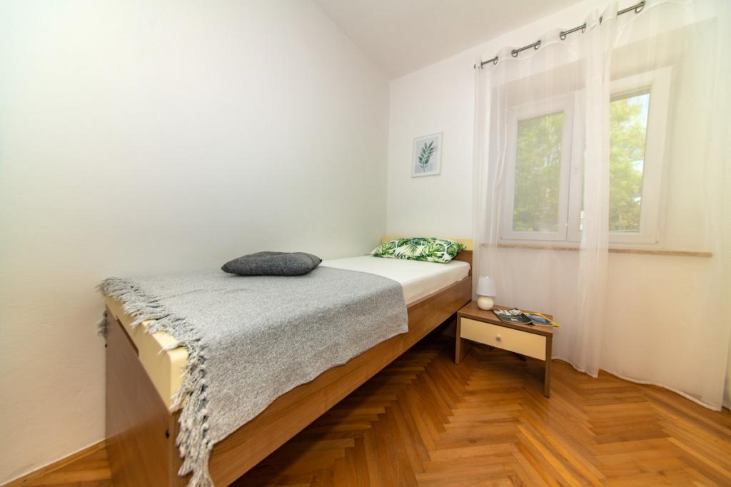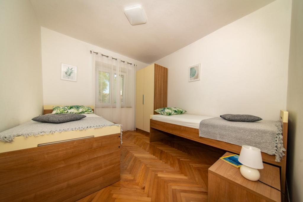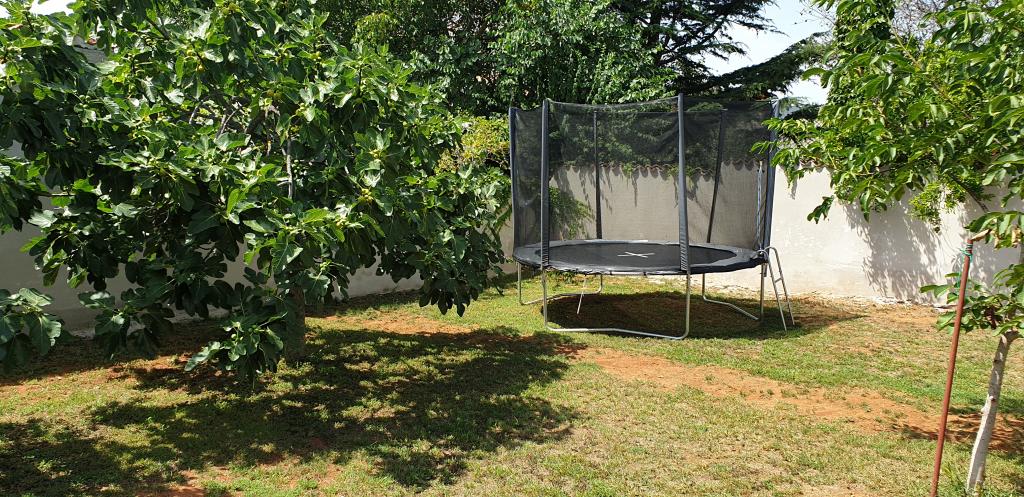Turistička pristojba je uključena u cijenu. Šaljemo pismenu potvrdu rezervacije (voucher)Opis smještaja: Spavaća soba 1 - 1 bračni krevet, Spavaća soba 2 - 2 kreveta za jednu osobu Zajednički prostori - 1 kauč na razvlačenje. Dvorište: Roštilj (plin) Terasa (40m2). Trampolin (3m), Vrt / dvorište Besplatno parkiralište u objektu. Dovoljno veliko za 4 vozila i/ili prikolicu za plovilo, bicikle i sl.