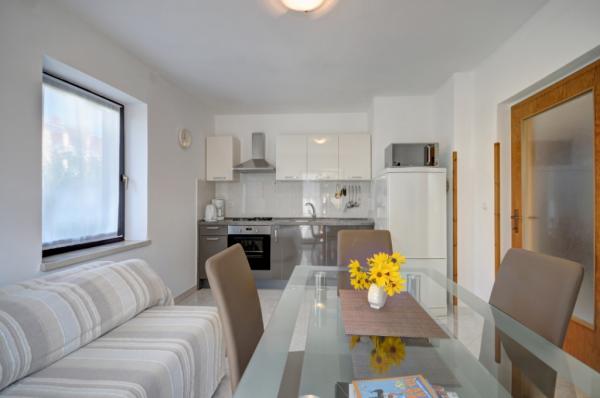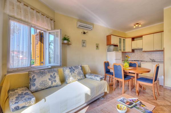 Pročitaj više Smještajne jediniceNa raspolaganju je posteljina (zamjena jednom tjedno), kuhinjske krpe i ručnici. U cijenu su uključeni svi uobičajeni troškovi - električna energija, plin, voda, korištenje mašine za pranje rublja (bez deterđenta). WiFi - bez naknade Dječji krevetić - bez naknade, uz prethodnu najavu Plaćanje: 30 % avansa prilikom rezervacije na bankovni račun 70 % na dolasku Za boravak kraći od 4 noćenja, cijena se uvećava za 30 %. Depozit: 100 eura Dolazak: nakon 15 sati Odlazak: do 10 sati