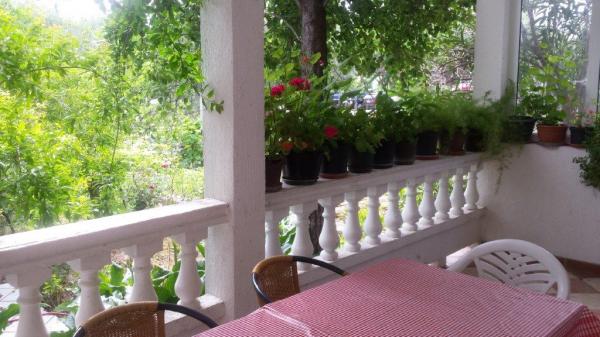 Objekt u mirnom dijelu Barbata, tri minute šetnje do plaže. U kući se nalaze dva velika apartmana sa terasama površine oko 20 metara kvadratnih okružene zelenilom mediteranskog bilja. Parkirna mjesta osigurana, kao i upotreba roštilja. Prvi apartman je u prizemlju, 80m2. Uređen je u romantičnom Mediteranskom stilu. Kuhinja i blagavaonica su namještene sa puno ukusa, u Chabby chic stilu. Apartman odiše jednom umjetničkom notom. Drugi apartman je na prvom katu i veliki je 90m2, komforan i moderno uređen Prozračan je i pun svijetlosti. Sobe su uređene sa puno ljubavi i topline.