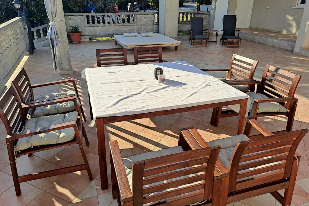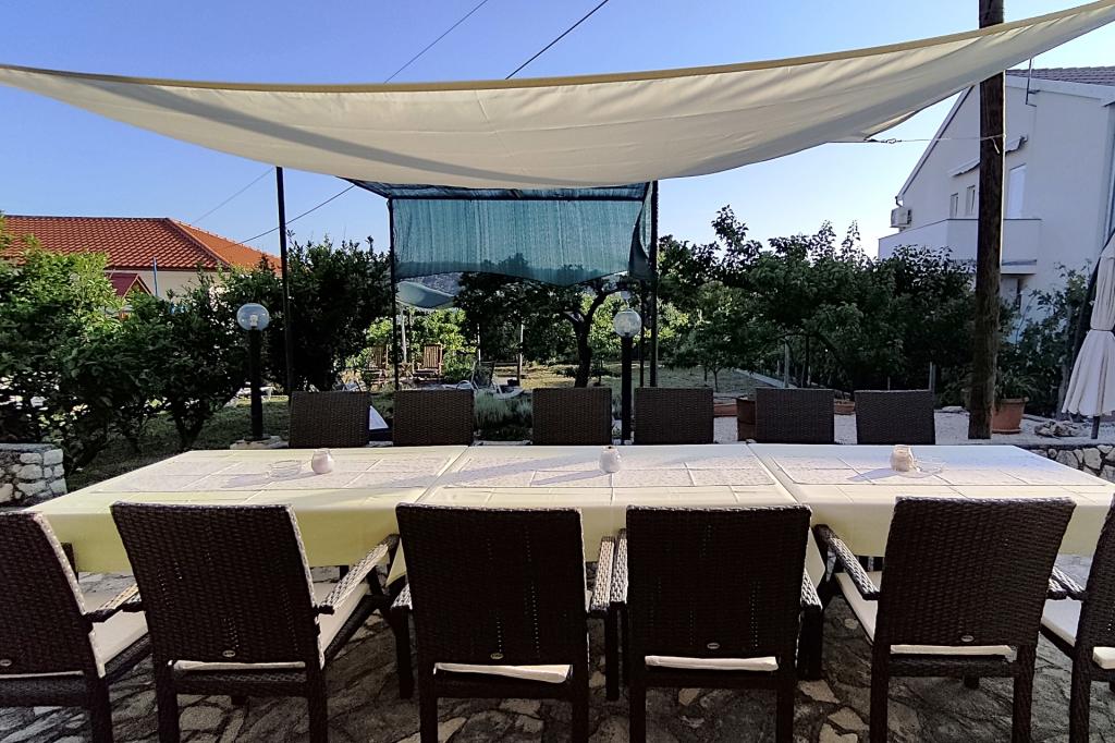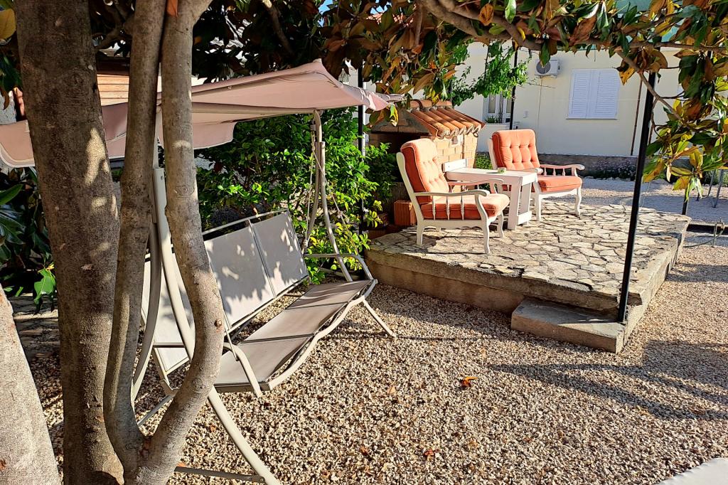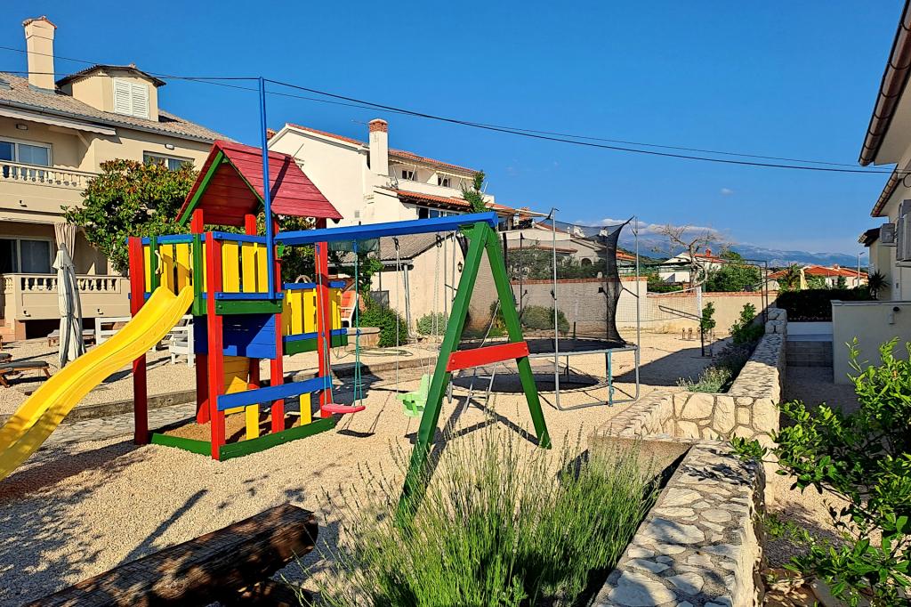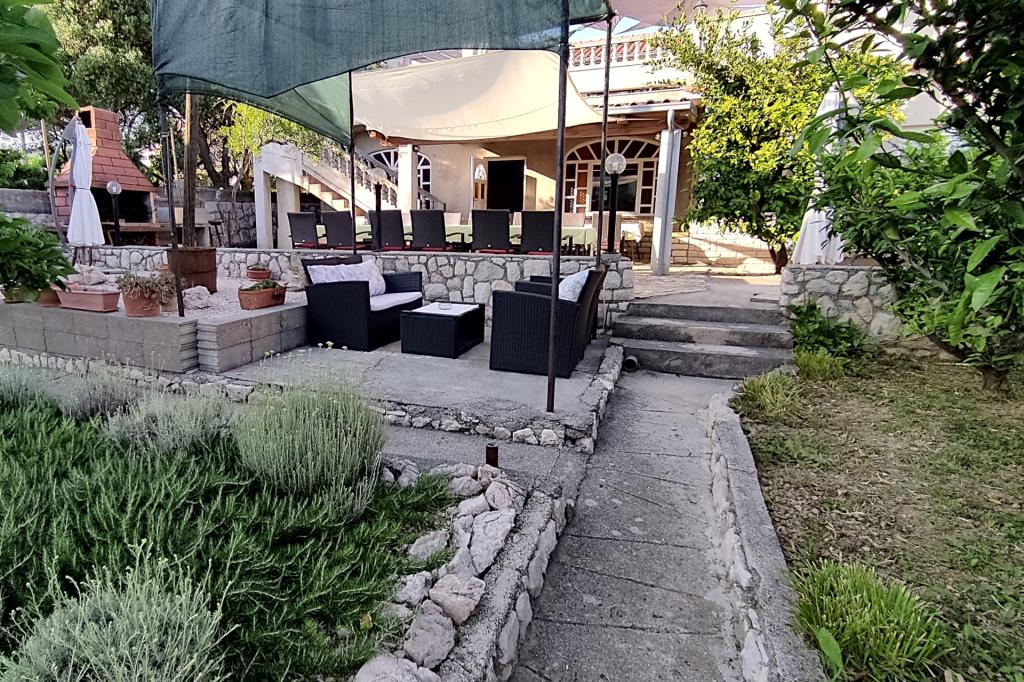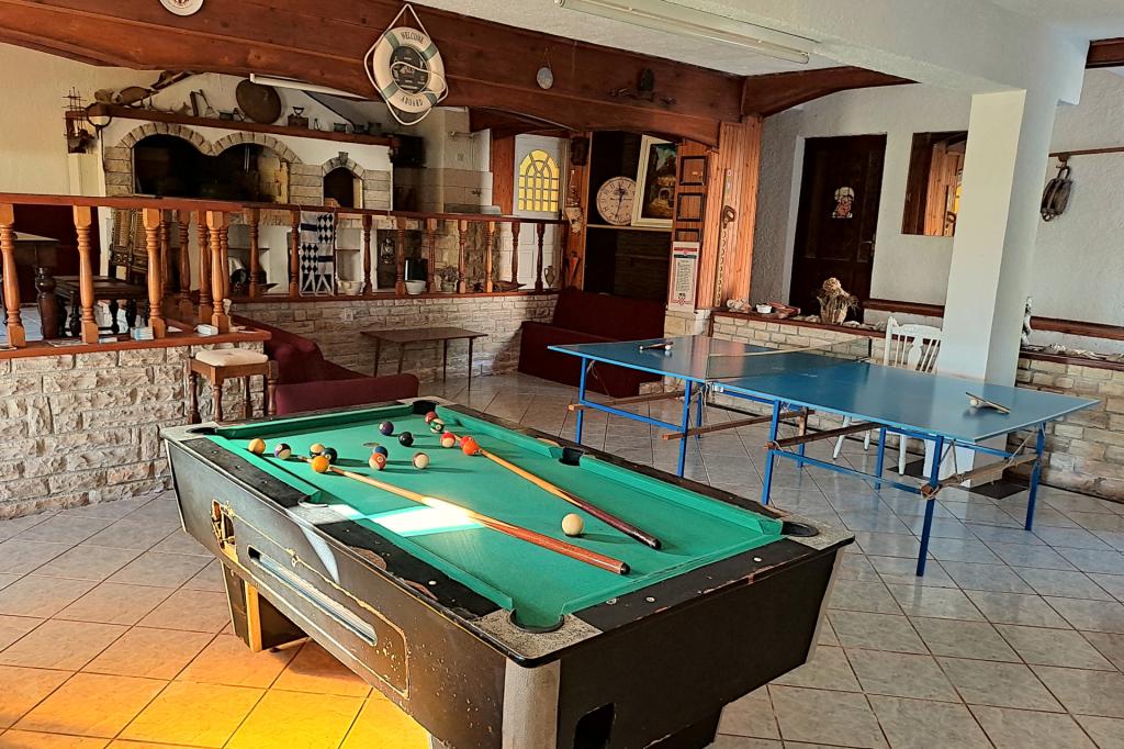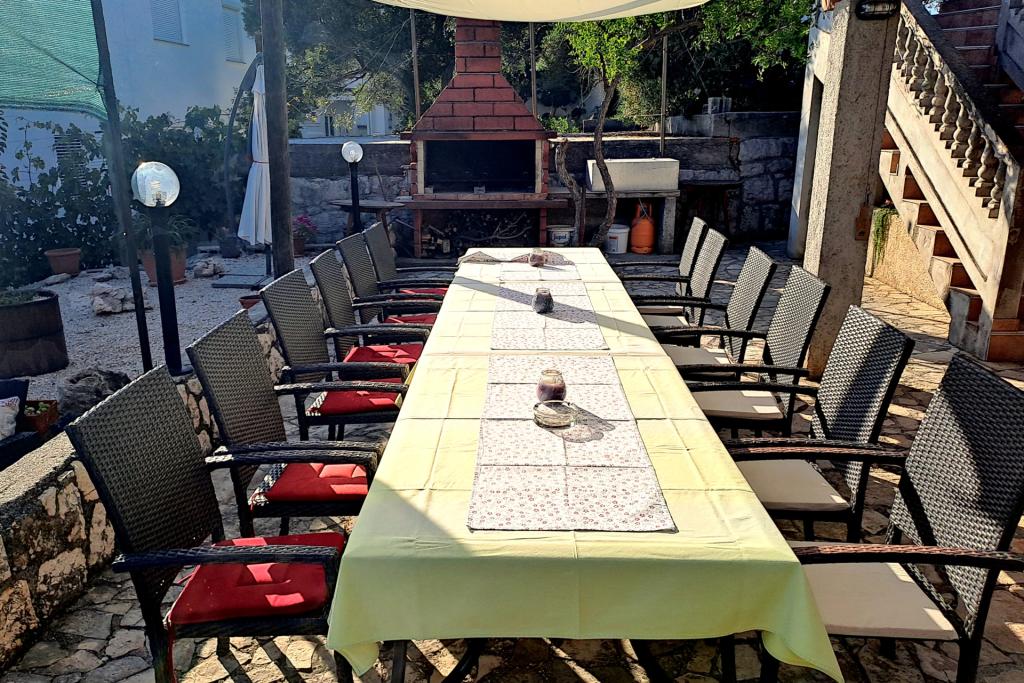 Vrtna terasa s roštiljem na drva i plin, vrtne garniture, suncobrani, druženja na otvorenom, samo vas čekaju! Nema ništa bolje od uživanja na otvorenom u finoj hrani i ugodnom društvu. Opustite se i uživajte u suncu na ležaljkama na terasi za sunčanje. Ako želite malo aktivnosti, u vrtu je igralište za djecu i odrasle. Tu su trampolin, badminton i zračna kuglana, a za vaše najmlađe članove ljuljačke, tobogan i pijesak za djecu. U zajedničkoj sobi nalazi se stolni tenis, bilijar, elektronski pikado, stolni nogomet i satelitska TV. 30 metara od kuće nalazi se mala plaža i besplatni privezi za brod na molu. Koristimo 5 vezova za brod. Brod morate najaviti prilikom rezervacije. Ako dođete s prikolicom i brodom, molimo vas da prvo parkirate brod i prikolicu kod krana. Na uskom prilazu do naše kuće nema mjesta za okretanje. Ograničenje odgovornosti: Ne preuzimamo nikakvu odgovornost za vezove i njihovo stanje. Vaša je odgovornost kao vlasnika plovila ispravno vezati plovilo.