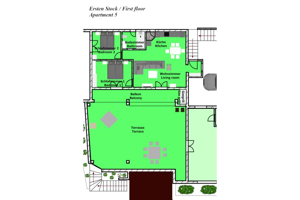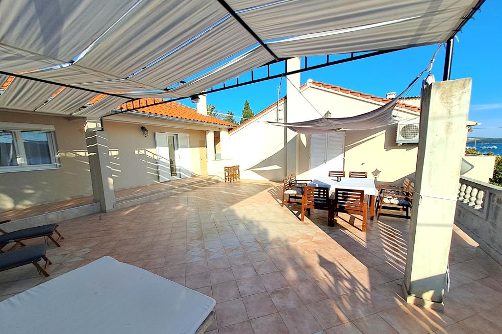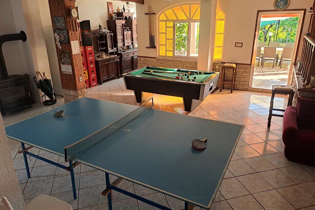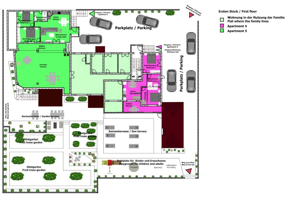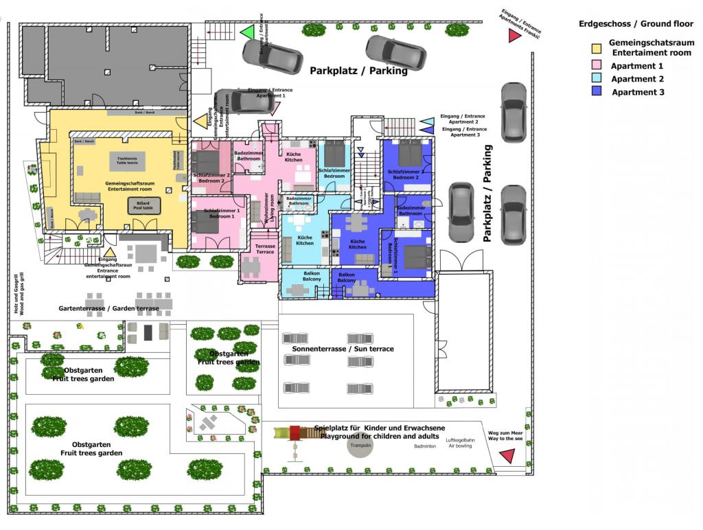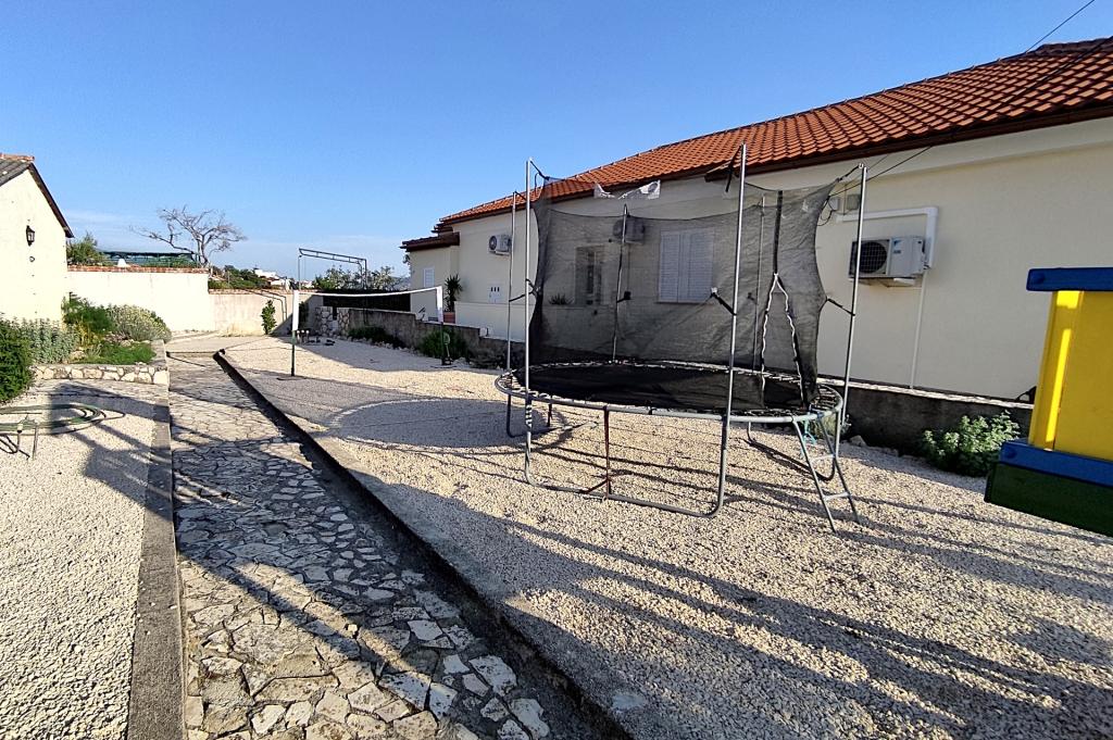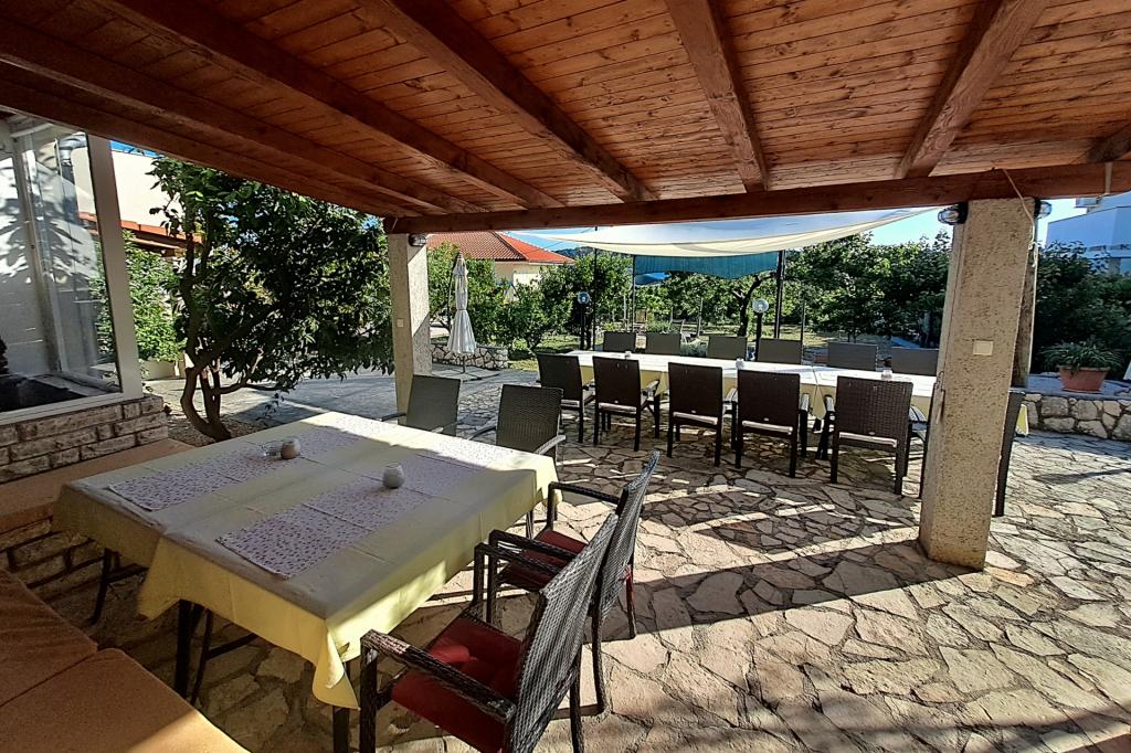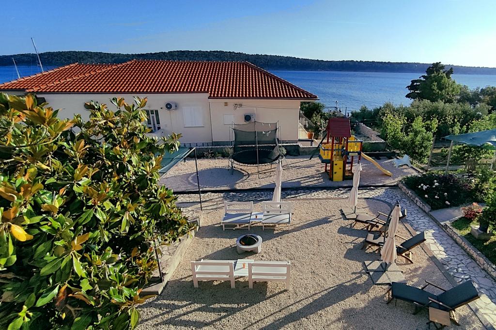 Vrtna terasa s roštiljem na drva i plin, vrtne garniture, suncobrani, druženja na otvorenom, samo vas čekaju! Nema ništa bolje od uživanja na otvorenom u finoj hrani i ugodnom društvu. Opustite se i uživajte u suncu na ležaljkama na terasi za sunčanje. Ako želite malo aktivnosti, u vrtu je igralište za djecu i odrasle. Tu su trampolin, badminton i zračna kuglana, a za vaše najmlađe članove ljuljačke, tobogan i pijesak za djecu. U zajedničkoj sobi nalazi se stolni tenis, bilijar, elektronski pikado, stolni nogomet i satelitska TV. 30 metara od kuće nalazi se mala plaža i besplatni privezi za brod na molu. Koristimo 5 vezova za brod. Brod morate najaviti prilikom rezervacije. Ako dođete s prikolicom i brodom, molimo vas da prvo parkirate brod i prikolicu kod krana. Na uskom prilazu do naše kuće nema mjesta za okretanje. Ograničenje odgovornosti: Ne preuzimamo nikakvu odgovornost za vezove i njihovo stanje. Vaša je odgovornost kao vlasnika plovila ispravno vezati plovilo.