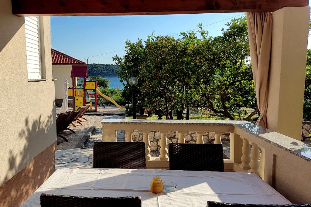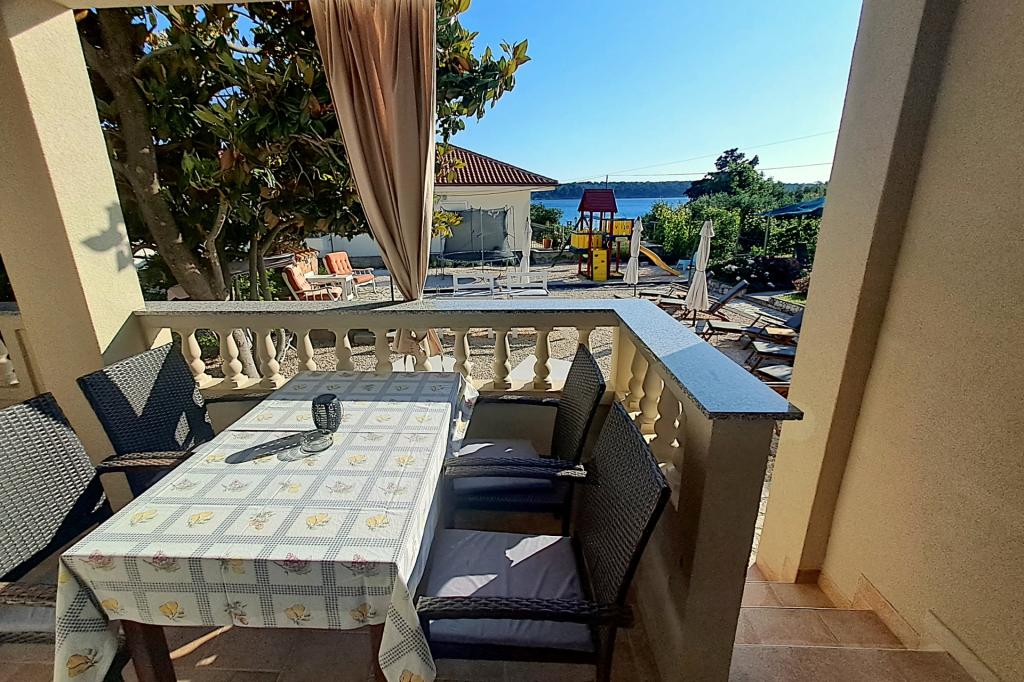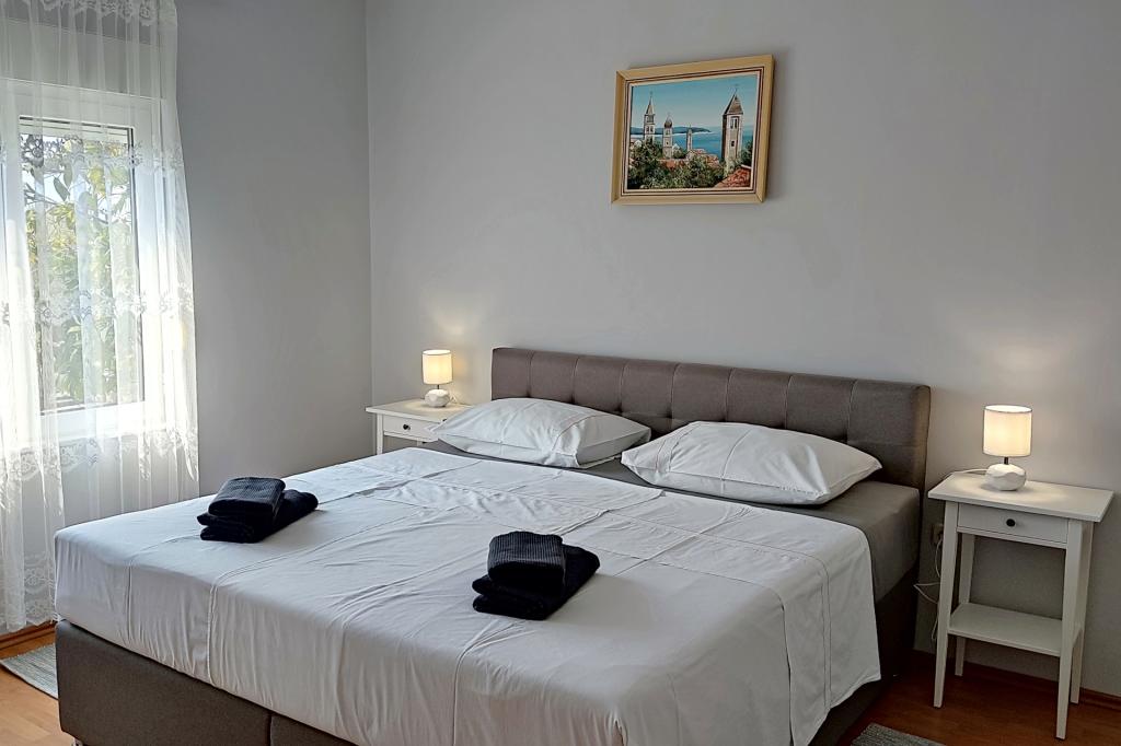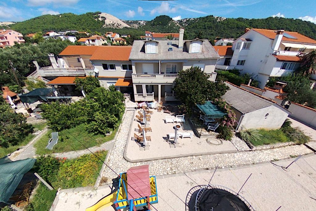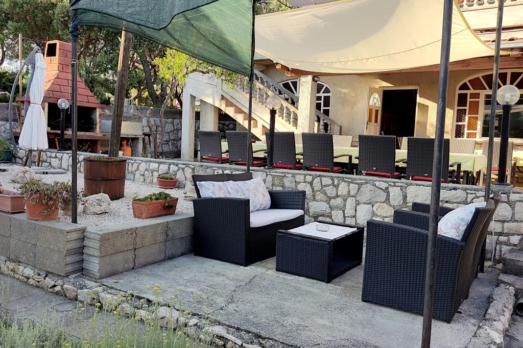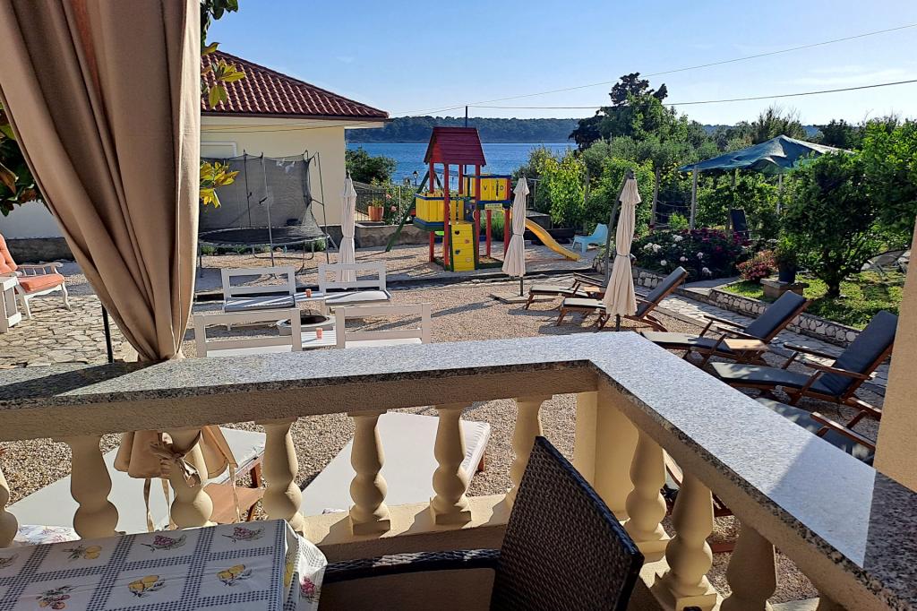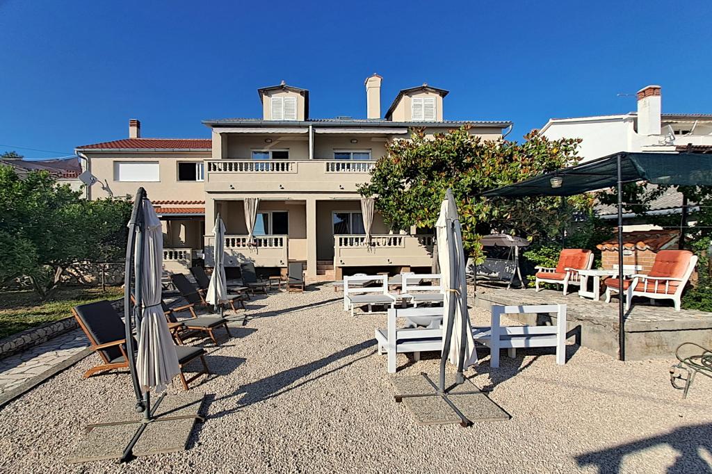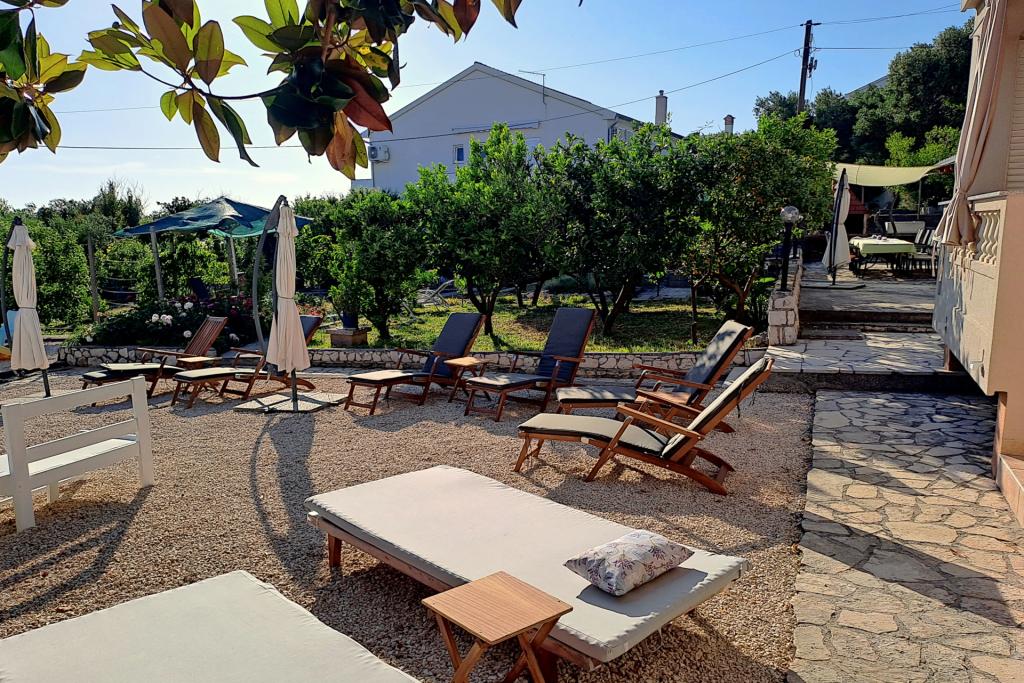 Apartmani 30 m od mora, besplatni vez za plovilo. Kuća u vlasništvu obitelji Snježana i Slobodan (Bobo) Frankić nalazi se u mjestu Barbat na otoku Rabu, 4 km od grada Raba i 6 km od trajekta. Izgrađena je kao jednokatnica u kojoj se nalaze pet apartmana za iznajmljivanje, zajednička prostorija za zabavu i jedan stan u kojem žive domaćini. Kuća se nalazi u mirnom dijelu, u prekrasnom stambenom naselju, udaljena je samo 30 metara od mora i okružena je parkiralištem, cvjetnjakom, voćnjakom, sunčanom terasom s ležaljkama, igralištem za djecu i odrasle i zajedničkom terasom. Postoje pet apartmana za 4 osobe: Apartman 1, Apartman 3, Apartman 4, Apartman 5 i jedan apartman za 2 osobe: Apartman 2. Dva apartmana za 4 osobe: Apartman 1, Apartman 3 i jedan apartman za 2 osobe: Apartman 2 nalaze se u prizemlju, a dva apartmana za četiri osobe: Apartman 4, Apartman 5 na katu (domaćini i unajmljeni Apartman 5 dijele terasu). U svim apartmanima je klima uređaj. Besplatan WiFi