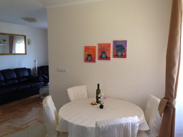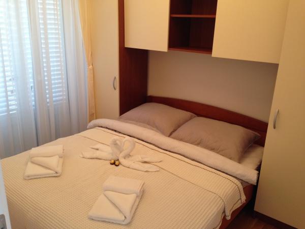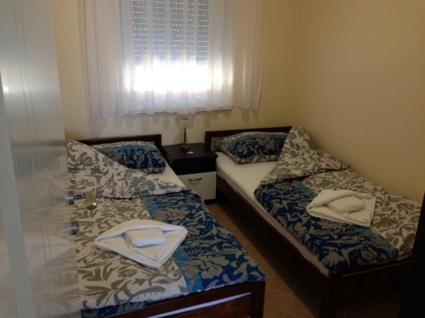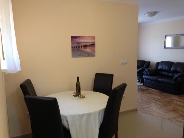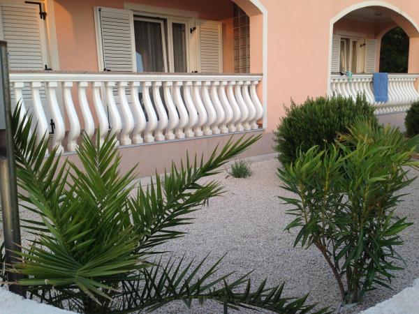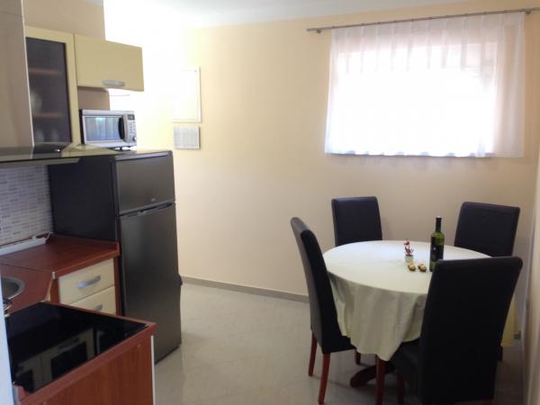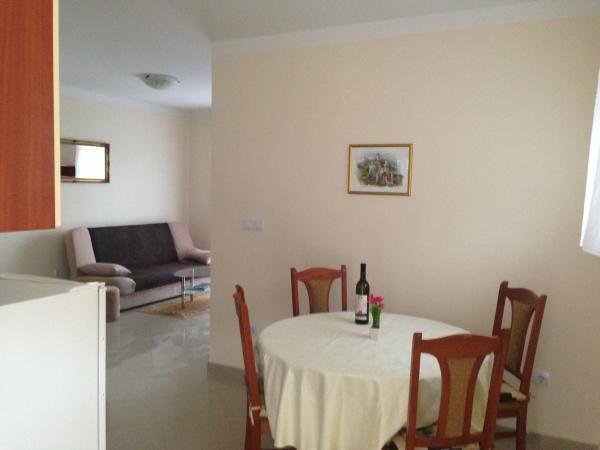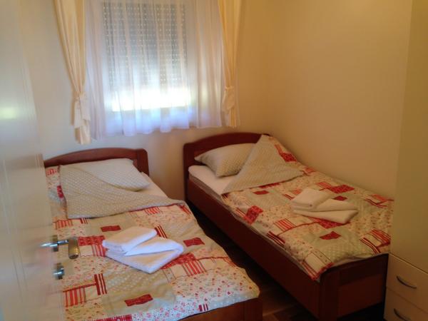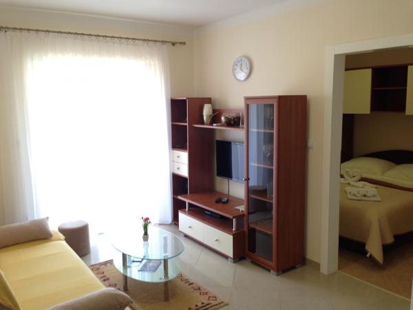 Turistička pristojba je uključena u cijenu.Apartmani se sastoje od ulaza, dvije spavaće sobe, dnevnog boravka, kuhinje sa blagovaonicom, kupaonice i balkona. + parkirno mjesto. Apartmani su smješteni u središnjem dijelu mjesta udaljeni od trgovine 100m, a do plaže, restorana, šetnjice cca 400m. Udaljenost apartmana do samog centra Grada Raba (povjesnog dijela grada) je cca 4 km, do kojeg voze redovne linije autobusa, taxi, te taxi brod, a može se i pješice novom šetnjicom uz more. U cijenu apartmana je uključeno: Boravišna pristojba, Internet - (preko Wi-Fi mreže), Telefon - (za hitne slučajeve), Kuhinja - (kompletno opremljena), Klima- (hlađenje/grijanje) TV-radio (Max TV usluga sa preko 200 vrhunskih programa),Sef, Posteljina, Rucnici, Sapun, režije, završno čišćenje i dr.