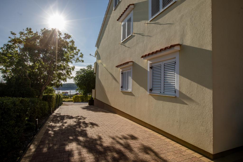 Kompletno i suvremeno opremljeni apartmani u mirnom predjelu, smješteni 300m do šljunčane plaže. Objekt je udaljen od centra Raba 6km, 2min hoda do trgovine, 10 min hoda do plaže, 10 min hoda do najbližeg restorana. U dvorištu se nalazi zajednički natkriveni prostor sa stolovima i klupama i roštiljem, te dječje igralište koje ima dvije ljuljačke i trampolin. Apartmani su pogodni za obitelji s djecom, kao i za sve ostale osobe željne mirnog odmora.