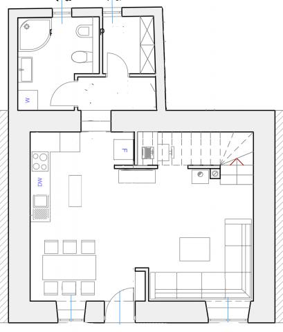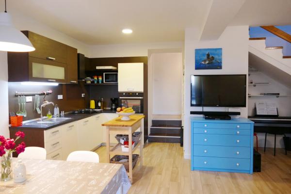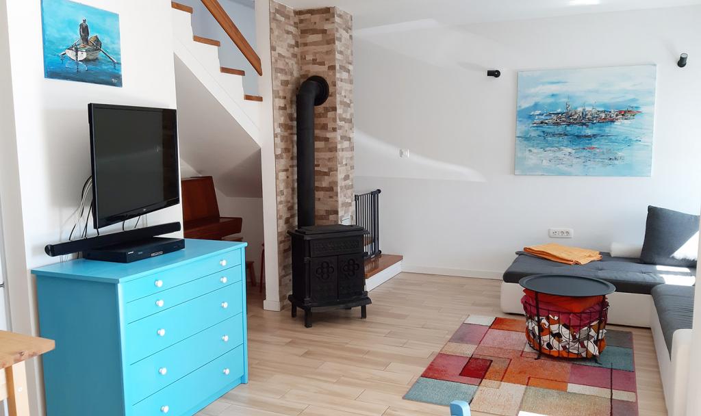 Ovo je novouređena kuća stara 200 godina. Prikladna je za obitelji s djecom. Prostor je oko 80 m2 na dvije etaže. U prizemlju se nalazi kuhinja, blagovaonica, dnevni boravak, kupaonica s tušem i ostavom. Dvije spavaće sobe i još jedna kupaonica s kadom nalaze se na katu. Jedna spavaća soba ima bračni krevet 160x200 cm. Druga spavaća soba (dječja spavaća soba) ima povišeni krevet dimenzija 140x200 cm (IKEA krevet Stora), a ispod kreveta nalazi se kauč koji je istih dimenzija kada se razvuče. Dječja spavaća soba opremljena je igračkama, bojankama, bojicama. Najbliža prodavnica udaljena je oko 1 km, a najbolje je ići u kupovinu automobilom. Najbliža plaža udaljena je oko 500 m.