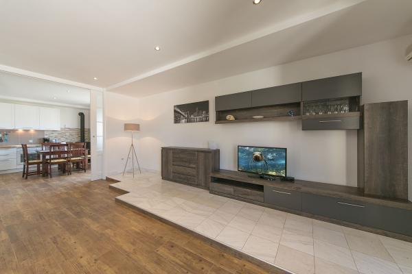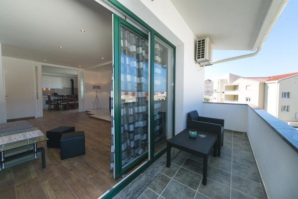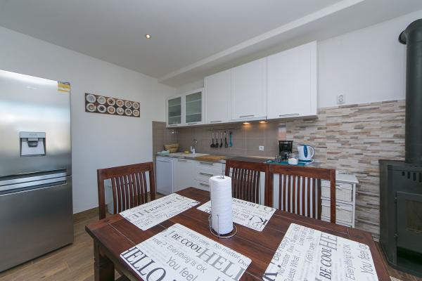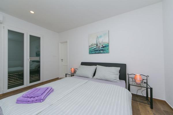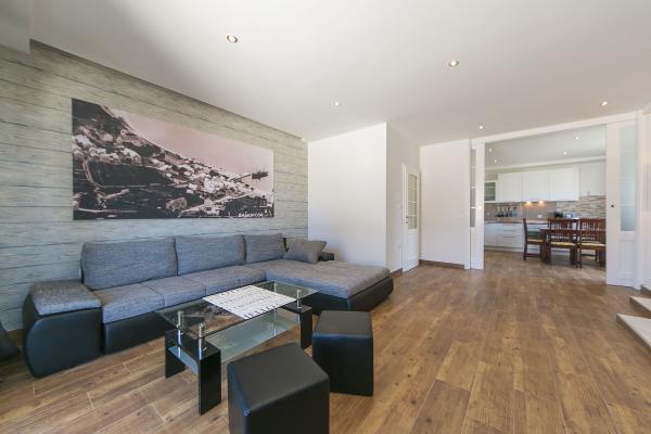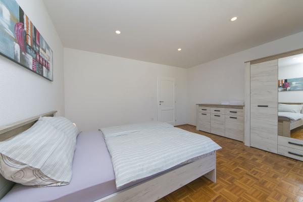 Kompletno novi renovirani apartman na prvom katu privatne kuće, površine 120m2. Apartman se sastoji od dvije spavaće sobe, kuhinje i prostranog dnevnog boravka (veliki kauč na razvlačenje), te 2 kupatila. U sklopu kuće je osiguran parking za goste (max. 2 auta). Apartman je opremljen s Wi-Fi internetom, Sat Tv i 4 klima uređaja.