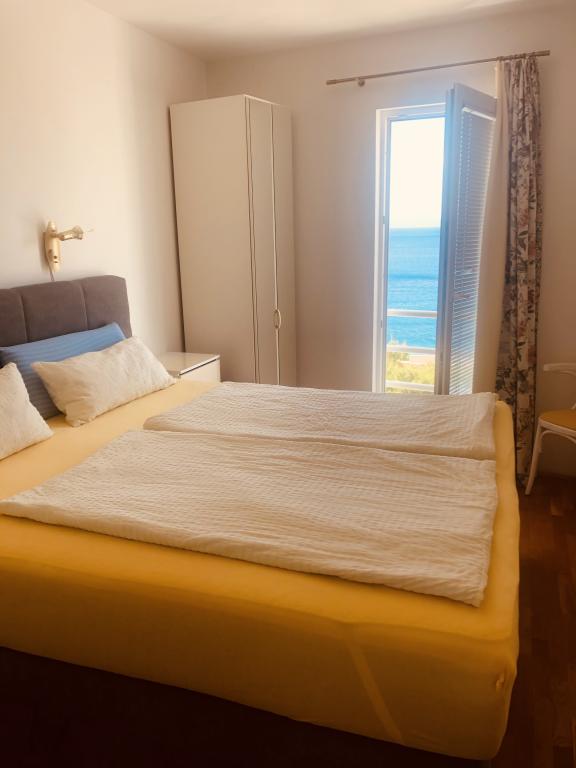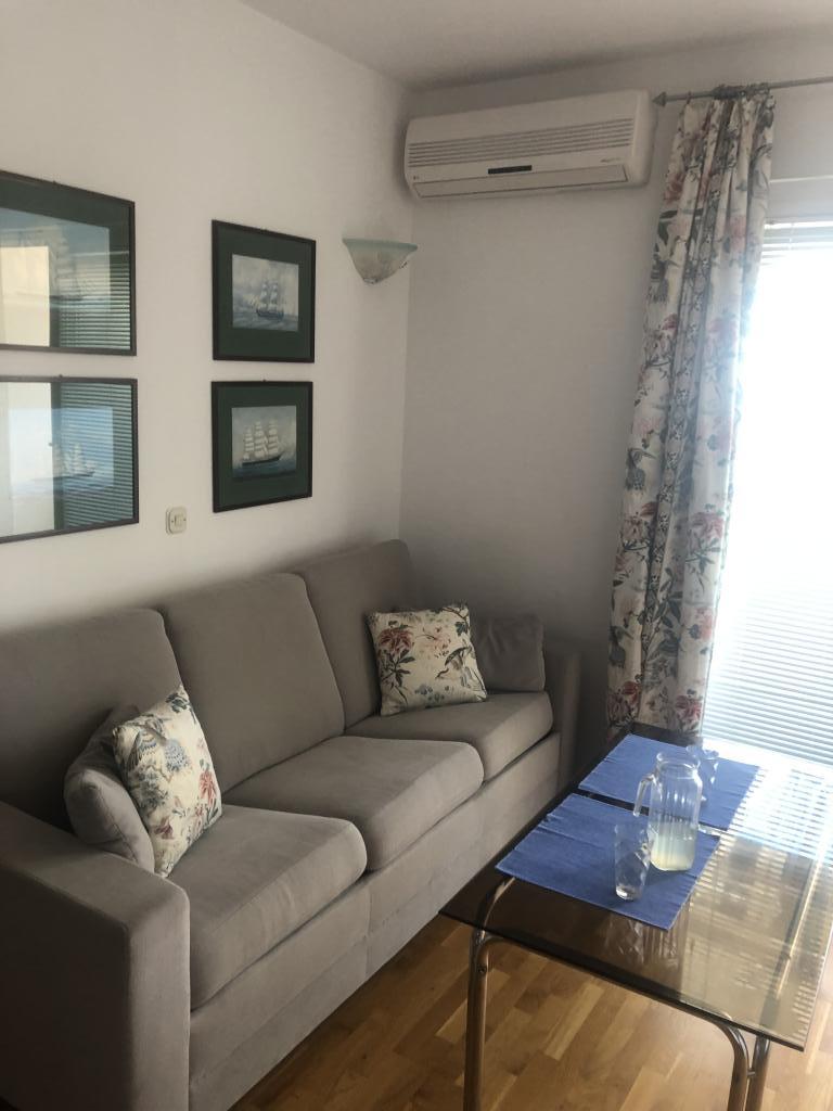 Apartman je 45m velik na drugom katu sastoji se od spavaće sobe sa predivnim pogledom na more , dnevne sobe sa trosjedom koji se u trenutku pretvara u ugodan ležaj za dvije osobeu sklopu kuhinja kompletno opremljena mikrovalna , perilica za posuđe,pečnica ,aparat za kavu , toster , kuhalo za vodu Kupaonu sa tušem perilicom za rublje i fen ručnici Sat TV klima W-LAN sef Balkon s pogledom na more sa markizom Za parkiranje Vašeg auta imamo garažno mjesto Mogučnost korištenja bicikla na vlastitu odgovornost Najkrače moguče broj nočenja su 7 noći osim ako ostane slobodno između Hvala na razumjevanje