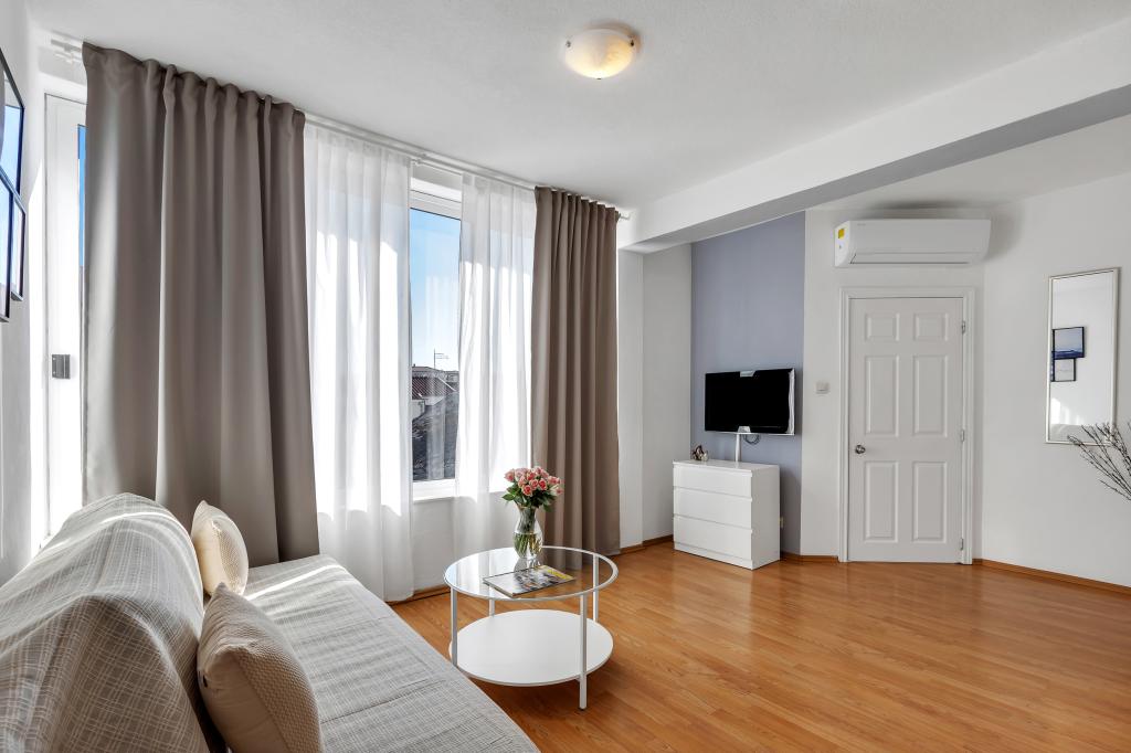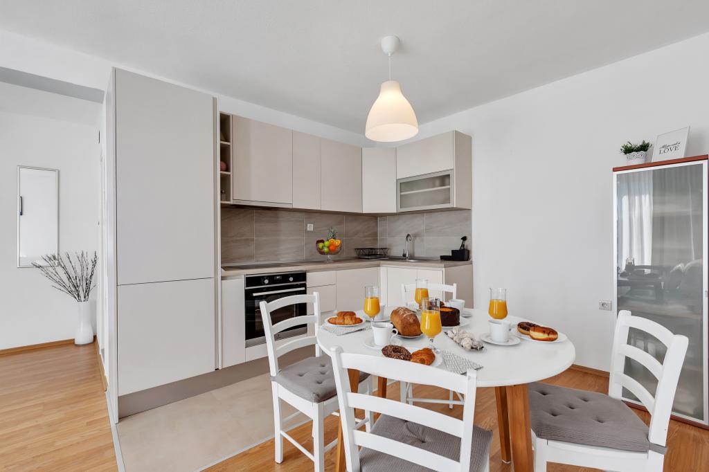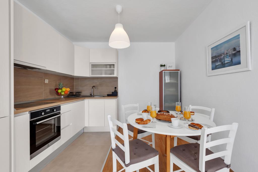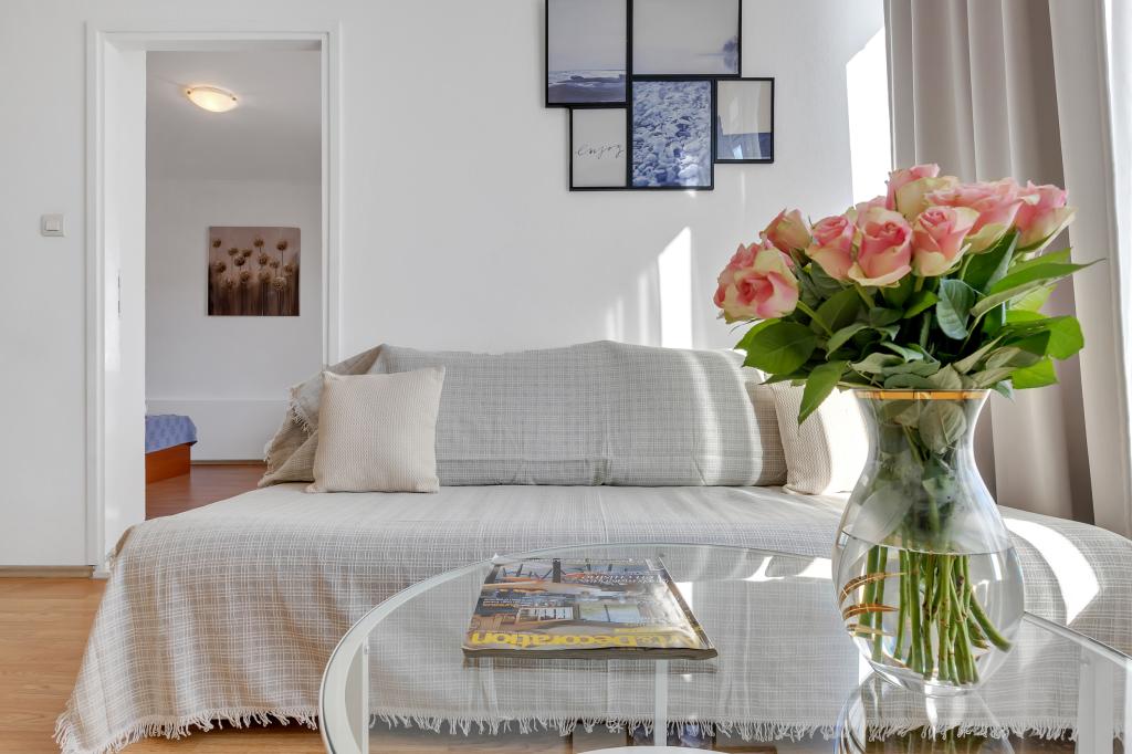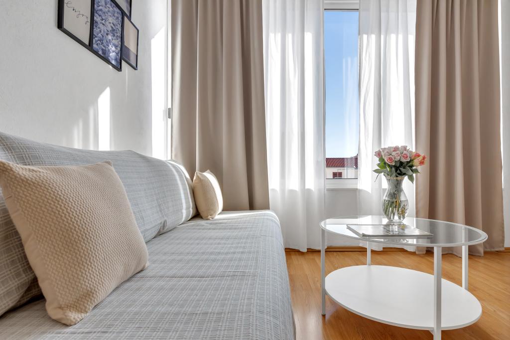 Apartman Bonaca je smješten u samom centru Baške Vode što mu omogućava blizinu i dostupnost raznim sadržajima i uslugama kao što su: plaža (40m), ljekarna (20m), riblji restoran (20m), malakološki muzej (20m), ambulanta (50m), tržnica (20m), supermarket (20m) i ostali restorani i kafići u krugu od 100 do 200m. Apartman se nalazi u mirnom dijelu samog centra pogodan za obitelji s djecom ili mlade parove, koji žele mir i komfor. Sastoji se od jedne kupaonice , jednog prostranog dnevnog boravka, velike opremljene kuhinje sa blagovaonicom i stolom za pet osoba, jedne spavaće sobe iz koje se izlazi na balkon na kojem je smještena velika drvena garnitura sa pogledom na planinu Biokovo. Uz apartman također imamo besplatan privatni parking za goste udaljen 80m, koji je pod video nadzorom kako bismo pružili maksimalnu sigurnost našim gostima. Apartman je uređen i renoviran minimalistički, a svojim bojama i izborom unutarnjeg interijera osvježava cijeli prostor, što čini Vaš boravak ugodnijim.