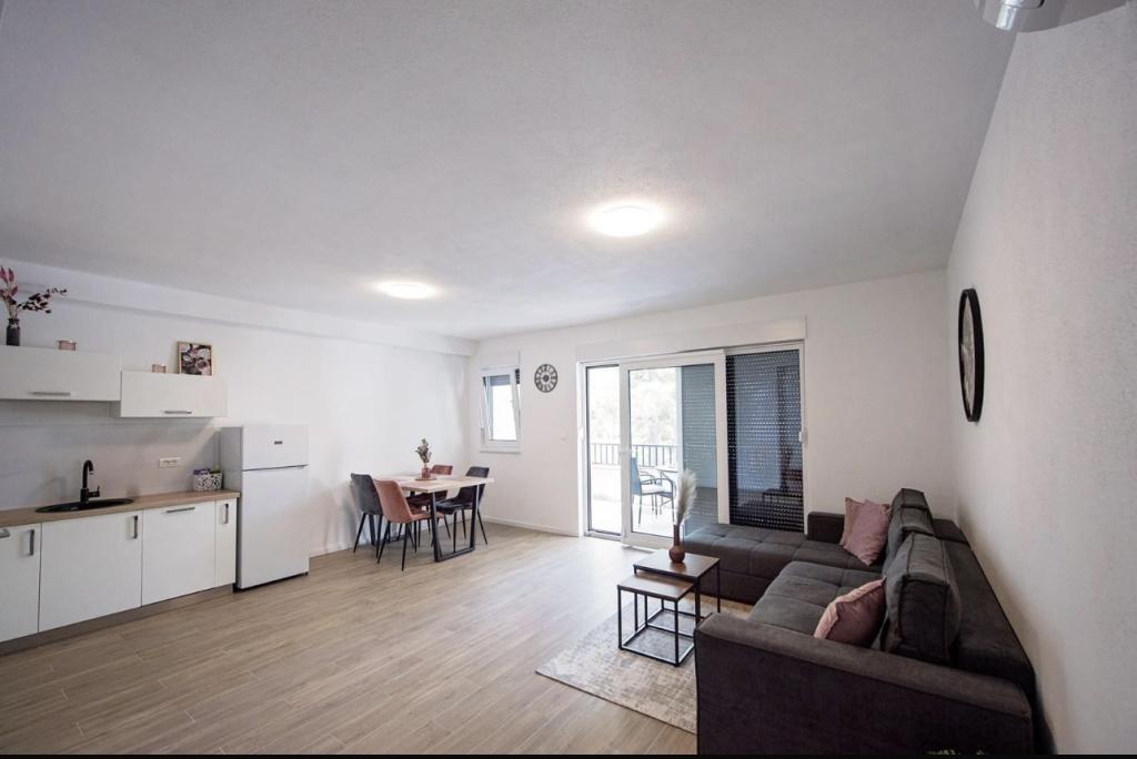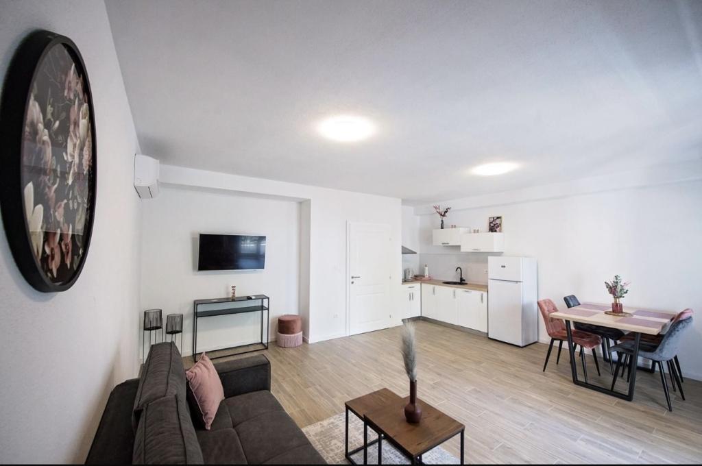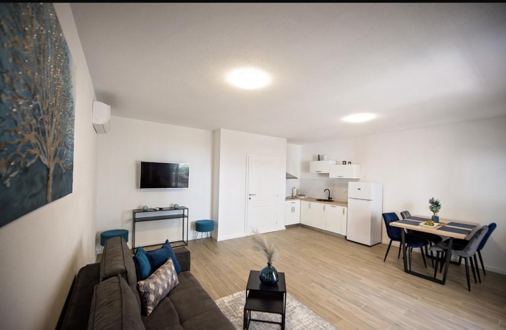 Iznajmljuje se apartman nova zgrada sve novo moderno spavaća soba + primaca soba sa velikim kaucom sa spavanjem za ukupno 4-5 osoba wc tus kuhinja klime parking perilice sve šta srce može poželit.