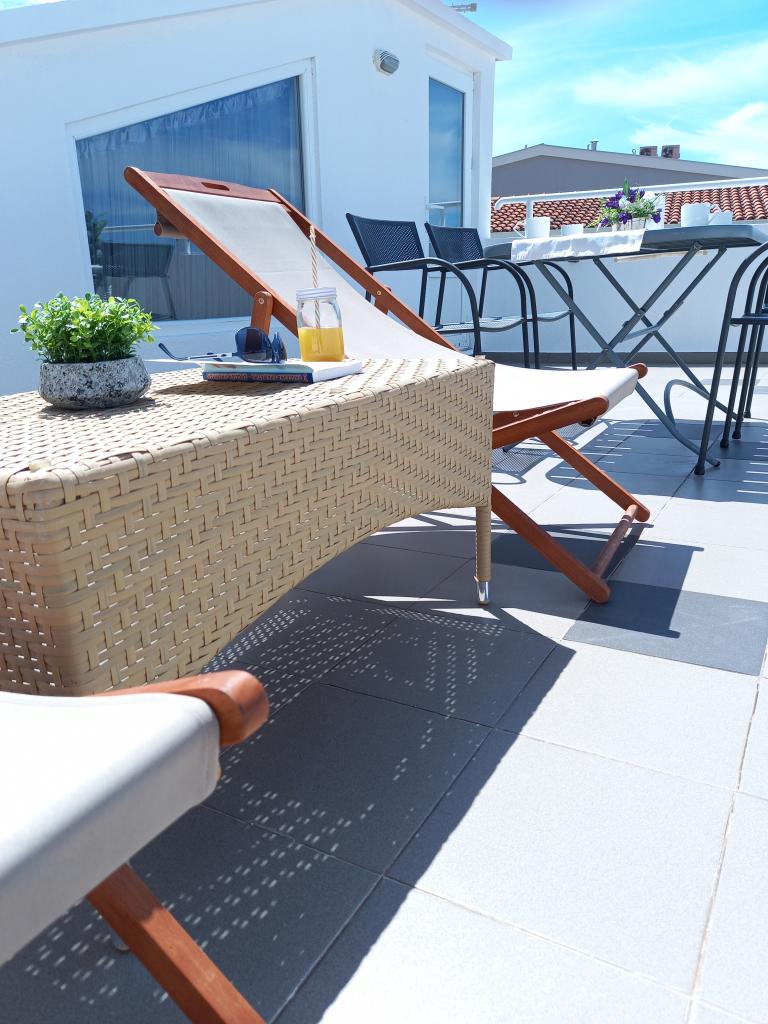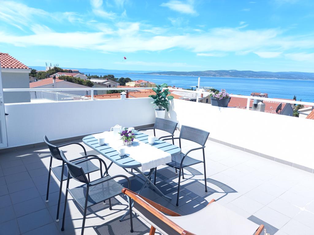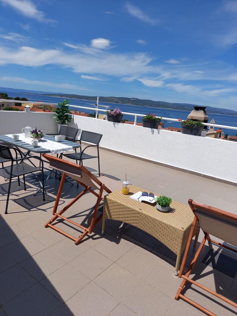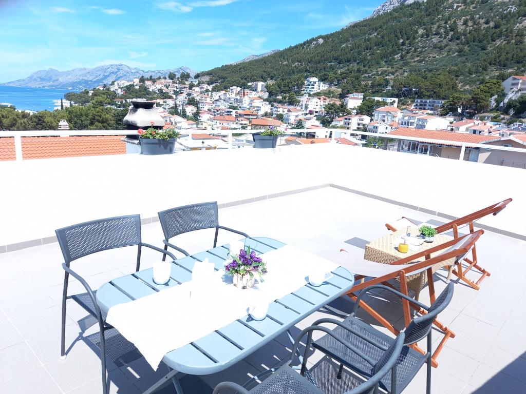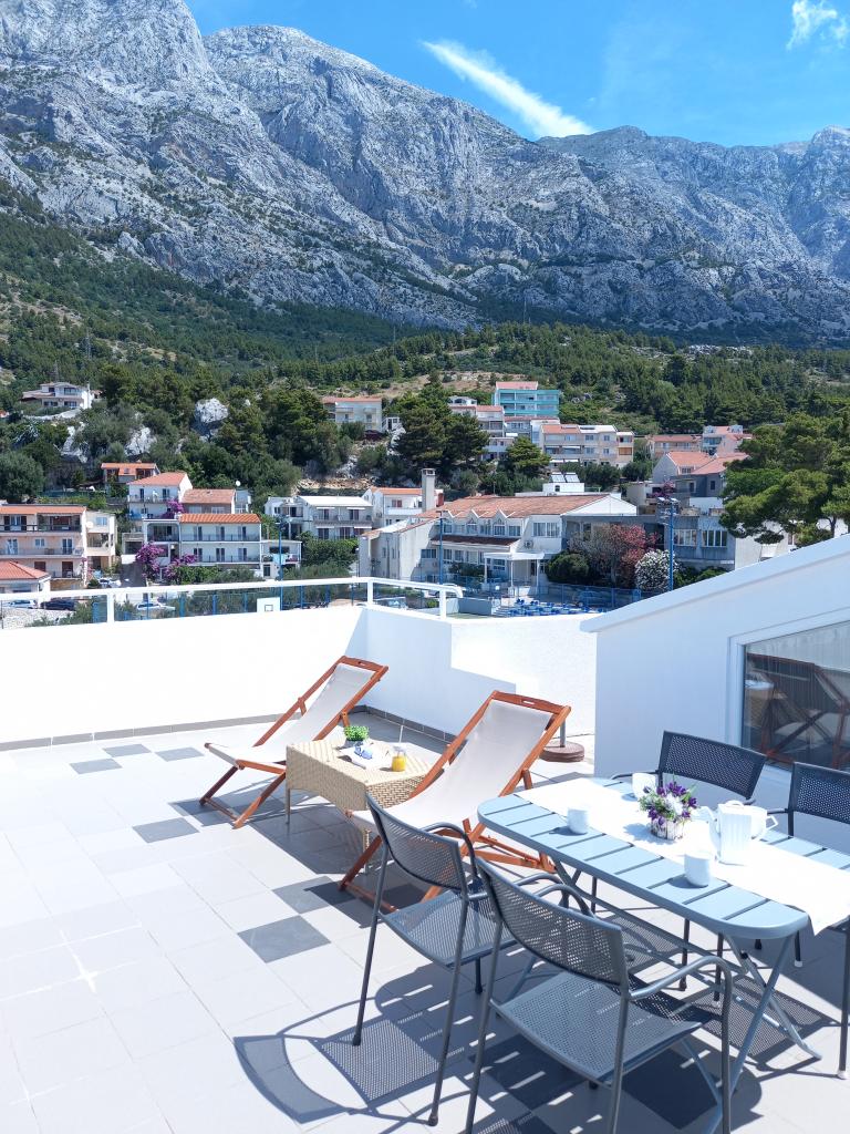 Apartman Nino je moderan apartman opremljen sa svime što je potrebno za vaš odmor. Apartman je klimatiziran i posjeduje opremljenu kuhinju. Dvije spavaće sobe su opremljene televizorìma i imaju vlastite kupaonice. Apartman posjeduje balkon i terasu s prekrasnim pogledom na more i planinu Biokovo. Uz malu blagovaonu u apartmanu, na raspolaganju su sjedeća garnitura i ležaljke na terasi. Naš Apartman Nino se nalazi 5 minuta hoda do centra i do glavne plaže.U blizini se nalazi i igralište sa umjetnom travom za sportske aktivnosti: nogomet, košarka, ...