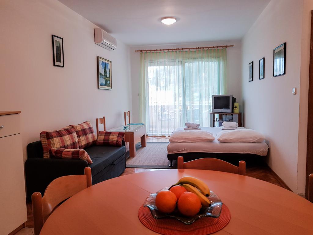 Na najljepšem dijelu Jadranskog mora, između dojmljive planine Biokova i predivnog mora, smještena je Baška Voda, i naš apartman Smile u njoj. Iz apartmana istovremeno imate predivan pogled na prostrano Jadransko more, glavni trg, luku, a s druge strane zapanjujući pogled na Biokovo. Klimatizirani apartman nudi besplatni Wi-Fi, TV, kvalitetno opremljenu kuhinju i vlastiti WC. Jesti možete u blagovaonici ili još bolje na balkonu s prelijepim pogledom na more. Nadamo se da je to sasvim dovoljno za naziv „Smile“. „Apartman Smile“ i bogata ponuda Baške Vode će sigurno nasmijati i omogućiti nezaboravan odmor svima koji je odlučite posjetiti. Govorimo Vašim jezikom.