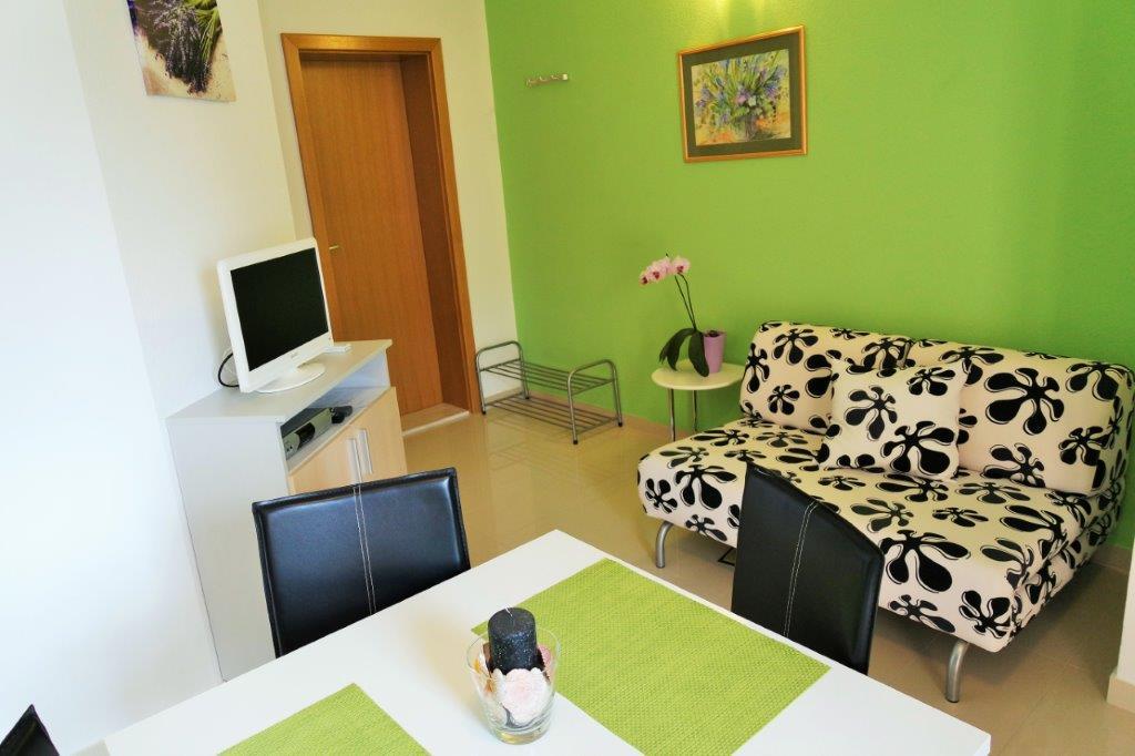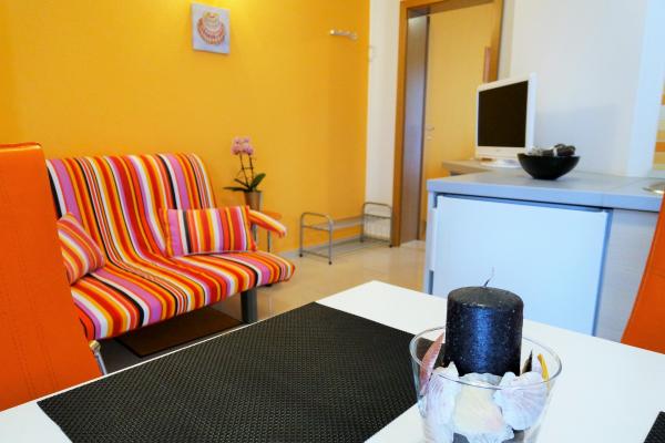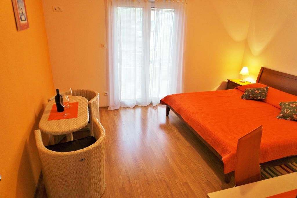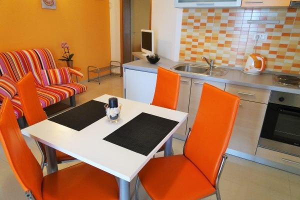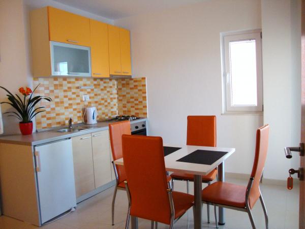 Ugodno i kompletno opremljeni apartmani Harmonija su idealan izbor za miran obiteljski odmor ili za parove koji traže konforan smještaj na poželjnoj lokaciji 250m od plaže, u atraktivnom turističkom predjelu Baške Vode, nedaleko od centra sa prekrasnim bočnim pogledom na more i planinu Biokovo. Nudimo smještaj u zelenom i narančastom apartmanu koji su predviđeni za 2 odrasle osobe sa 2 manje djece te u tirkiznom apartmanu za 2 odrasle osobe sa ev. 1 djetetom. Svaki apartman je 40m2, ima veliku spavaću sobu, prostor za boravak koji uključuje kompletno opremljenu kuhinju, stol i stolice te sofu na razvlačenje, kupatilo i terasu. Zeleni i narančasti apartman se nalaze na prvom katu obiteljske kuće i imaju balkone sa bočnim pogledom na more, a tirkizni apartman je smješten u suterenu kuće bez pogleda na more, sa terasom i lounge foteljama. Svaki apartman je u potpunosti opremljen, odiše čistoćom i vedrim bojama u kojima ćete se zasigurno ugodno osjećati i provesti savršen ljetni odmor.