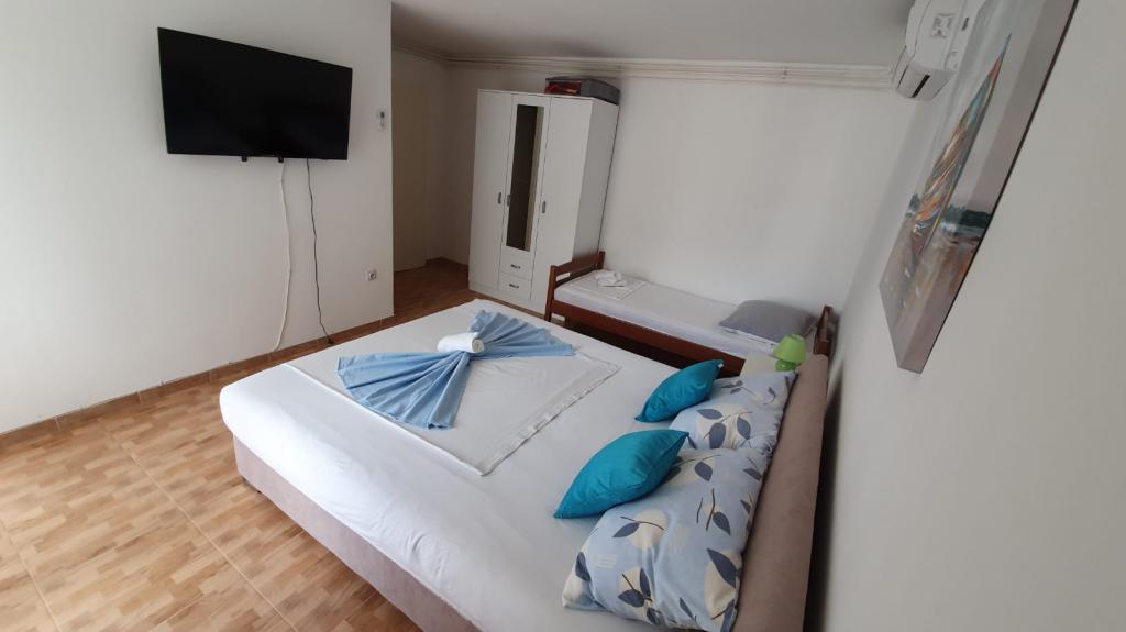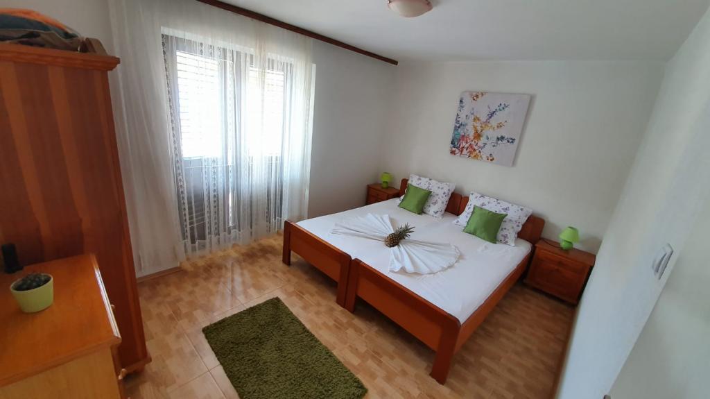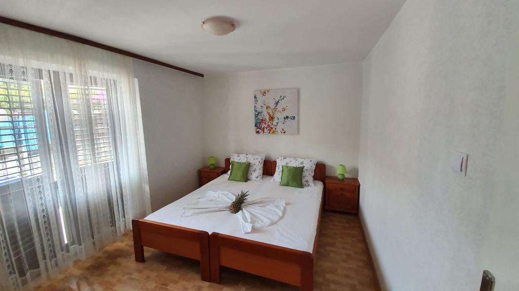 Mala obiteljska kuća u blizini centra i svih sadržaja. Apartman 1 se nalazi u prizemlju kuće. Sastoji se od 2 sobe, 2 kupaonice, male kuhinje te velikog dvorište ispred apartmana za druženje. Apartman 2 se sastoji od 2 sobe, 2 kupaonice, kuhinje. Svaka soba ima svoj balkon. U dvorištu kuće su osigurana parkirna mjesta za svaku smještajnu jedinicu. Veselimo se Vašem dolasku!