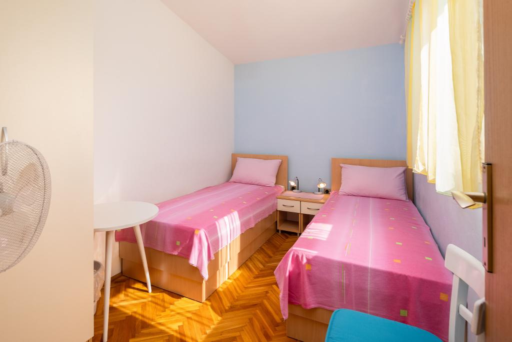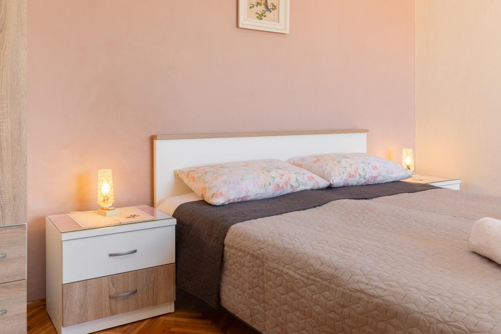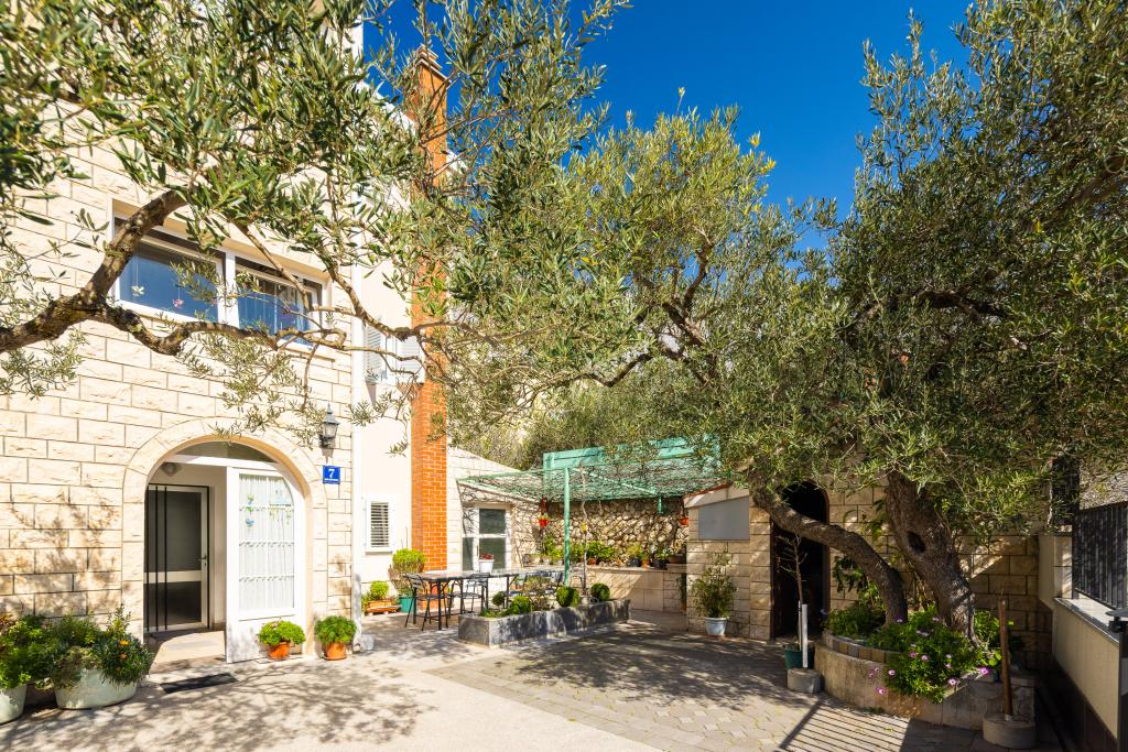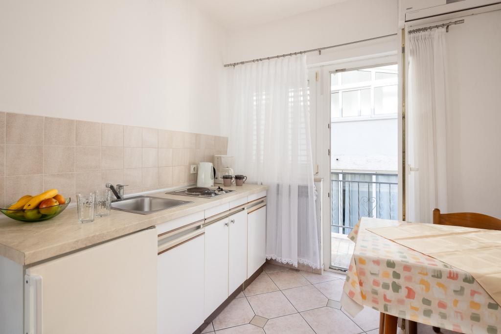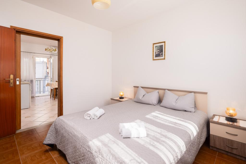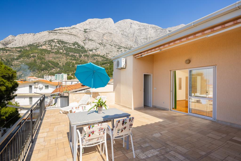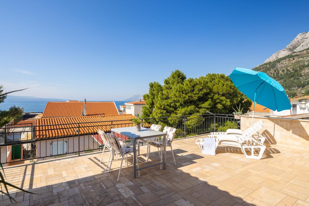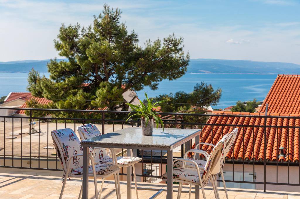 Smješteni u mirnom dijelu Baške Vode, ovi apartmani nude ugodan i praktičan smještaj na svega oko 400 m od plaže. Idealni su za parove, obitelji ili manje grupe, a objekt uključuje jedan prostraniji apartman s dvije spavaće sobe i dvije kupaonice te manju jedinicu pogodnu za 2 odrasle osobe i dijete. Oba apartmana imaju funkcionalan raspored, opremljene kuhinje, udobne dnevne boravke te vanjske prostore, uključujući privatni balkon i pristup zajedničkoj terasi s roštiljem. Gostima su na raspolaganju i privatni parking te mirno okruženje u blizini svih sadržaja. Idealan izbor za opušten i bezbrižan boravak u Baškoj Vodi, uz dostupnu podršku osoblja tijekom cijelog boravka.