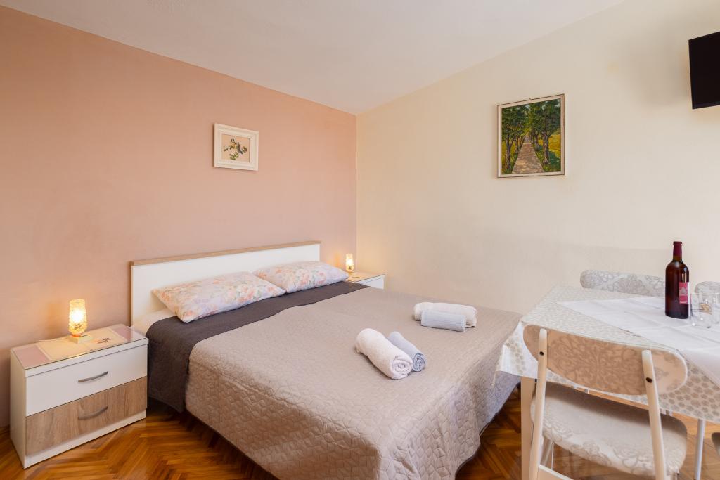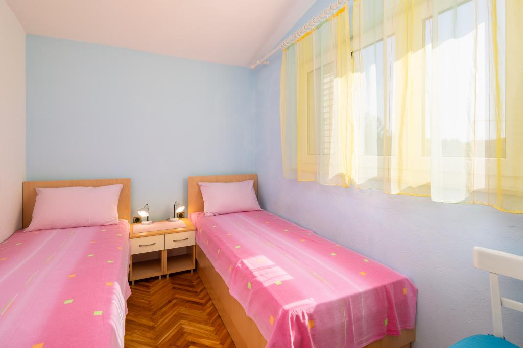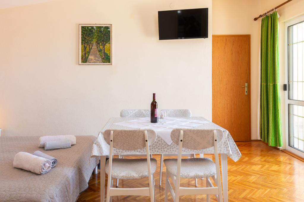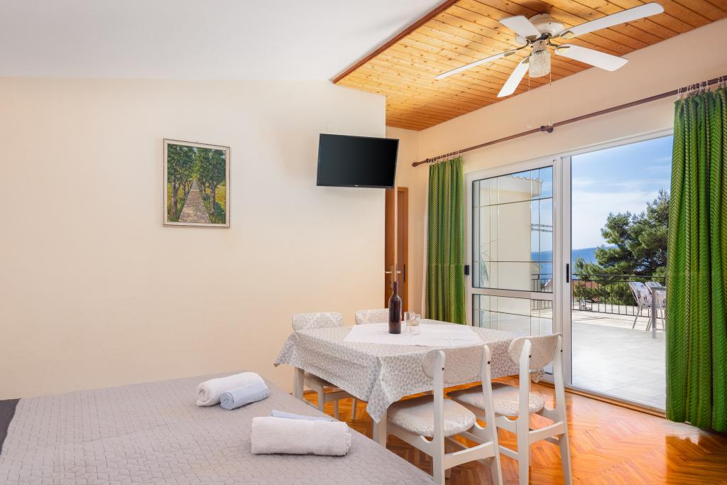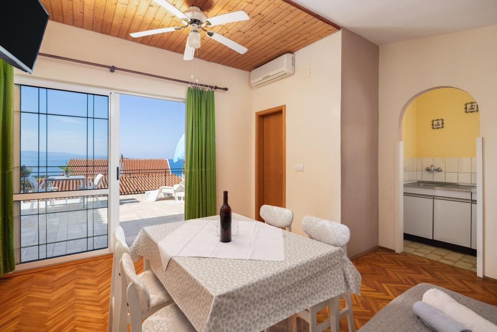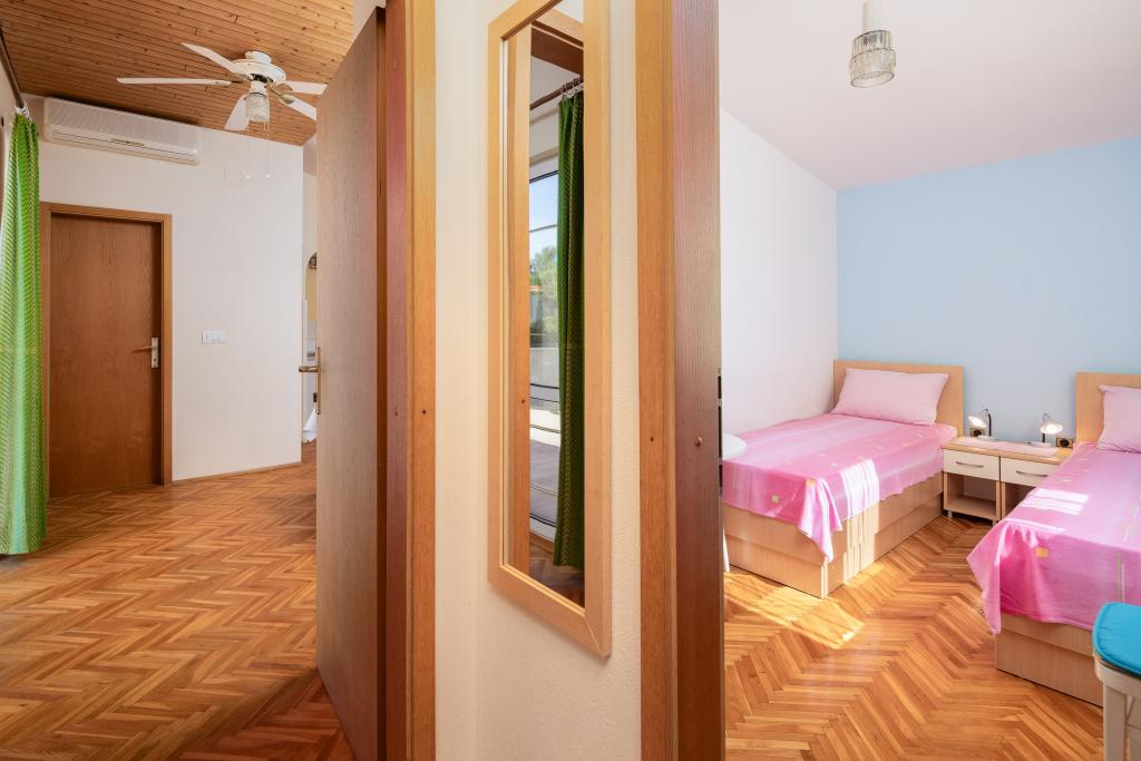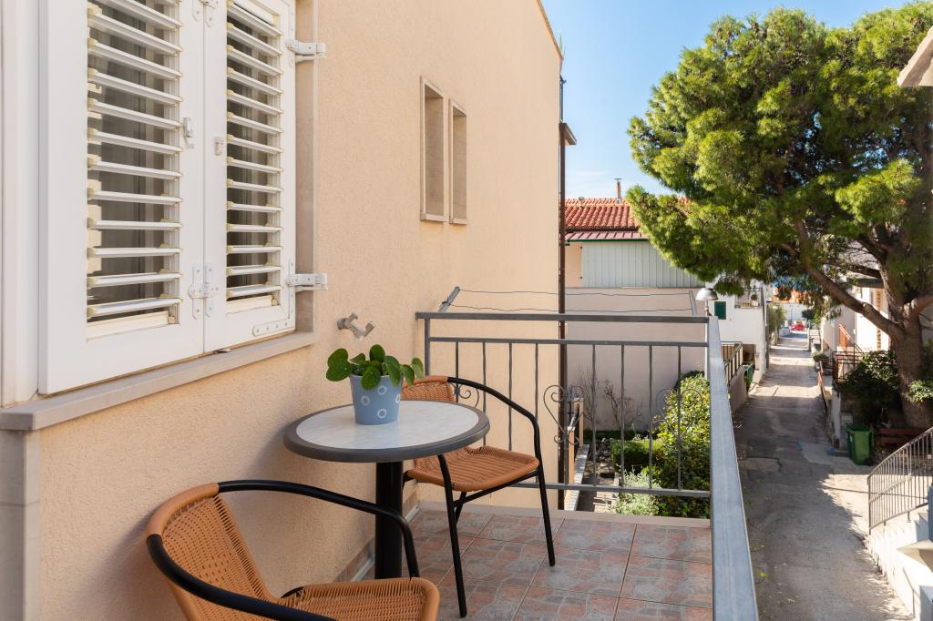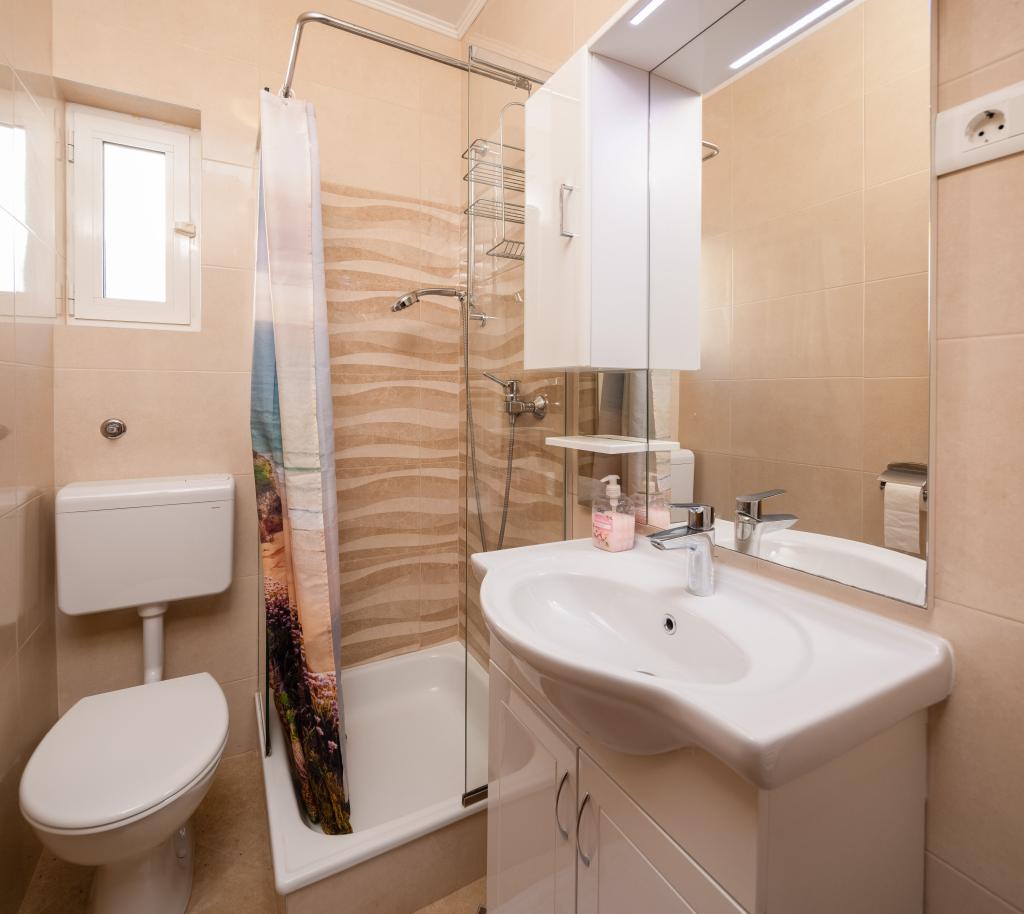 Smješteni u mirnom dijelu Baške Vode, ovi apartmani nude ugodan i praktičan smještaj na svega oko 400 m od plaže. Idealni su za parove, obitelji ili manje grupe, a objekt uključuje jedan prostraniji apartman s dvije spavaće sobe i dvije kupaonice te manju jedinicu pogodnu za 2 odrasle osobe i dijete. Oba apartmana imaju funkcionalan raspored, opremljene kuhinje, udobne dnevne boravke te vanjske prostore, uključujući privatni balkon i pristup zajedničkoj terasi s roštiljem. Gostima su na raspolaganju i privatni parking te mirno okruženje u blizini svih sadržaja. Idealan izbor za opušten i bezbrižan boravak u Baškoj Vodi, uz dostupnu podršku osoblja tijekom cijelog boravka.