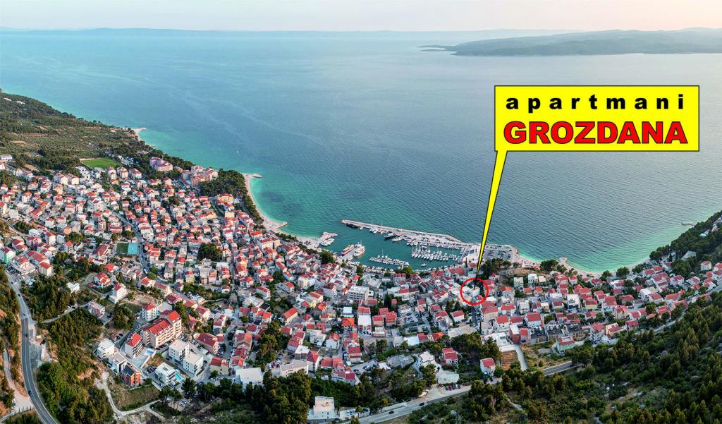 Apartmani Grozdana nalaze se u samom centru Baške Vode na udaljenosti od svega 50 m od morske obale. Kuća je smještena u samom centru u okruženju bogatog raslinja. Izdvojenost od vreve na obližnjoj plaži stvara mir i tišinu potrebnu za potpuni ugođaj odmora. Svi sadržaji koji se nalaze u Baškoj Vodi su vam na dohvat ruke i bez upotrebe vozila. Ugodnom šetnjom možete zaviriti u svaki kutak mjesta i uživati u ljepotama Baške Vode i njenim turističkim atrakcijama. Zato Vas pozivamo da posjetite Apartman Grozdana u bilo koje doba godine, naročito u ljetnim mjesecima kad Vas očekujemo sa bogatim ljetnim sadržajima koji će vam ostati u stalnom sjećanju.