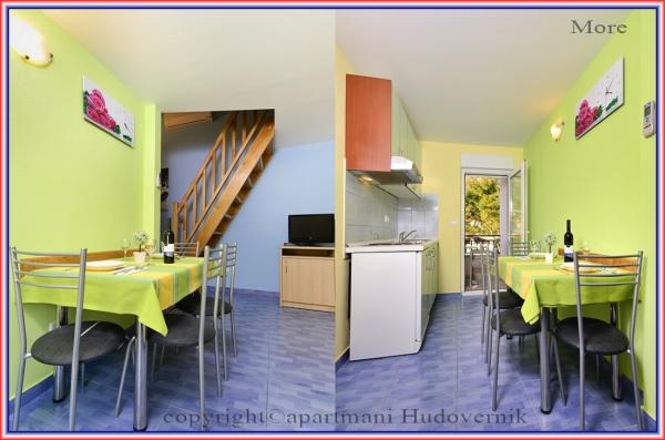 Za više slika i informacija posjetite našu web stranicu....www.apartmani-hudovernik.com....Naša obitelj ima dugogodišnju tradiciju bavljenja turizmom i pružanja turističkih usluga, prvenstveno smještaja, ali i neprocijenjive topline gostoprimstva u koje su se mnogi uvjerili. Apartmani se nalaze na prvom i drugom katu obiteljske kuće u mirnom dijelu Baške Vode, iako samo 300 metara od mora i plaže. U našoj ponudi nalaze se četiri ugodno ambijentirana i prostrana apartmana od kojih apartman DELUXE posjeduje vanjski grijani bazen i koji su kompletno opremljeni po visokim kriterijima modernog poimanja današnjeg turizma. Svi apartmani su dvokrevetni sa mogućnošću korištenja dodatnog ležaja (2 2). Ispred kuće je osiguran parking za Vaša vozila, a sam centar Baške Vode i lokalne plaže udaljeni su 300 metara, kao i popratni sadržaji poput trgovina i restorana.