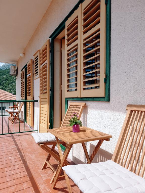 Apartmani Kushin nalaze se 2 minute hoda od centralne mjesne plaže, te 5 minuta hoda do centra Baške Vode.