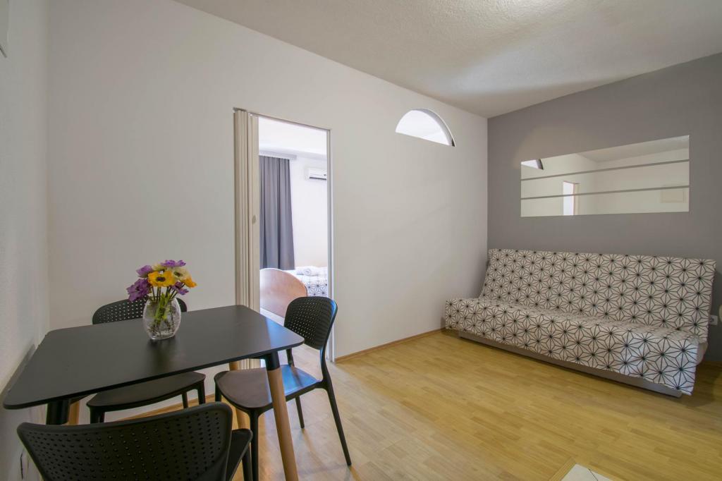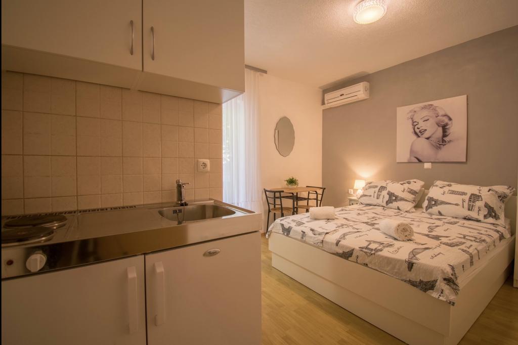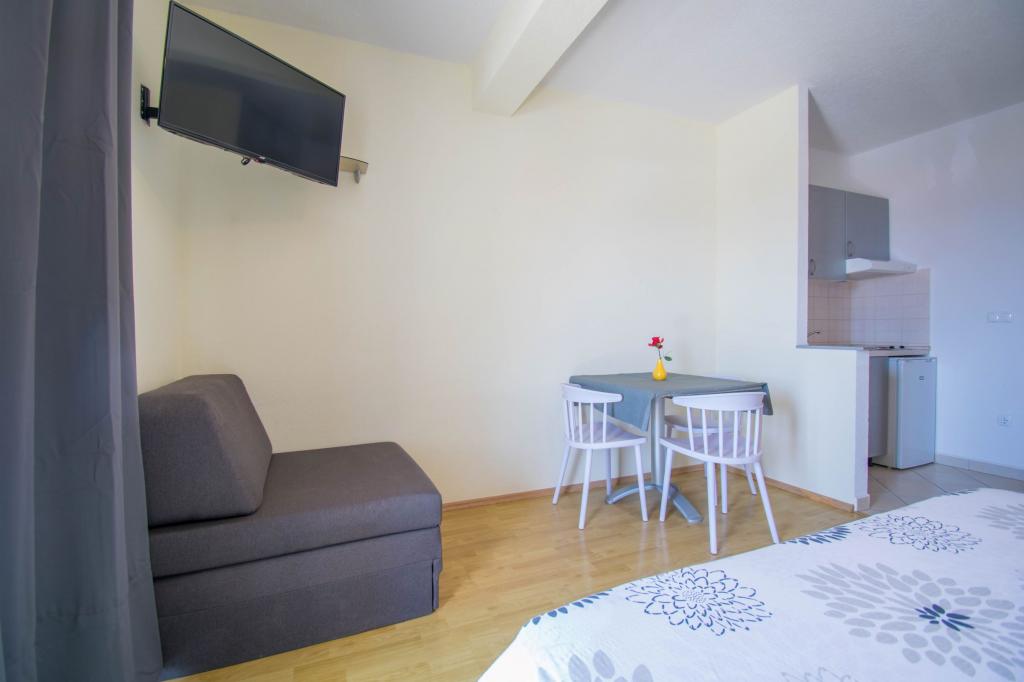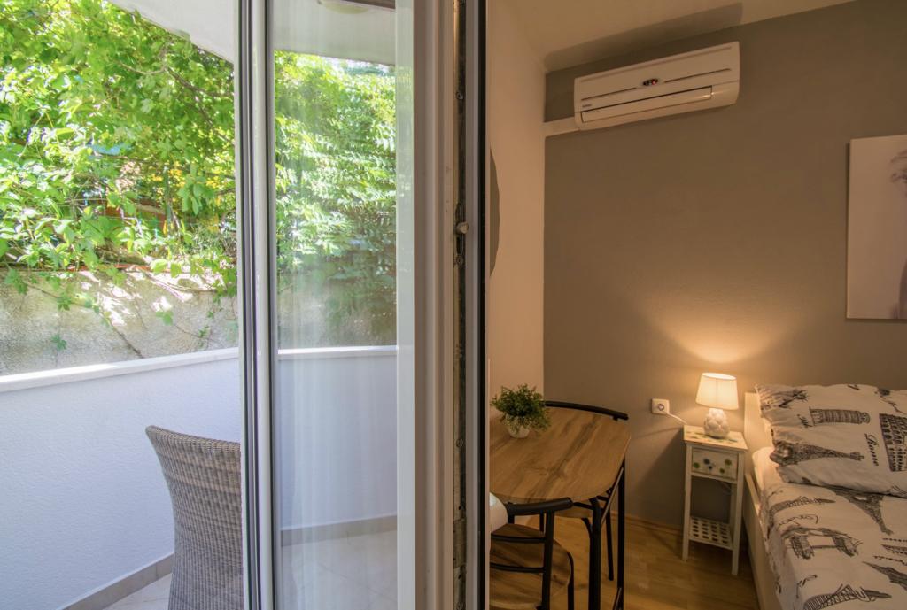 Stan se nalazio u prizemlju, na ulici, tako da se nije moglo spavati s otvorenim vratima. Klima kao i svugdje, samo u glavnom dnevnom boravku. U glavnom dnevnom boravku postoji samo prozor, spavaća soba je bez prozora, ali to je bio plus jer tamo nije bilo sunca. Sušilica za rublje je plus, minus oprema, nekoliko tanjura i čaša, nema mikrovalne, ali ispred ulaza je bio kuhalo za vodu sa stolicama, unatoč ulici, nitko nije gledao u tanjure, ali postoji mala terasa. . Parking na visini iza kuće. Sobe na katu bile bi atmosferičnije.