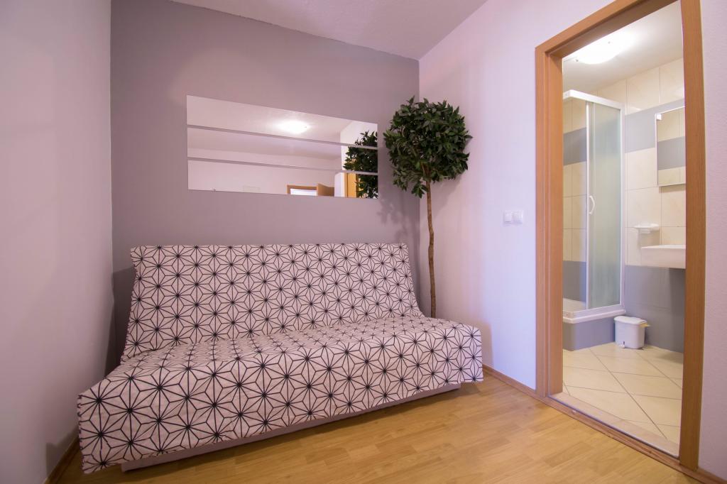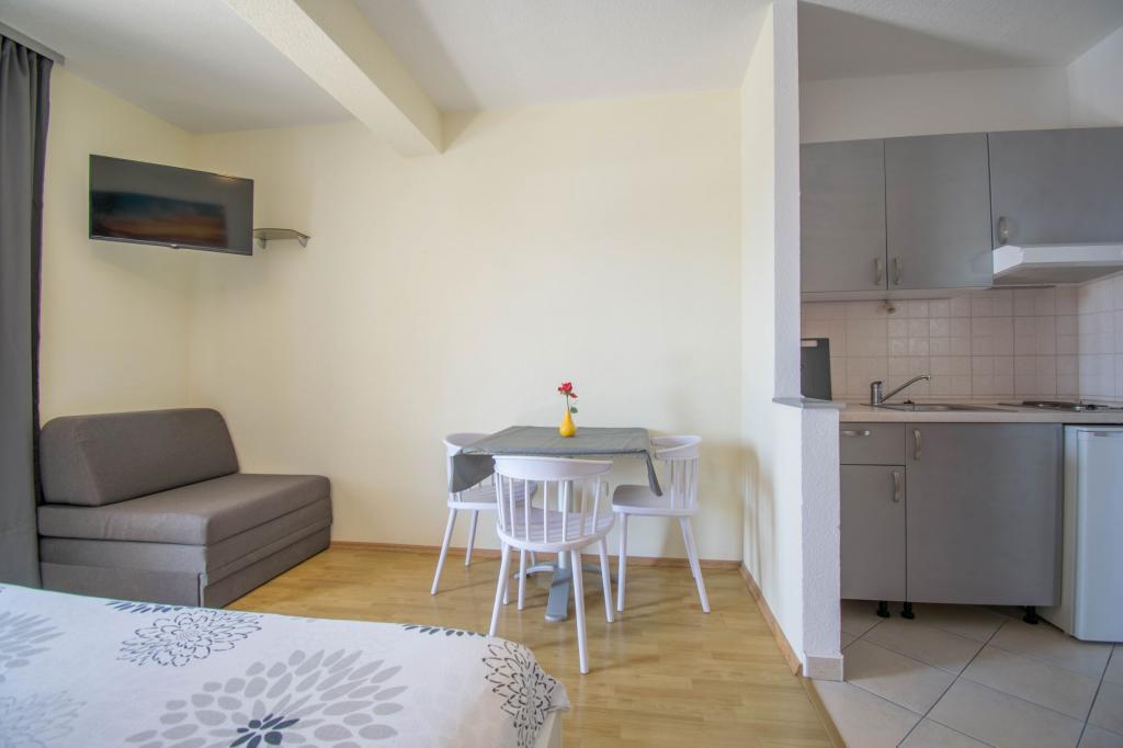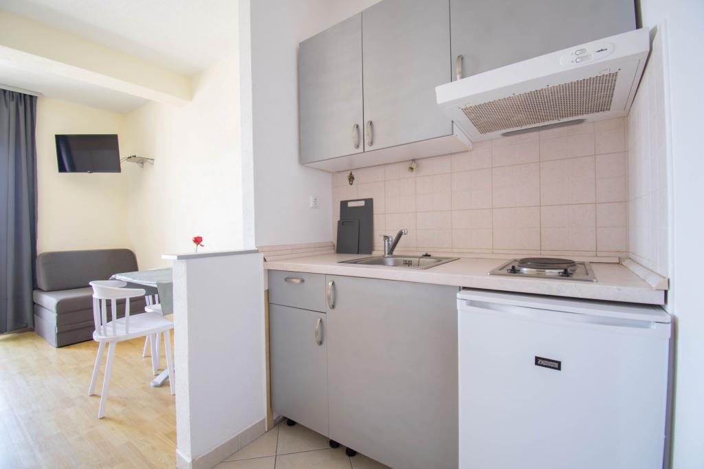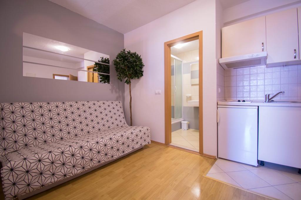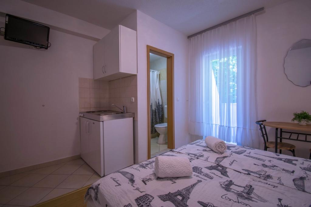 Stan se nalazio u prizemlju, na ulici, tako da se nije moglo spavati s otvorenim vratima. Klima kao i svugdje, samo u glavnom dnevnom boravku. U glavnom dnevnom boravku postoji samo prozor, spavaća soba je bez prozora, ali to je bio plus jer tamo nije bilo sunca. Sušilica za rublje je plus, minus oprema, nekoliko tanjura i čaša, nema mikrovalne, ali ispred ulaza je bio kuhalo za vodu sa stolicama, unatoč ulici, nitko nije gledao u tanjure, ali postoji mala terasa. . Parking na visini iza kuće. Sobe na katu bile bi atmosferičnije.
