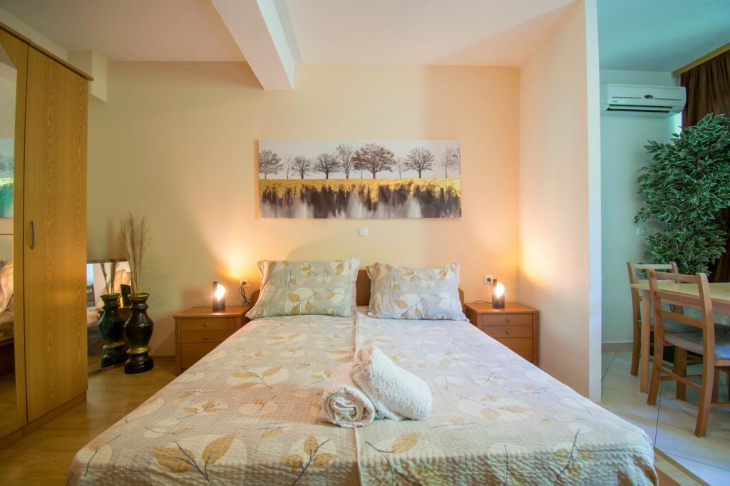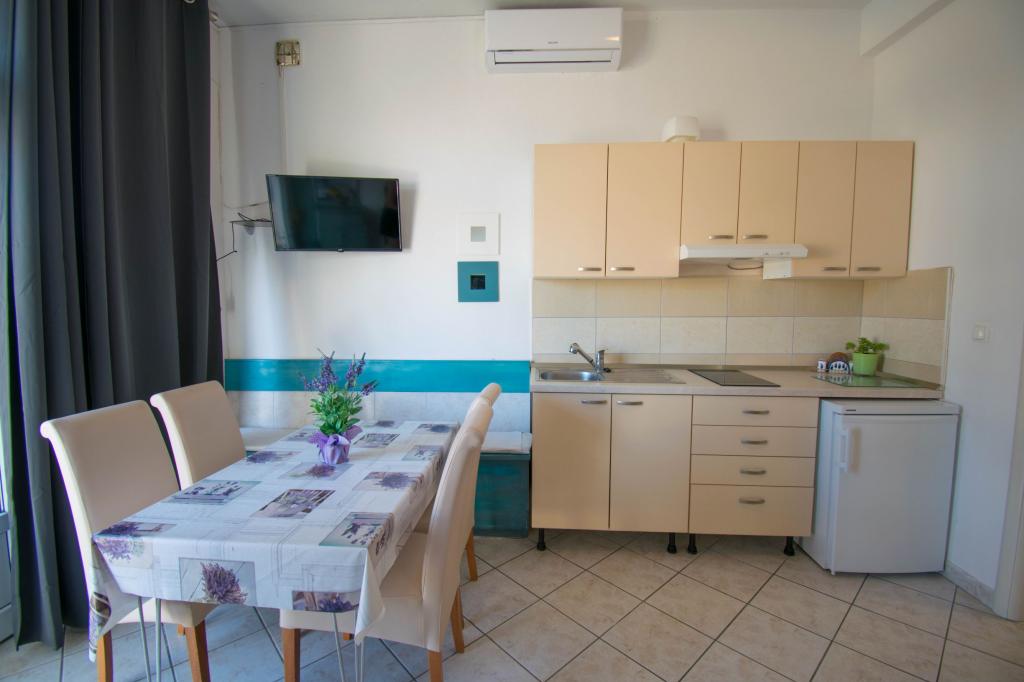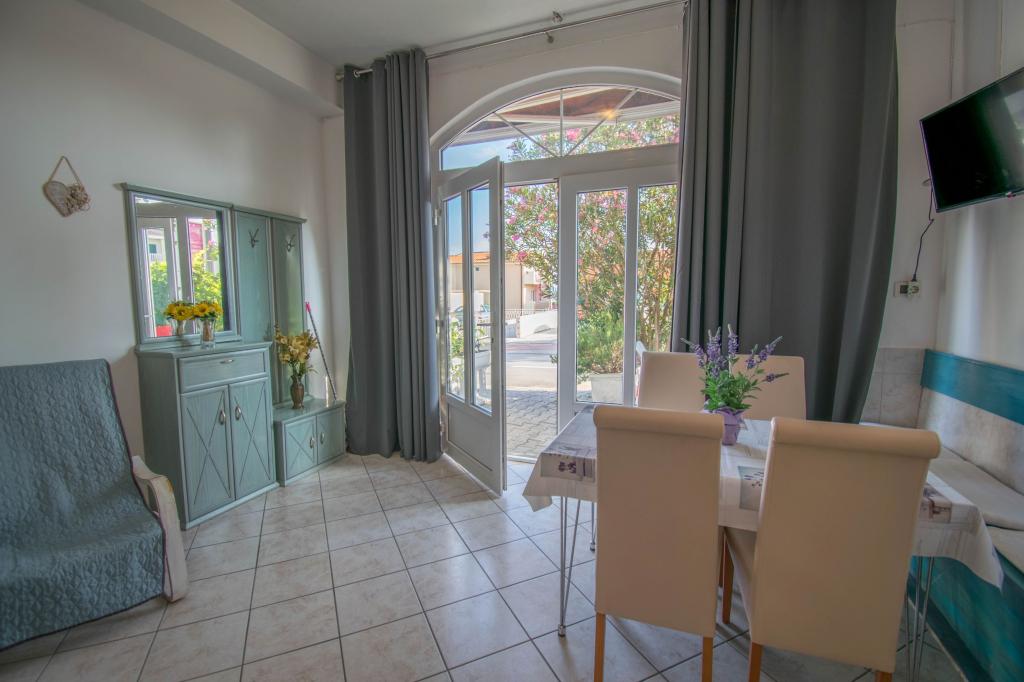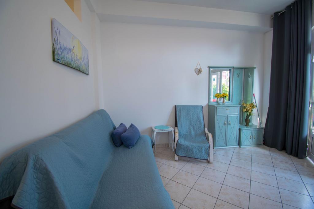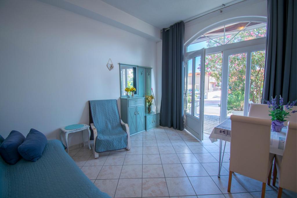 Stan kako je opisano u ponudi. Nalazi se na glavnoj cesti u selu tako da je vrlo lako pronaći. Blizina je plaže i centra mjesta - maksimalno 5 minuta pješice. Parking je dostupan, ali ne u samom objektu, samo oko 150-200 m od njega. Vrlo blizu - u radijusu od nekoliko stotina metara tržnica i pekara. Stan koji smo iznajmili bio je u prizemlju. Bilo je čisto i lijepo. Klima uređaj radi. Udobna i potpuno opremljena kuhinja (lonci, tanjuri, čaše i ostalo posuđe, hladnjak i kuhalo na dva plamenika). Kupaonica s tuš kabinom - sve OK. Sobe imaju velike ormare i velike vrlo udobne krevete. Na izlazu iz apartmana je mala terasa sa stolom, ali sjedite skoro na kolniku (ne znam da li je to mana ili prednost). Vlasnik vrlo ljubazan i uslužan. Vrlo dobro govori engleski. Stvarno preporučam ovaj apartman.