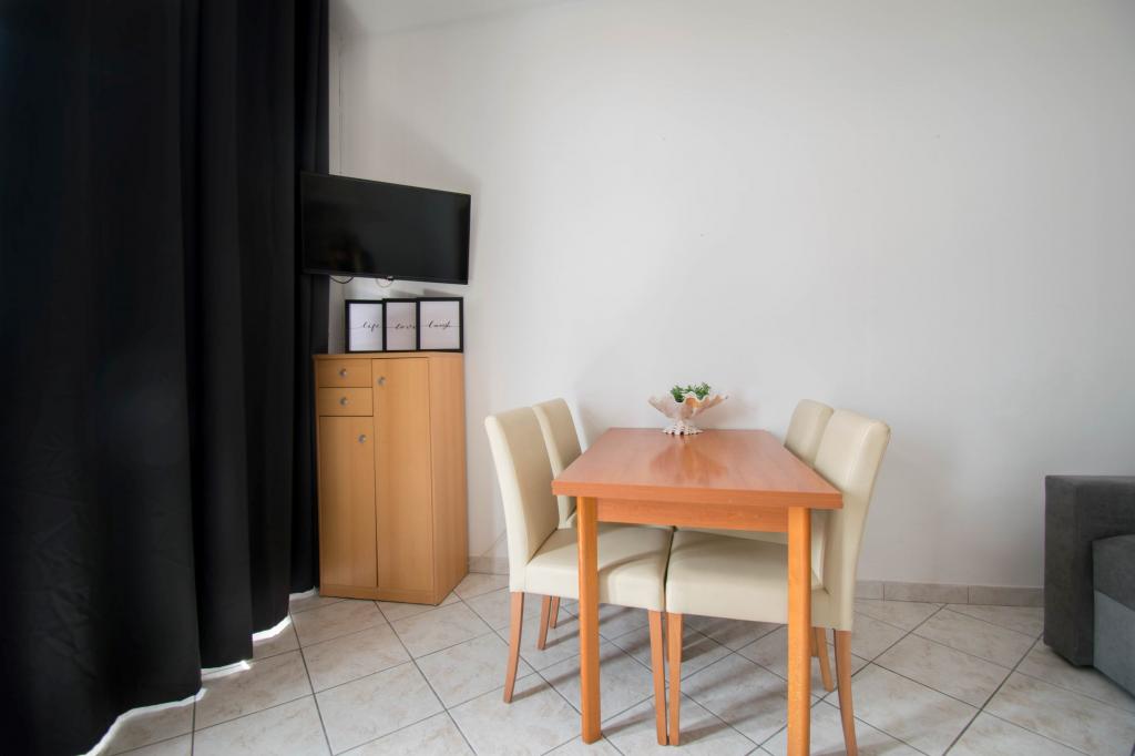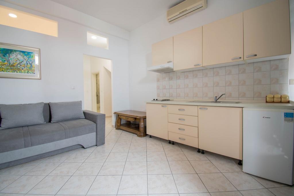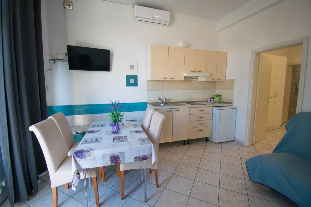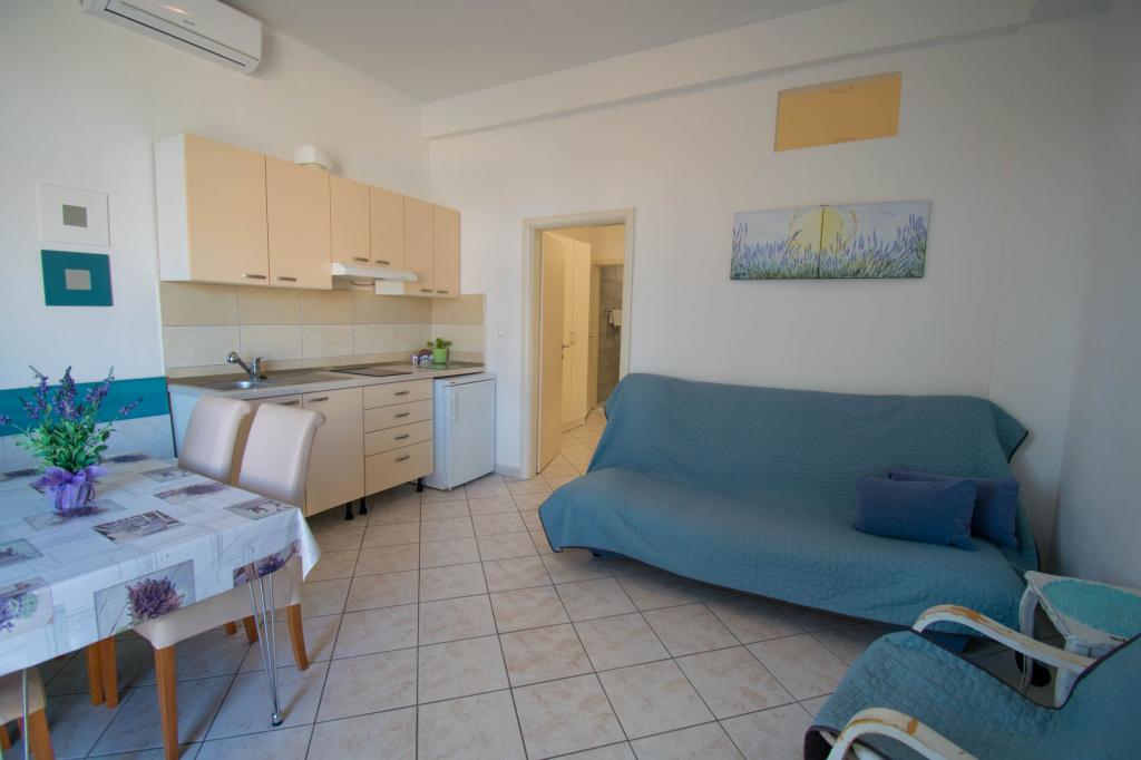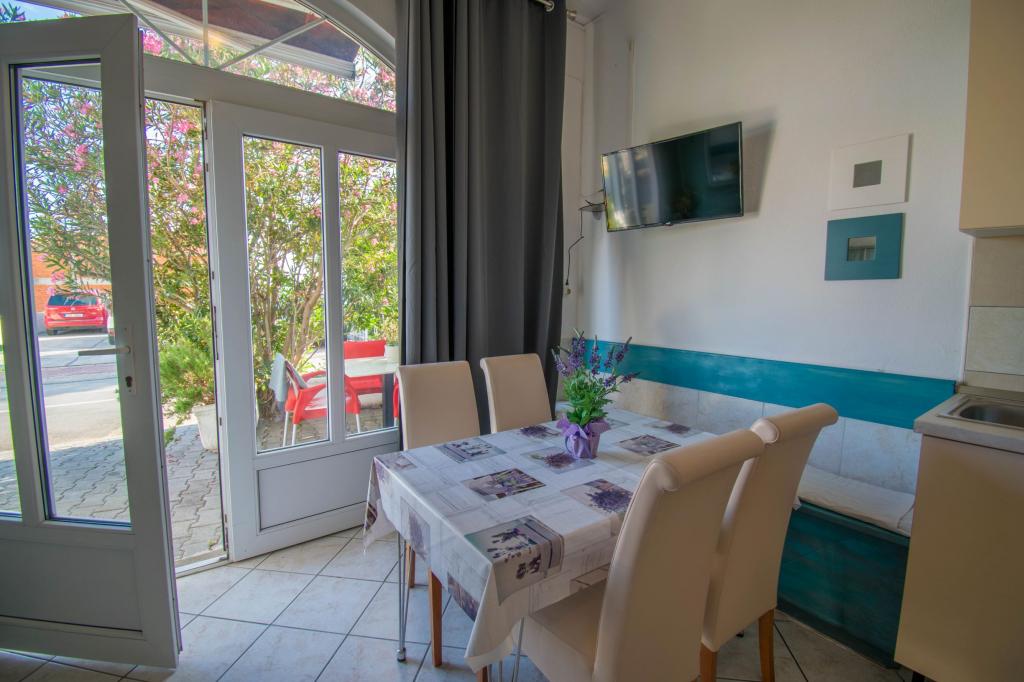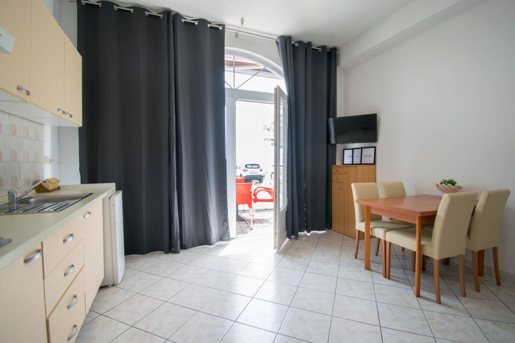 Stan kako je opisano u ponudi. Nalazi se na glavnoj cesti u selu tako da je vrlo lako pronaći. Blizina je plaže i centra mjesta - maksimalno 5 minuta pješice. Parking je dostupan, ali ne u samom objektu, samo oko 150-200 m od njega. Vrlo blizu - u radijusu od nekoliko stotina metara tržnica i pekara. Stan koji smo iznajmili bio je u prizemlju. Bilo je čisto i lijepo. Klima uređaj radi. Udobna i potpuno opremljena kuhinja (lonci, tanjuri, čaše i ostalo posuđe, hladnjak i kuhalo na dva plamenika). Kupaonica s tuš kabinom - sve OK. Sobe imaju velike ormare i velike vrlo udobne krevete. Na izlazu iz apartmana je mala terasa sa stolom, ali sjedite skoro na kolniku (ne znam da li je to mana ili prednost). Vlasnik vrlo ljubazan i uslužan. Vrlo dobro govori engleski. Stvarno preporučam ovaj apartman.