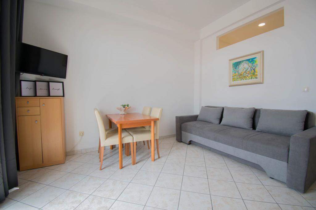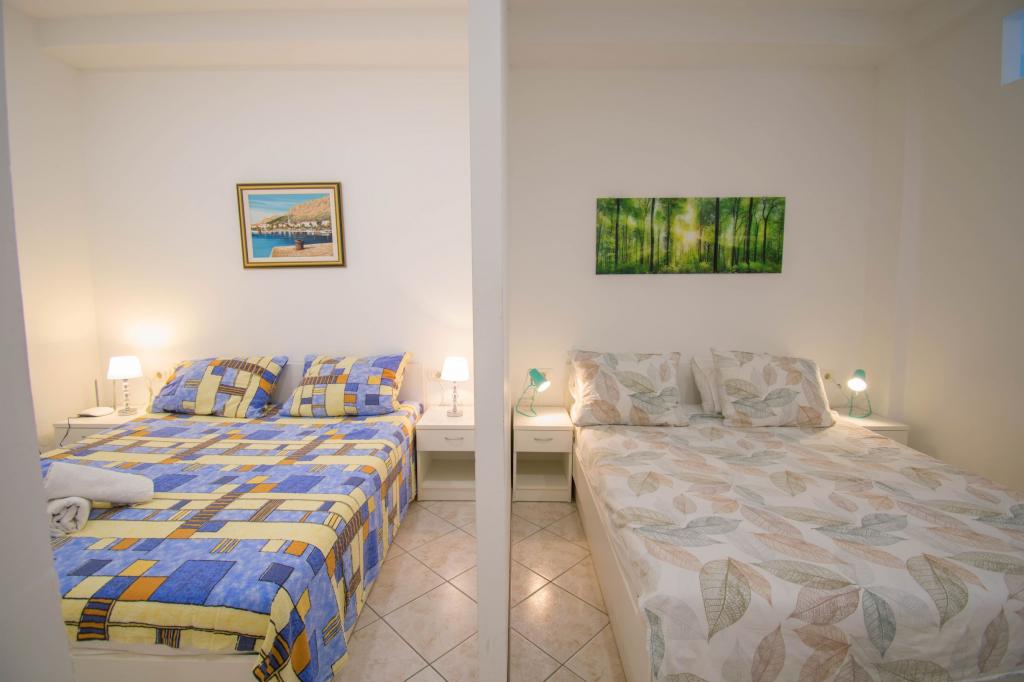 Smještajni objekt nalazi se u mirnom predjelu Baške Vode. Objekt se nalazi 3 minute hoda od centra i plaže. Restoran je udaljen 20 metara od smještaja. U blizini je trgovina, udaljenost 40 metara. Dva apartmana u prizemlju imaju pristup za osobe s invaliditetom. Parking uključen u cijenu. Mogućnost prijevoza od zračne luke do smještaja uz nadoplatu.