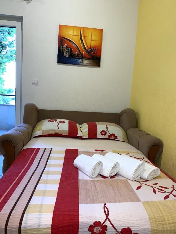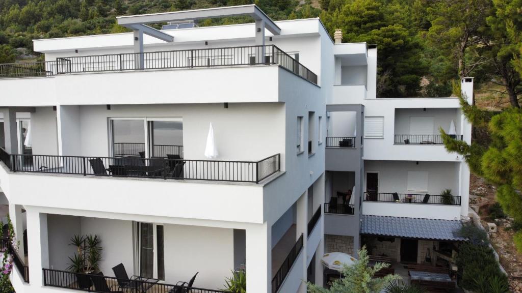 Naši apartmani se nalaze u mirnom dijelu Baške Vode, okruzeni borovom sumom sa prelijepim pogledom na more i otoke. To vam omogućava da u potpunom miru i opuštenoj atmosferi provedete svoj odmor.