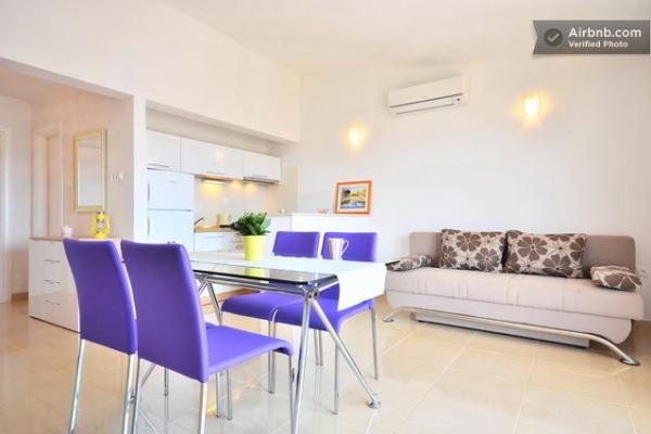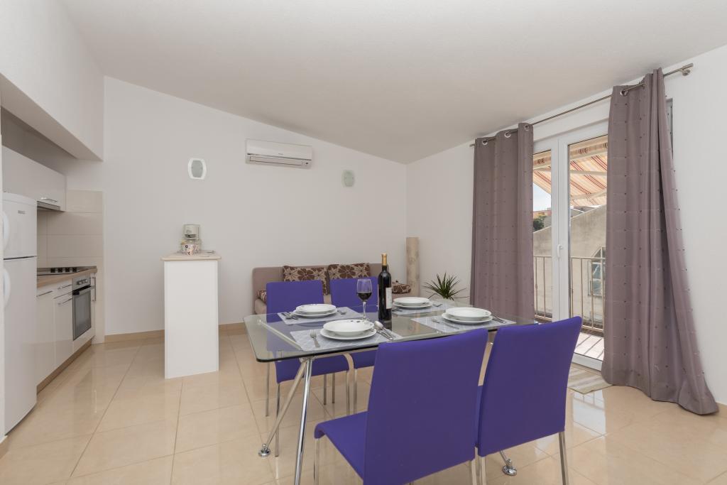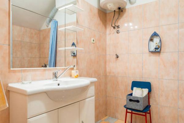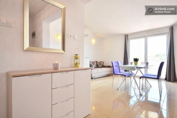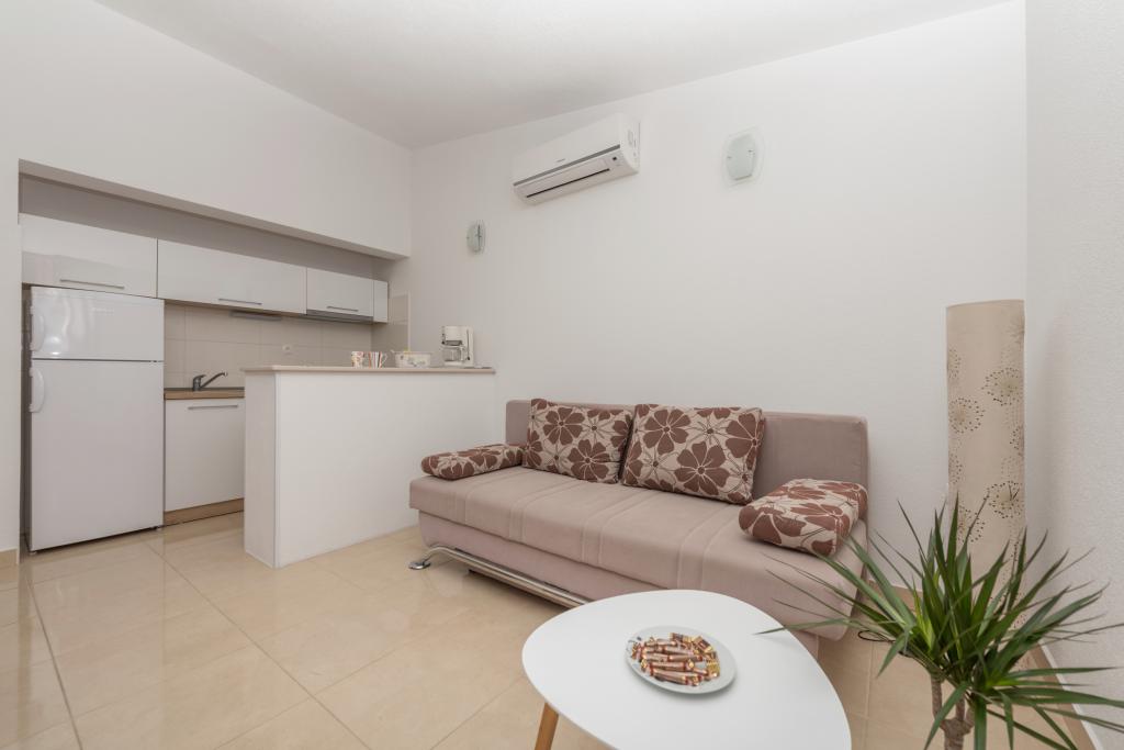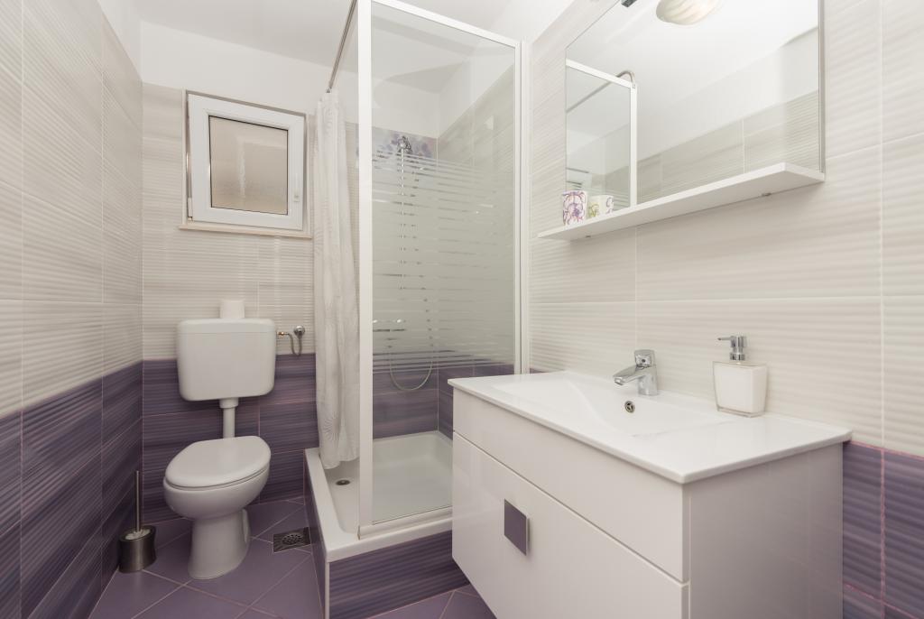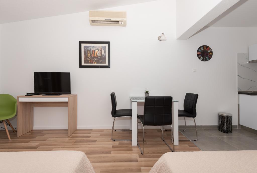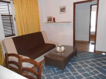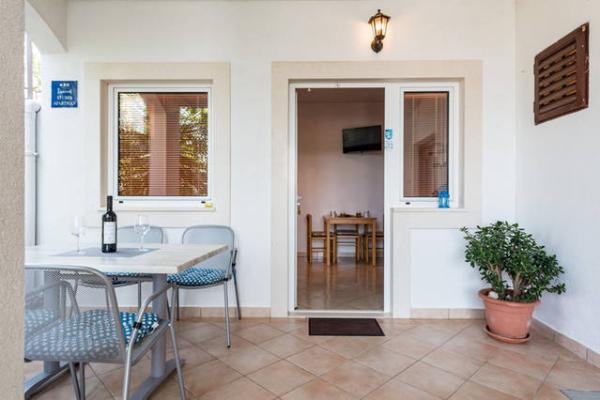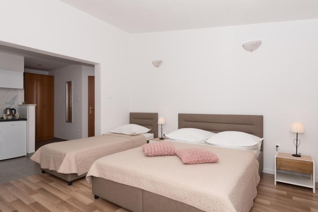 Klimatizirani apartmani sa pogledom na more, udaljeni samo 200m od glavne plaže, 4 minute šetnje APARTMAN2 2(a) LUXURY-, komforan. moderno uređen apartman-50 m2, zasebna spavaća soba sa king size-duplim krevetom i ležajem na razvlačenje za 2 osobe u dnevnom boravku. APARTMAN 4 1 sa 2 spavaće sobe veliki dnevni boravak sa ležajem na rasklapanje za 1-2 osobe. Pogodan za obitelji i parove. APARTMAN 3 komforan apartman za 2-3 osobe sa pripadajućim balkonom -spektakularni pogled na more i otoke. APARTMAN 2 2(b)klimatizirani apartman, poseban ulaz sa spavaćom sobom i krevetom za 2 osobe u dnevnom boravku. , pripadajuća sunčana terasa, te prostor za sjedenje ispred apartmanaPogodan za obitelj i parove. SOBA za 2 osobe-poseban ulaz, hladnjak, parking osiguran . U okruženju dostupnost restorana, dućana, ljekarna, doktor, plaža. Naši gosti imaju besplatno korištenje WI-fI, parking pored kuće, . . Posebnost smještaja -mediteranski vrt iza kuće sa solarnim tušem za osvježenje.