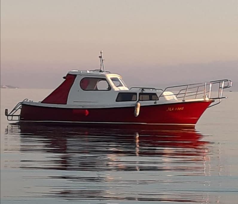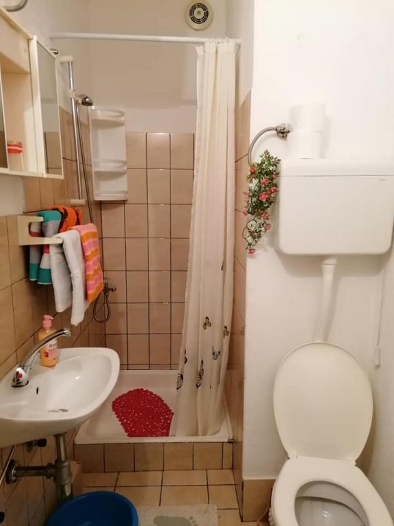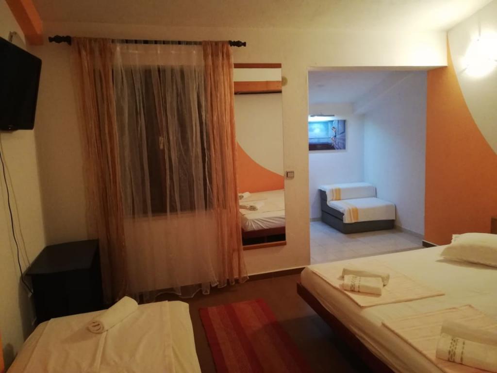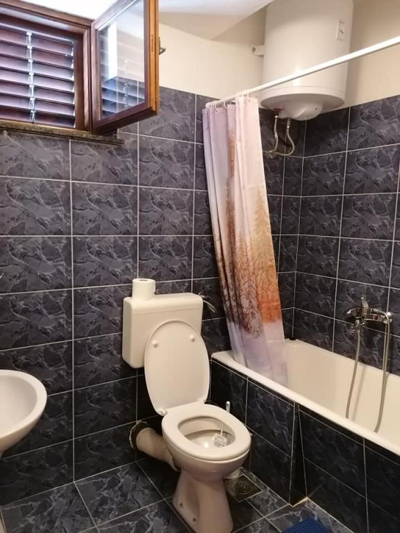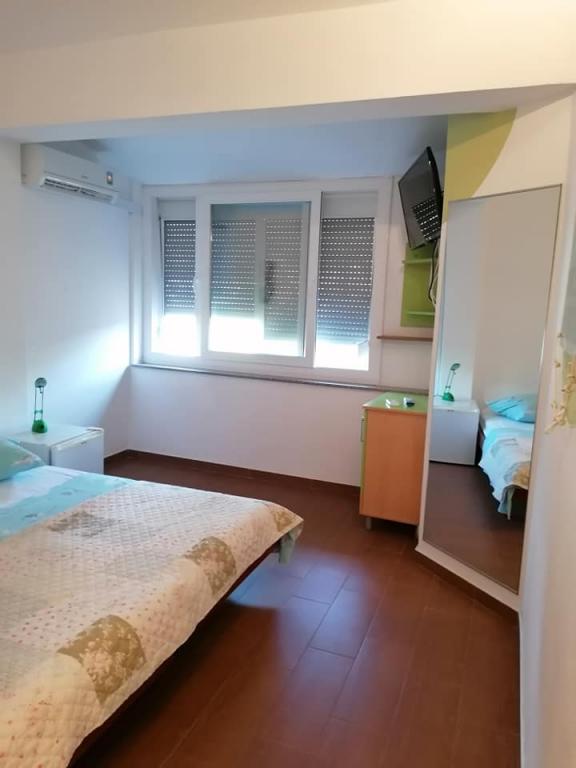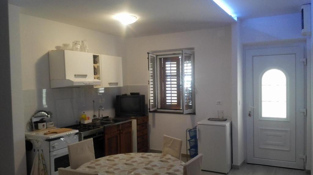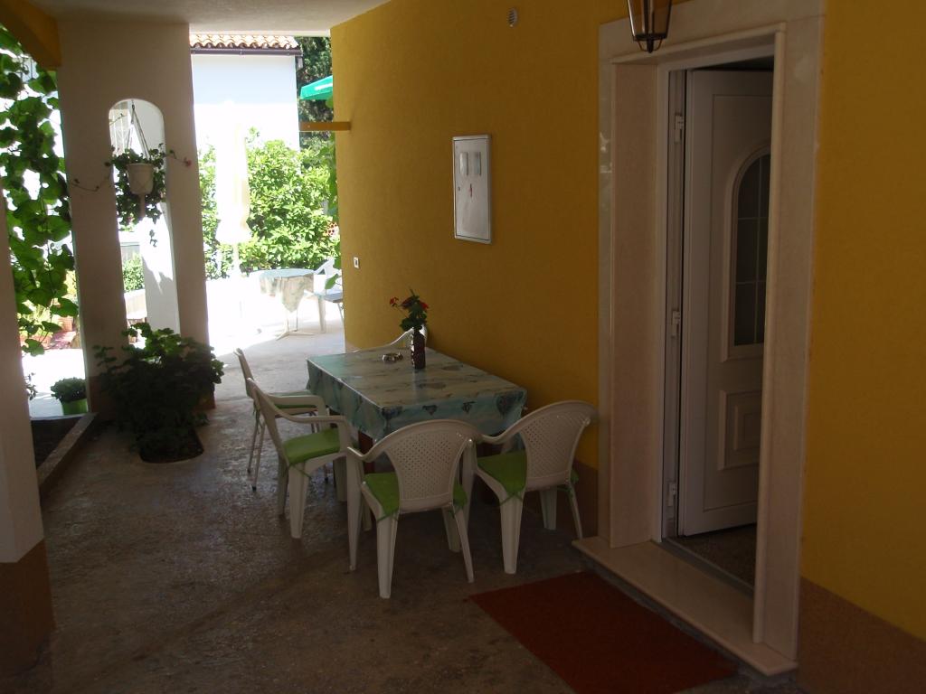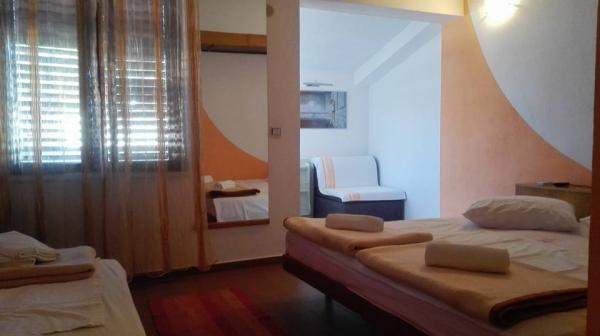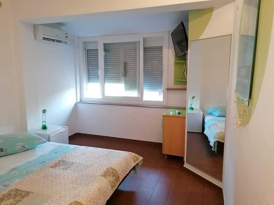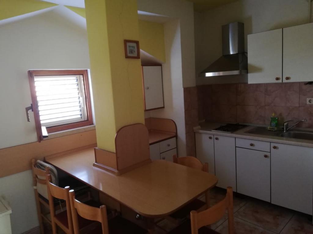 . Apartman, Smještajna jedinica je na prvoj etaži. Sadržaj: Dvije spavače sobe – jedna trokrevetna i jedna dvokrevetna – svaka soba ima svoj wc-tuš, tv, klimu, hladnjak. Apartman se sastoji još sa jednom kuhinjom i prostranom terasom /duž. 12 m/. Apartman je kompletno opremljen sa posteljinom, ručnicima, kuhinja sa komplet kuhinjskim servisom, wi-fi, rezervirani parking. Udaljenost od plaže je 150 m. Pošto se apartman nalazi u centru mjesta svi potrebni uslužni objekti kao; restorani, caffe bar, hoteli, razne terase, banka, pošta, ambulanta, itd…, se nalaze od 50 do max. 200 m. Gostu možemo dodatno ponuditi bicikle za rekreaciju, brod od 7 m sa skiperom za jednodnevne izlete na zanimljive destinacije i fishing kao i razne turističke informacije za vrijeme boravka. Domaćin na raspolaganju.
