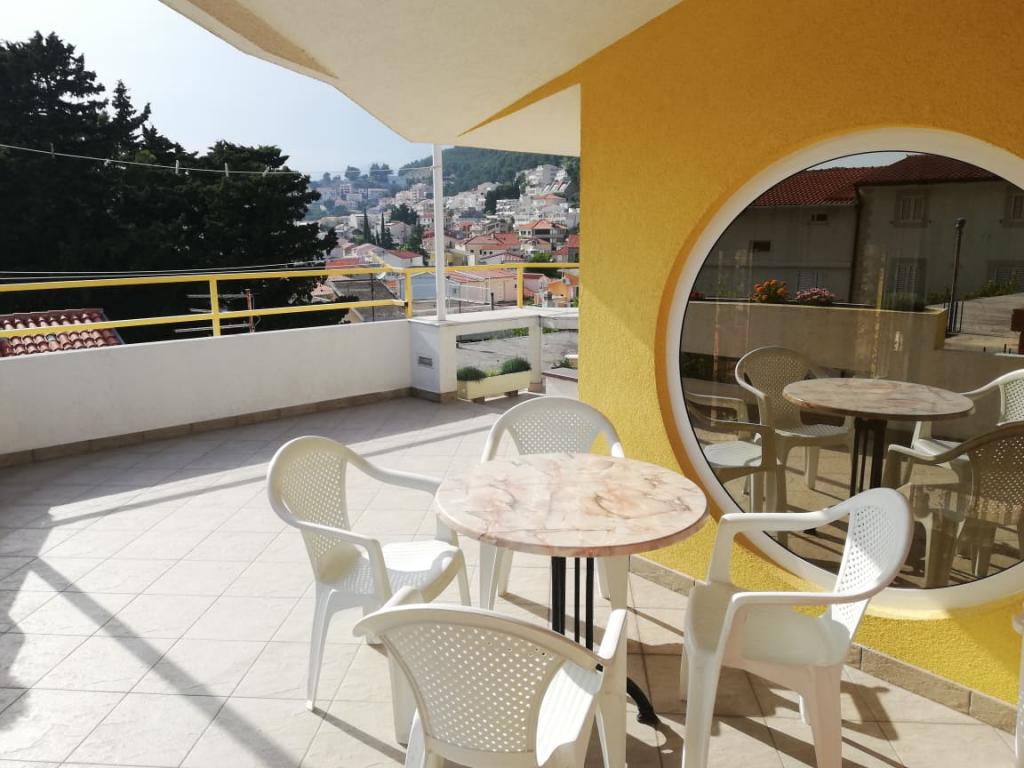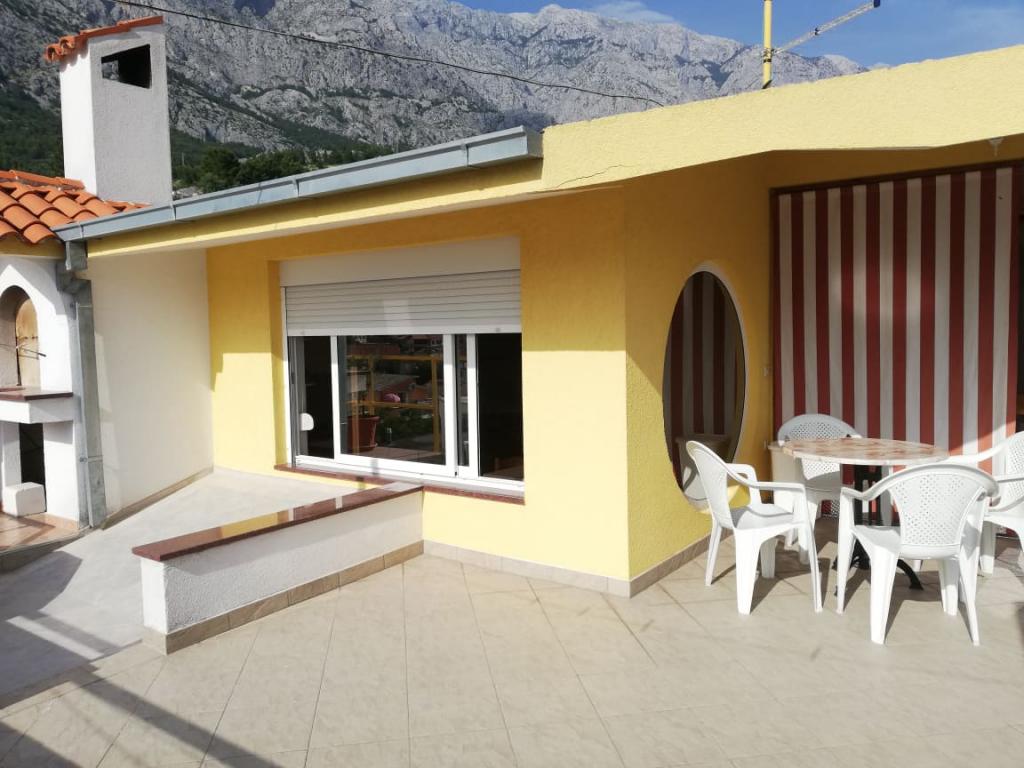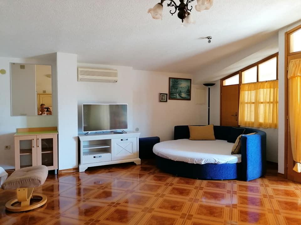 Penthouse - Za Vaš odmor nudim Apartman visokog standarda koji sadrži: jednu sobu sa bračnim krevetom, veliki dnevni boravak /6, 2x6, 1 m/ gdje je veliki okrugli ležaj za dijecu, jedno veliko kupatilo /4, 5m dugu/ i velika terasa /cca 6 x 8, 5 m/ sa juga na kojoj je grill, sve ukupno 100 m2. Zauzima cijelu etažu i druge osobe na dolaze tu. Nalazi se na drugom katu. Penthouse. Apartman je kompletno opremljen sa svim potrebnim za stanovanje: plahte, ručnici, kuhinjski servis za kuhanje i posluživanje, klima, wi-fi, tv, … rezervirani parking. Nalazi se u centru mjesta tako da su sve javne radnje u blizini od 50 do 200 m /restorani, marketi, caffe-bar, pošta, ambulanta, marina, hoteli i dr. , , , . Do plaže ima 150 m. Domaćin na raspolaganju.