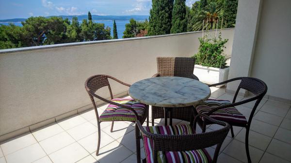 Apartmani „Prva maslina“ nude Vam odmor u mirnoj uvali u Baškoj Vodi. Prostrani su, komforni i svega 20 m udaljeni od šljunčane plaže. Opremljeni su posteljinom i ručnicima te osnovnim kuhinjskim posuđem. Za svaki apartman osiguravamo po jedno parkirno mjesto za automobil. Iza kuće na raspolaganju vam je velik roštilj. Zajedno s Vama dobrodošli su i Vaši kućni ljubimci.