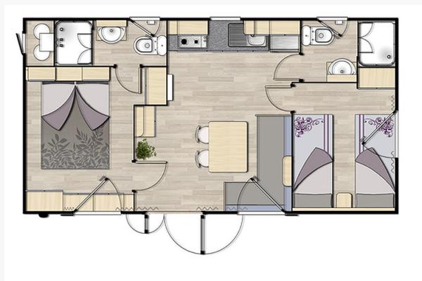 Bungalovi su smješteni u kampu Baško Polje na Makarskoj rivijeri. Ista je poznata po svojim mirisnim borovima, netaknutim šljunčanim plažama i kristalno čistom moru. Bungalov Resort ima sve pogodnosti za savršen odmor. Osim bistrom moru, čistom šljunčanom plažom i mirisnim borovima, resort ima i restoran i bar, restoran brze hrane, trgovinu mješovite robe, pekarnicu i veliko parkiralište. Obližnji gradovi Makarske, Baške Vode i Parka Prirode Biokovo pozivamo Vas na posjet. Bungalovi imaju dvije spavaće sobe (bračni krevet / dva kreveta), kuhinju s dnevnim boravkom i kaučom na razvlačenje za dvije osobe, dvije kupaonice s tušem, veranadu / terasu. Opremljeni su sa klima-uređajem, bezžičnim internetom i satelitskom televizijom.
