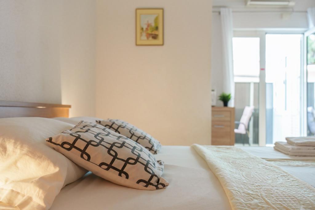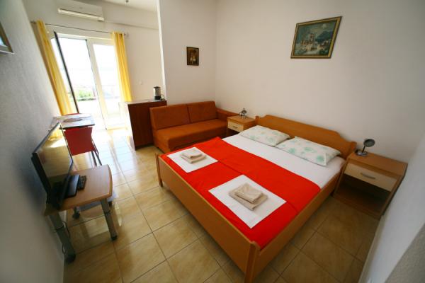 Kuca u mirnom dijelu mjesta u slijepoj ulici sa malo prometa. Udaljenost od plaze je oko 500m (oko 5-10 min hoda). Kuca ima vise apartmana koji su opremljeni za boravak 2, 3, ili 4 osobe. Svi apartmani su klimatizirani i savremeno opremljeni sa svim sto je potrebno za ugodan boravak. Godina gradnje je 2008. Vecina apartmana imaju pogled na more. Za sve goste su obezbijedjena mjesta za parkiranje. Boravisna Pristojba 1€ po osobi za dan Svi ostali troskovi su uracunati u cijenu