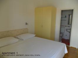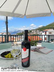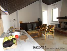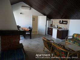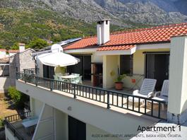 Kompletno i suvremeno opremljeni apartmani u samom centru Baške Vode, ali u potpuno mirnoj i tihoj/slijepoj ulici. Udaljenost od plaže, trgovina, centra svega 100 metara.