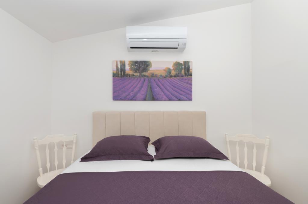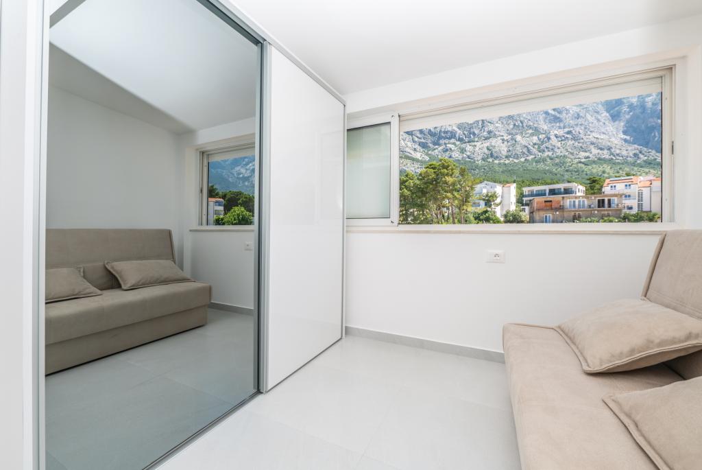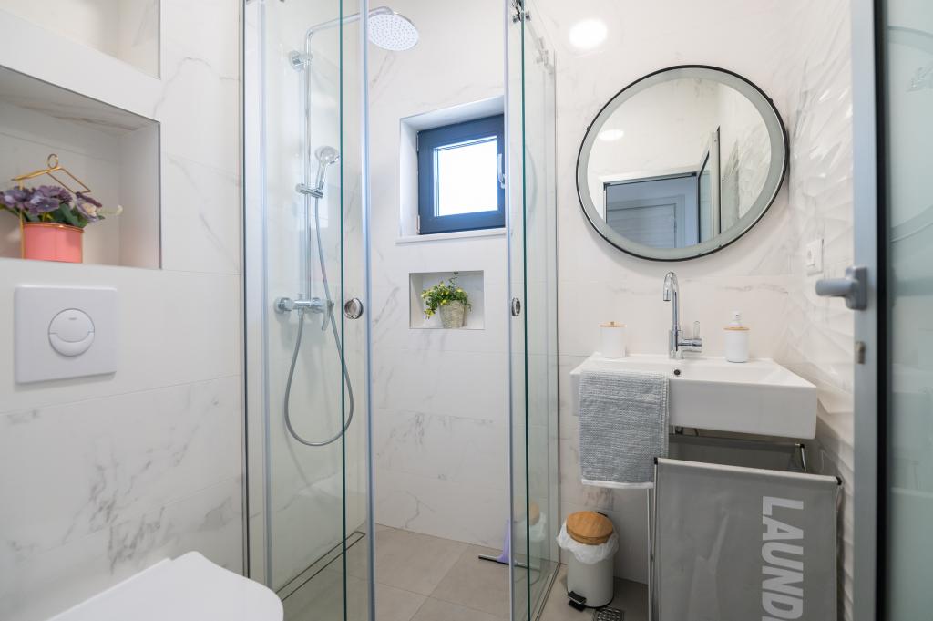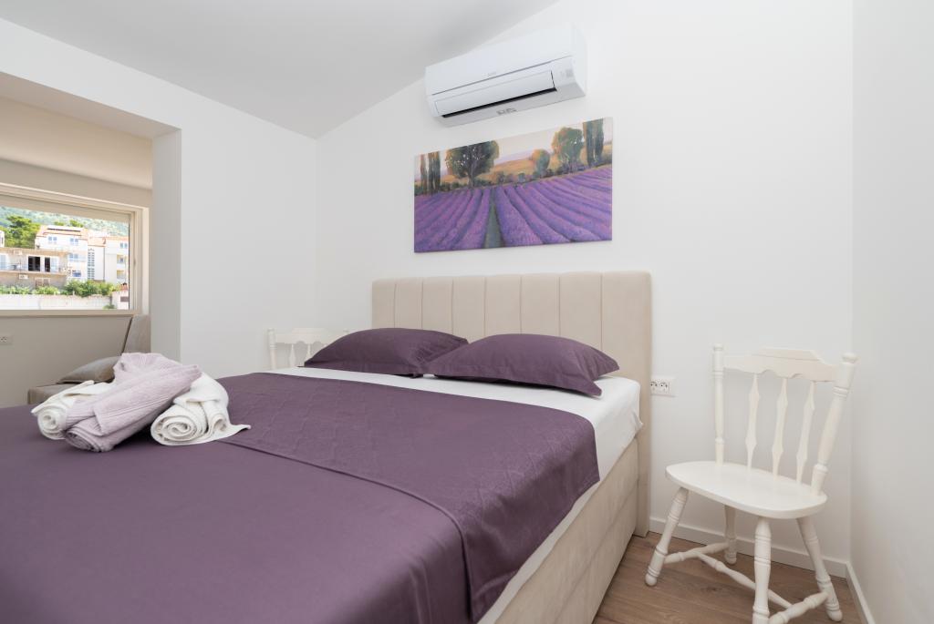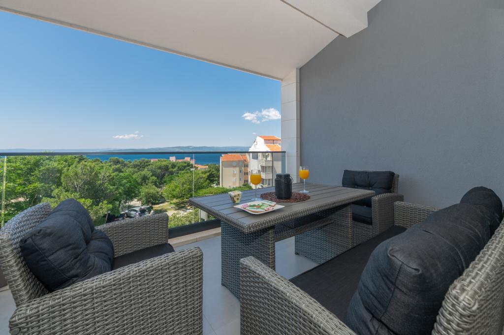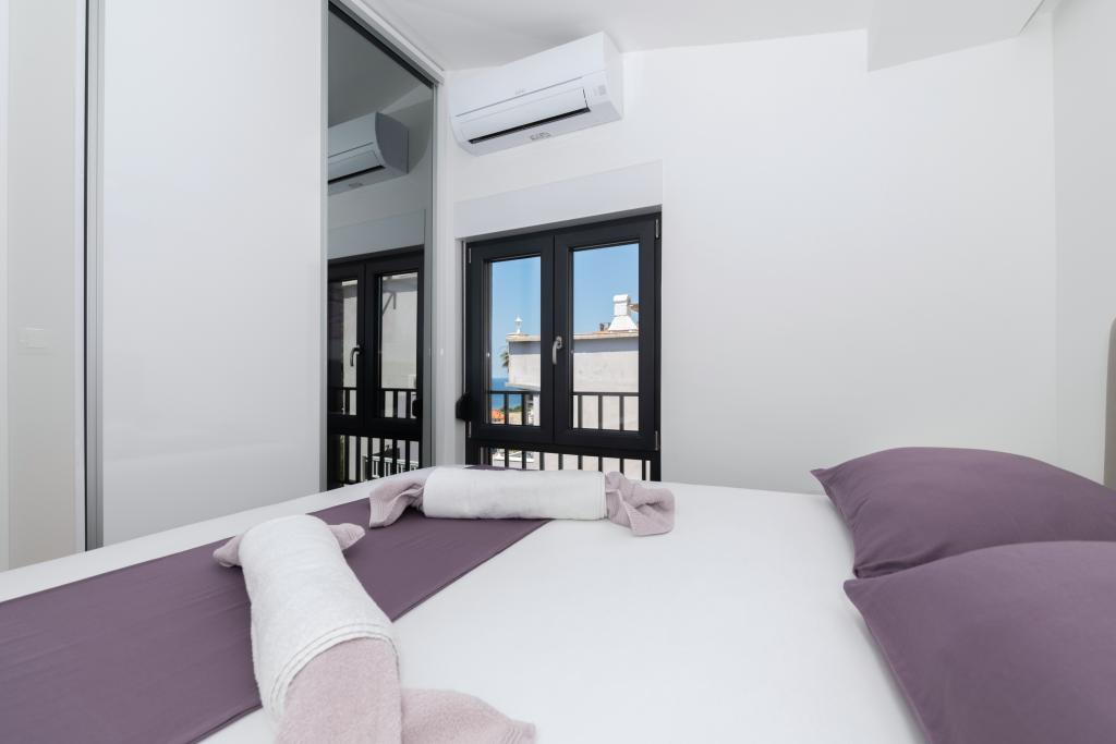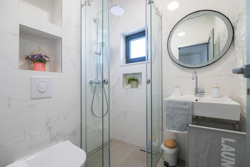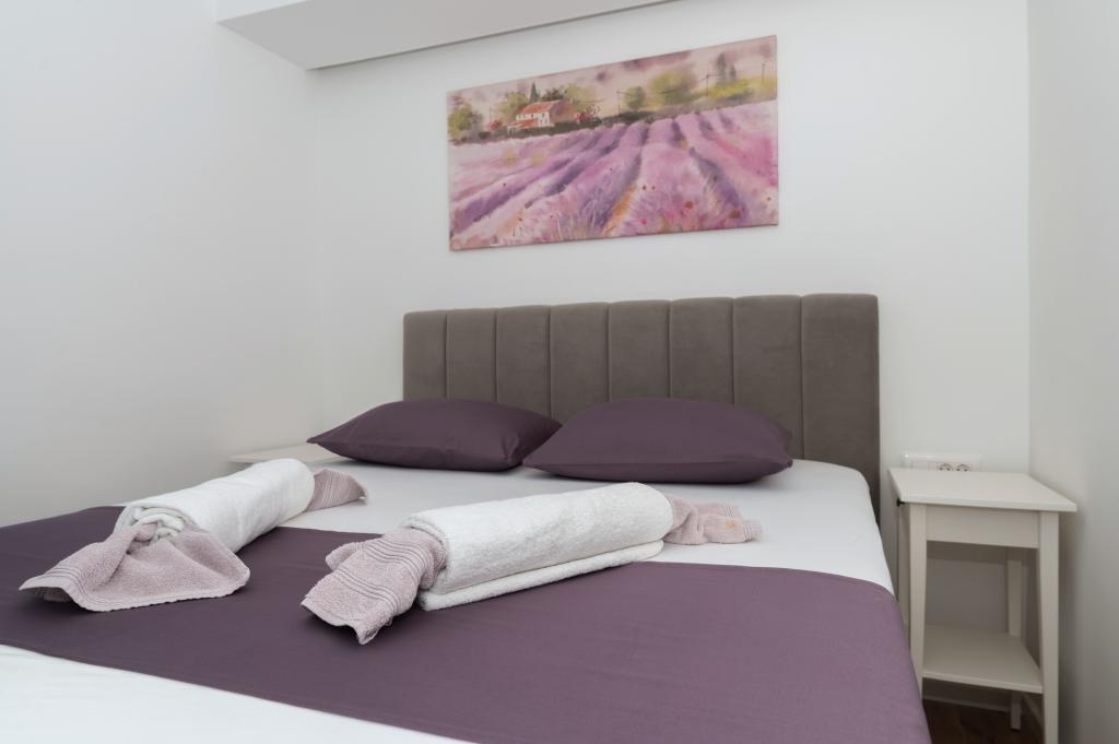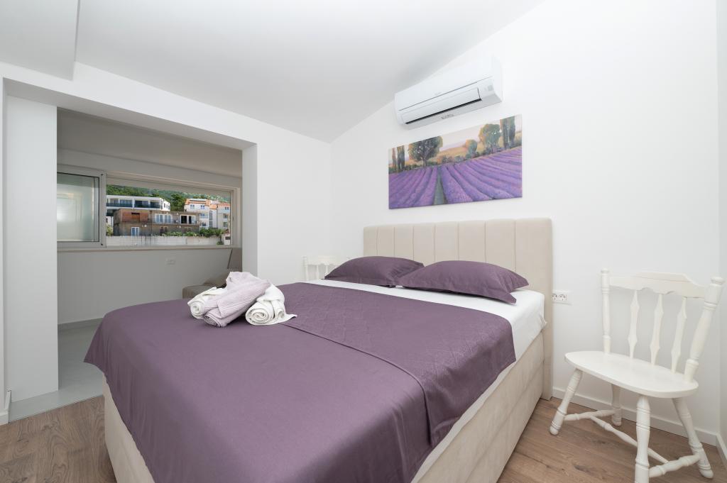 Apartmani su moderno opremljeni svim potrebnim sadržajima za ugodan boravak. Parovi ili obitelji jednako će uživati u udobnost apartmana. Terasa s pogledom na more opremljena je garniturama za sjedenje. Objekt je smješten u blizini pekarnice, supermarketa i raspolaže privatnim besplatnim parkingom. Udaljenost od mora, plaže i svih sadržaja je 500m. Naši gosti su uvijek zadovoljni ponudom i položajem apartmana! Dobrodošli!
