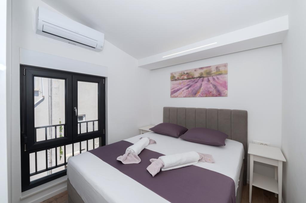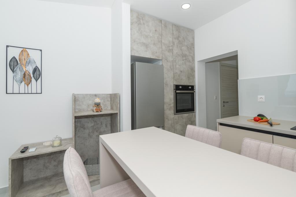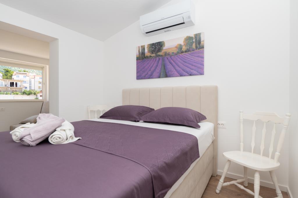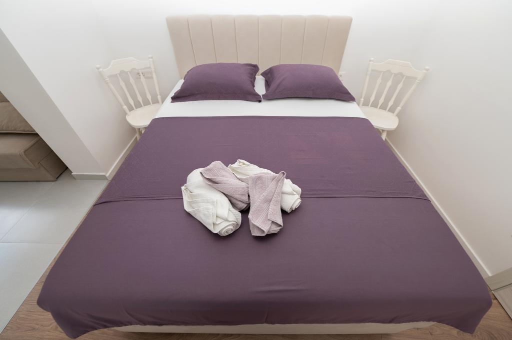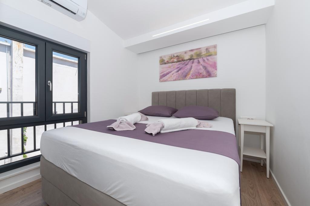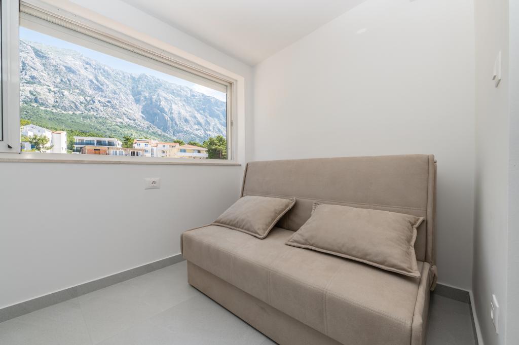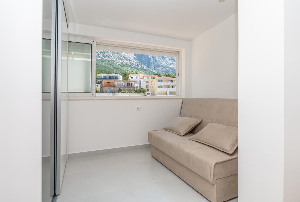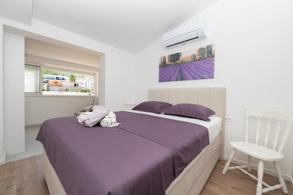 Apartmani su moderno opremljeni svim potrebnim sadržajima za ugodan boravak. Parovi ili obitelji jednako će uživati u udobnost apartmana. Terasa s pogledom na more opremljena je garniturama za sjedenje. Objekt je smješten u blizini pekarnice, supermarketa i raspolaže privatnim besplatnim parkingom. Udaljenost od mora, plaže i svih sadržaja je 500m. Naši gosti su uvijek zadovoljni ponudom i položajem apartmana! Dobrodošli!