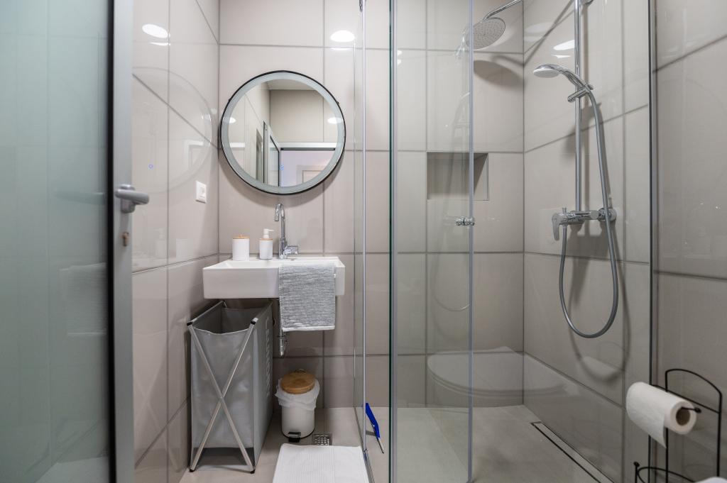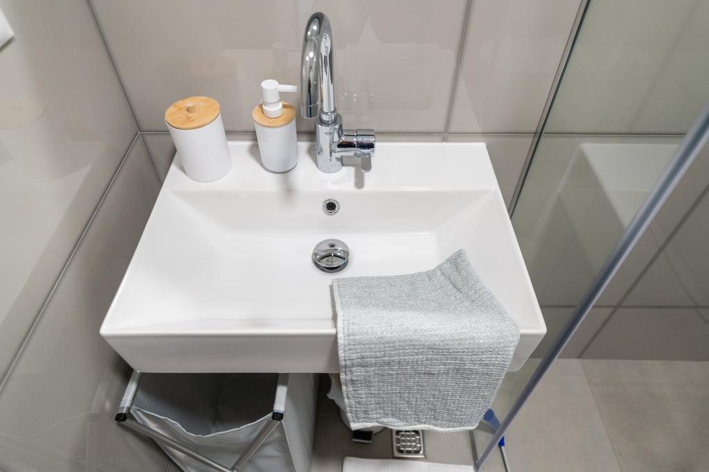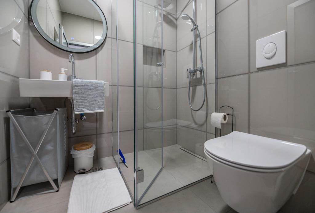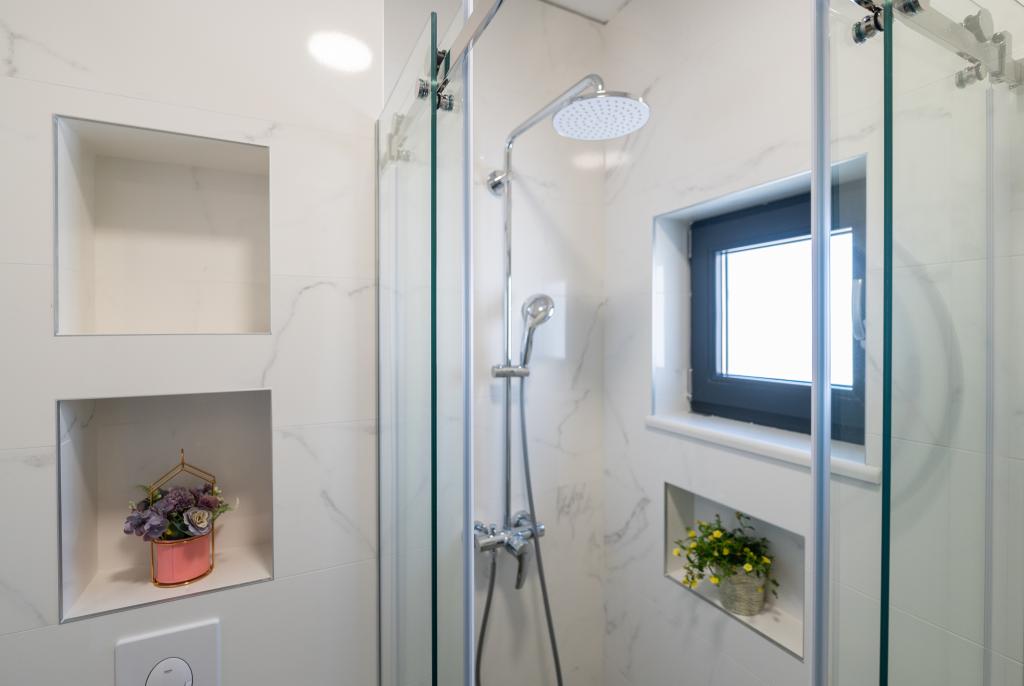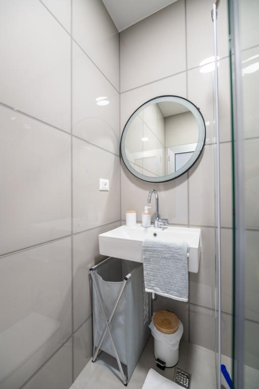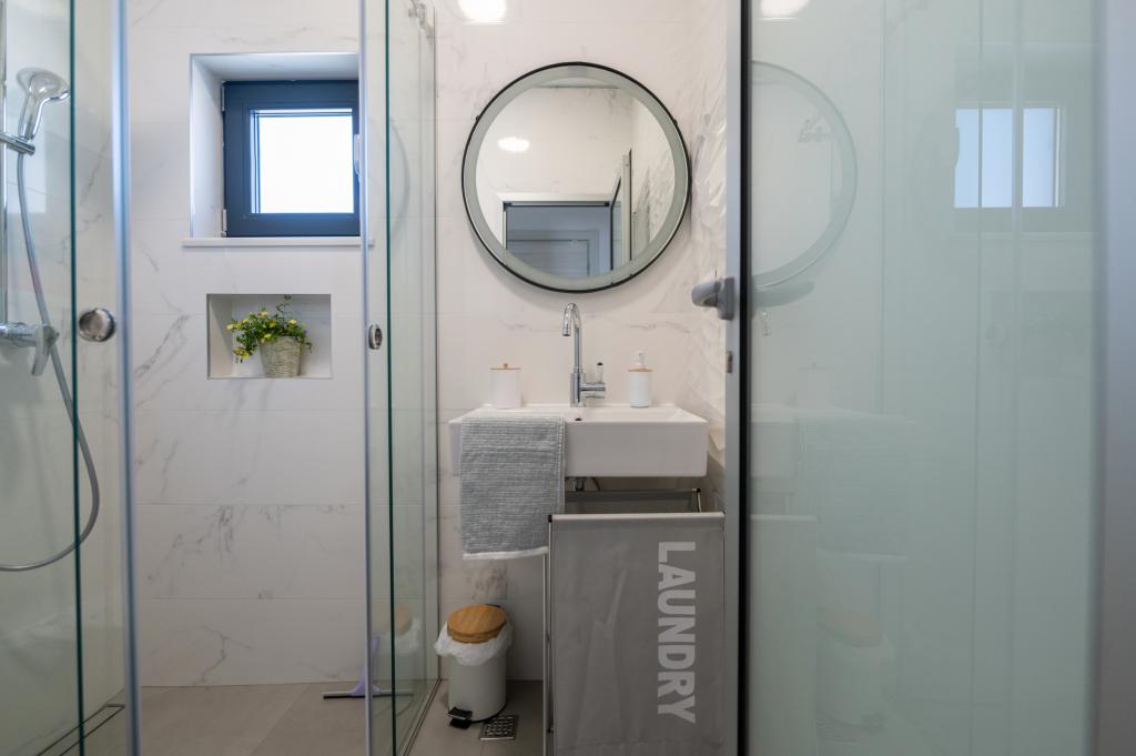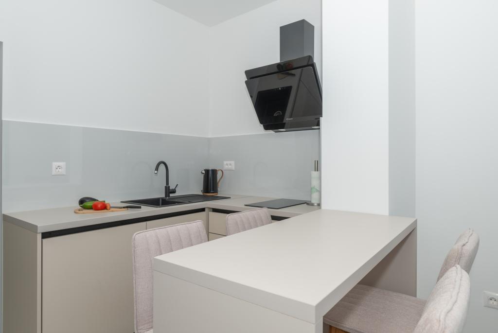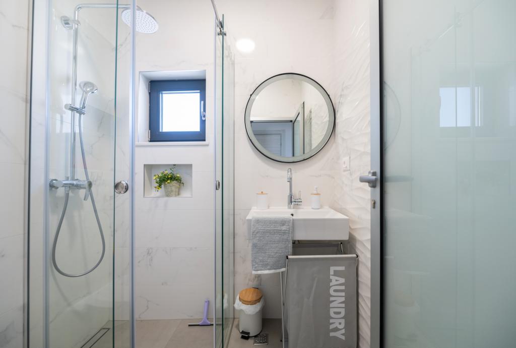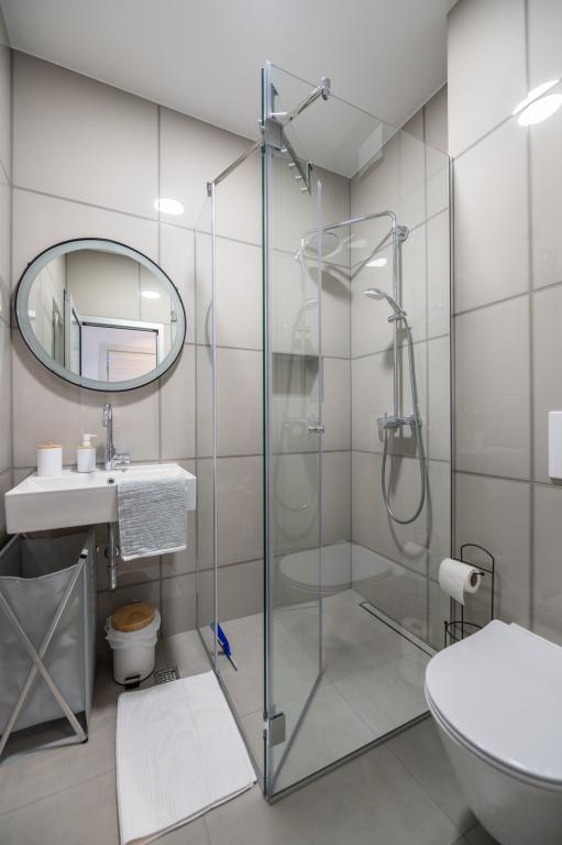 Apartmani su moderno opremljeni svim potrebnim sadržajima za ugodan boravak. Parovi ili obitelji jednako će uživati u udobnost apartmana. Terasa s pogledom na more opremljena je garniturama za sjedenje. Objekt je smješten u blizini pekarnice, supermarketa i raspolaže privatnim besplatnim parkingom. Udaljenost od mora, plaže i svih sadržaja je 500m. Naši gosti su uvijek zadovoljni ponudom i položajem apartmana! Dobrodošli!