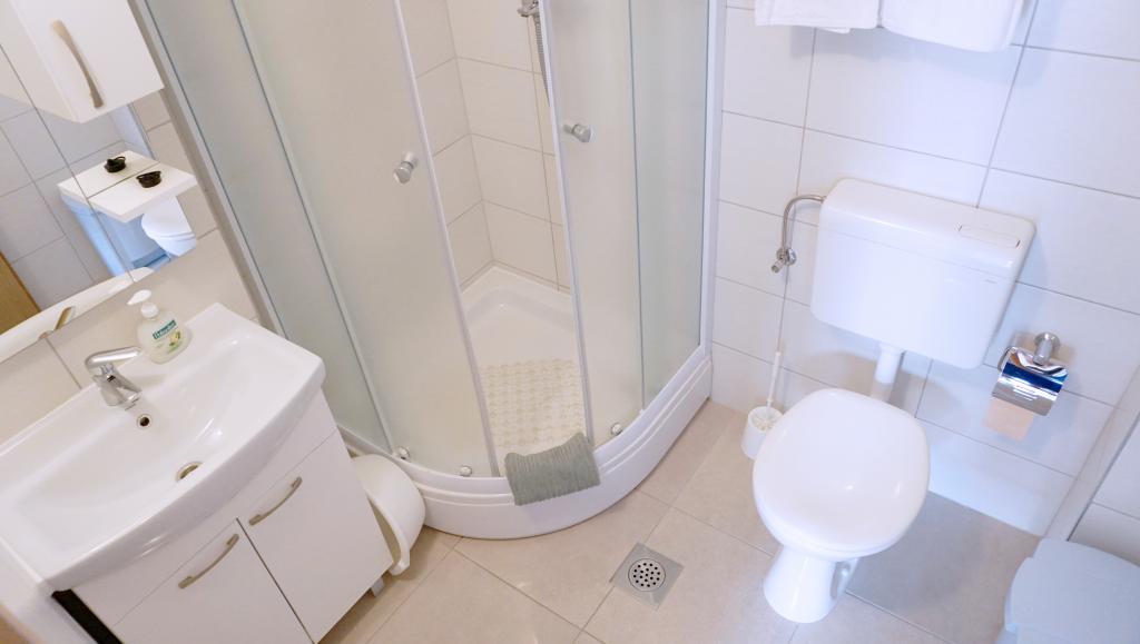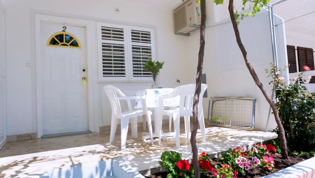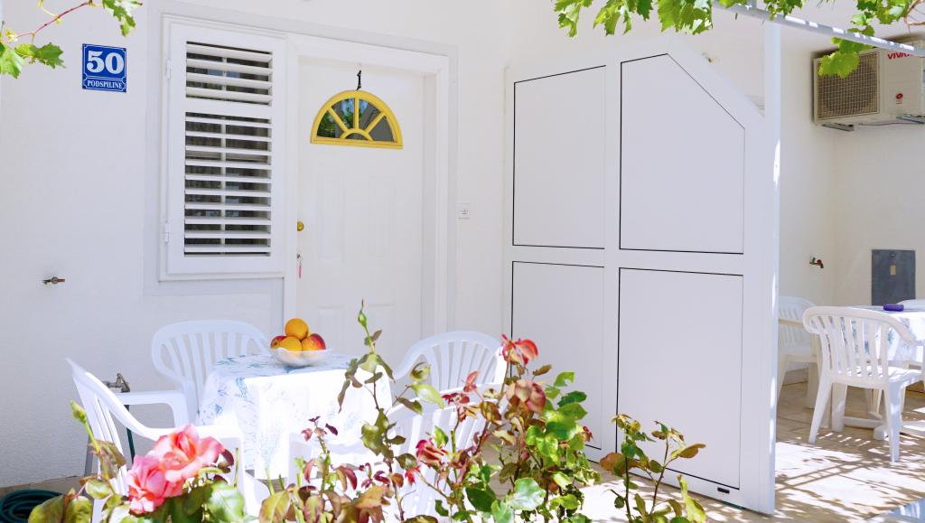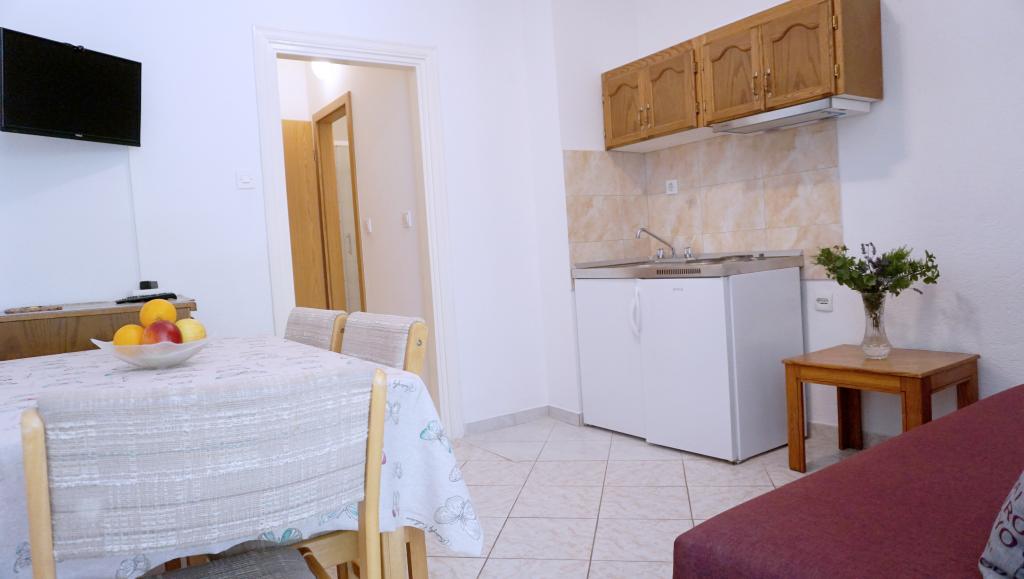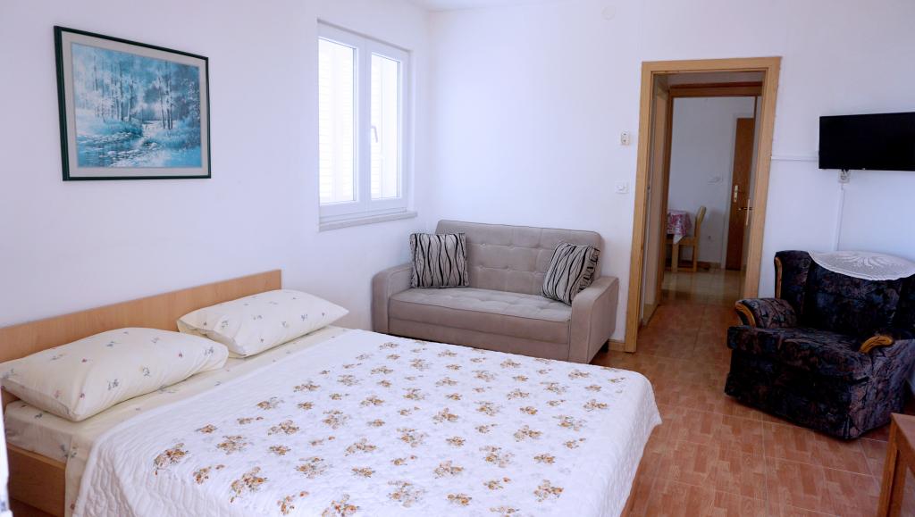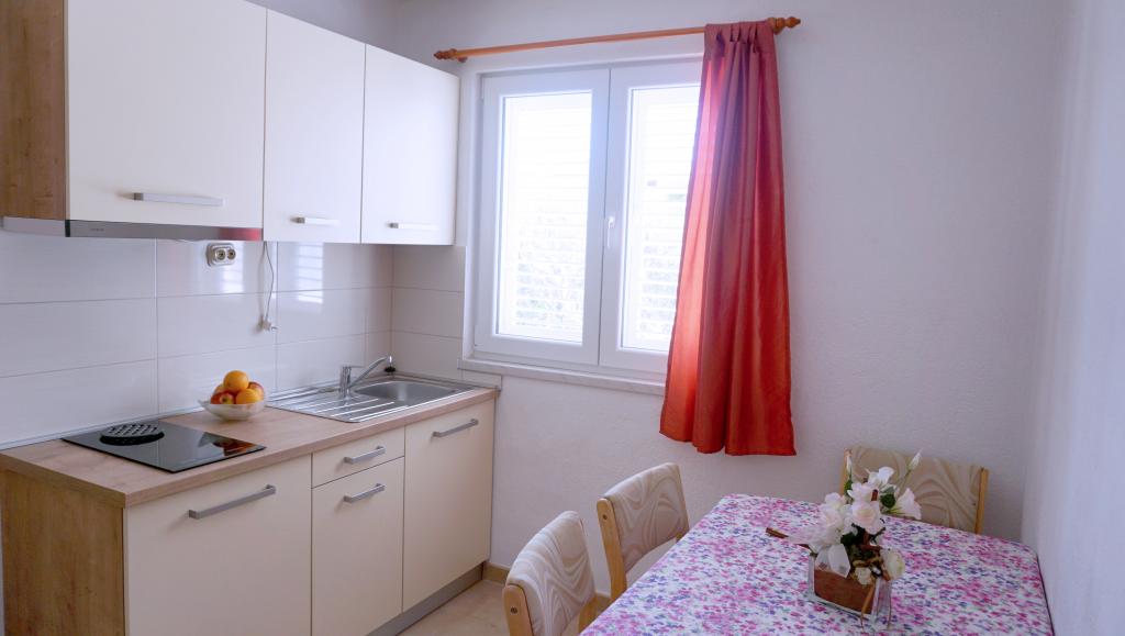 Apartmani su potpuno opremljeni, kupaonice/WC su upravo renovirani. Veliki apartman za 6+1 osobu posjeduje dvije kupaonice/WC-a i pogodan je za brojnije obitelji. Svi apartmani imaju terase/balkone sa predivnim pogledom na more. Imamo dovoljno parkirnih mjesta za sve naše drage goste, u cijeni smještaja nudimo i mogućnost uporabe bazena i roštilja.