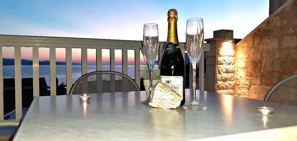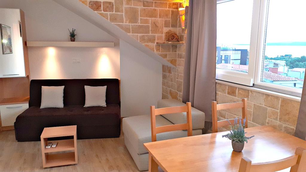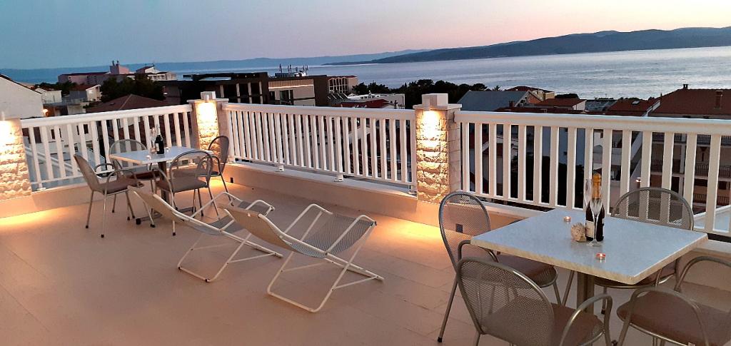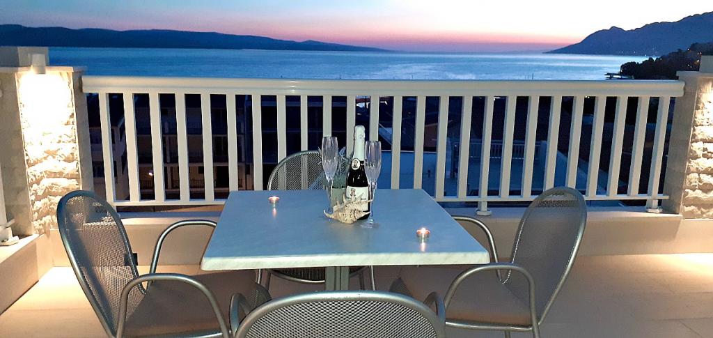 Prekrasna villa sa luksuzno opremljenim apartmanima i prekrasnim terasama u mirnom djelu Baške vode blizu plaže i centra.