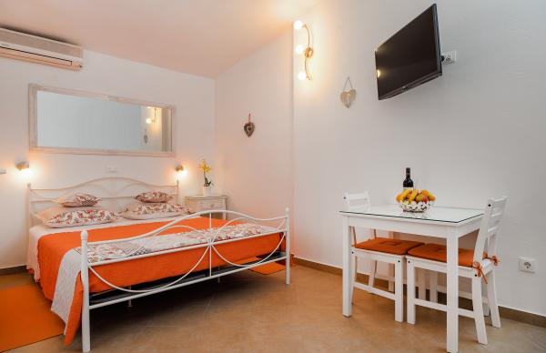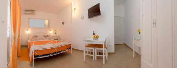 Bili smo u studio apartmanu za 2 osobe. Apartman je vrlo lijepo opremljen sa stilom i dozom romantike ... na odličnoj lokaciji u blizini glavne plaže. Vlasnici su ljubazni i ljubazni, a oko kuće je prekrasan vrt i parkirno mjesto u hladu. Do sada je ovo najljepši stan u kojem smo bili ... i nemam komentara. Nadam se da ćemo se ponovno vidjeti sljedeće godine.