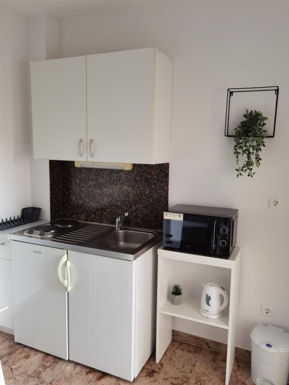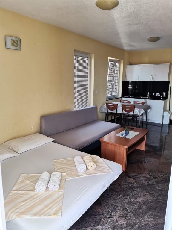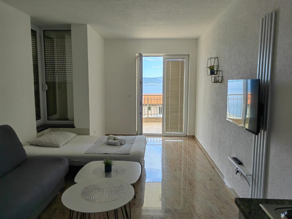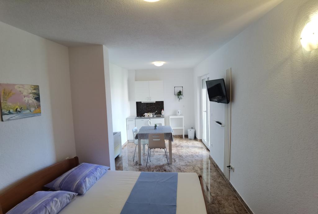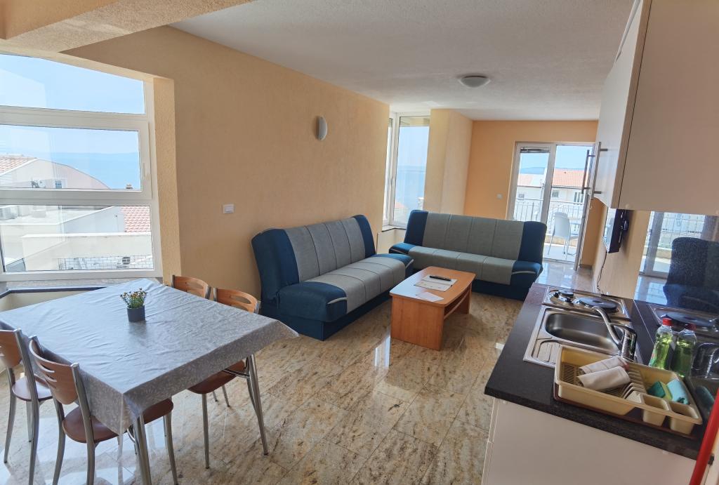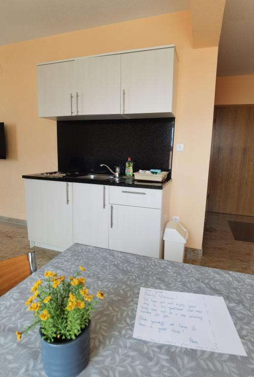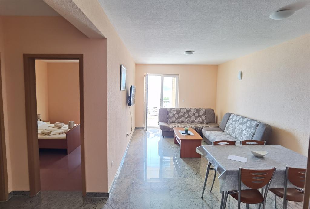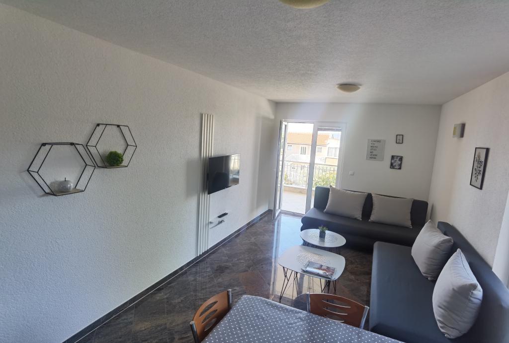Apartman je bio prekrasan: prekrasan pogled na more, prostrane sobe, vrlo dobro opremljena čajna kuhinja i veliki balkon. Apartman je bio nevjerojatno čist - nije bilo ni trunčice prašine. Vlasnik je bio vrlo ljubazan. Uspjeli smo se prijaviti ranije - prije prijave - nakon što je apartman bio očišćen od prethodnih gostiju. More je direktno na plaži, ali najbliži pristup je nažalost puno stepenica, ali možete se spustiti ravno do plaže i šetnice s restoranima i drugim sadržajima.