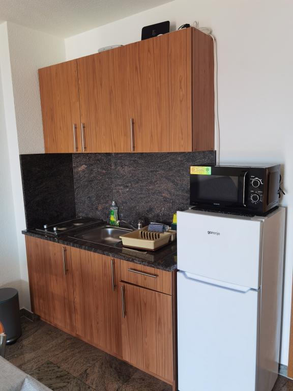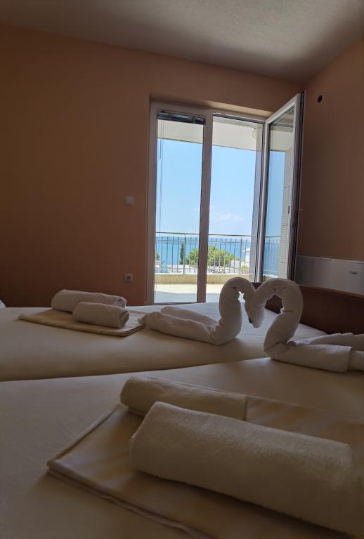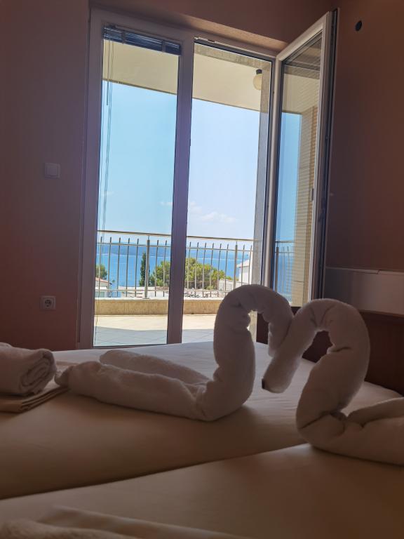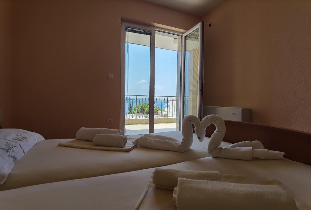 Zdravo. Potvrđujem vrlo dobra mišljenja. Bio sam s obitelji od 4 osobe. Ovozemaljske stvari. Cijena za ponudu je vrlo atraktivna. Ispod hotela nalazi se parking. Klima uređaj trenutno hladi. Postoji dovoljno čajna kuhinja. Cijeli hotel je čist i renoviran - obložen granitom. Sve radi kako treba. Veliki balkon. Postoji praonica - osoblje će oprati rublje ako tražite. Vlasnici su lijepi i ljubazni. Atrakcije: Prekrasni pogledi noću i danju - more odozgo, mjesec na nebu i u vodi, te planine u blizini. Silazak do plaže je direktno nizbrdo - bolji je nego što pokazuju karte. To je dobra polazna točka - blizu plaže i glavne ceste, mirno područje. Posjetio sam Bašku Vodu, Omiš i Brela, a također i Promajnu ili Makarsku. Tamo je prekrasan kraj. Preporučam: Baszka Woda - pogled na planine, more, plažu Nicola za ljenije i šetnicu, pogotovo navečer kad se upale svjetla, ima dućana i barova, ima pub s glazbom za ples i plesni podij. Preporučam krstarenje Bibom za one koji imaju puno energije - odlična atmosfera, glazba, zabava, pogotovo na povratku - možete sresti jako drage ljude. Poslijepodne izlet u Omiš. Za one aktivnije - pješačka šetnja plažama - ipak nedovoljno za oči, od plaže Nicola do plaže La bomba. Za ljubitelje ronjenja preporučam Brela i plaže Podrače, okolicu Brela i kamena LaBomba, gdje osim kupanja možete i skočiti u vodu, gastronomija je na dohvat ruke - najbolje se odvesti do privatnog parkiralište. Moglo bi se nabrajati u nedogled, na primjer: šarmantne plaže između Baške votke i Promajne. Preporučam smještaj i okolicu. Bilo je tužno otići.