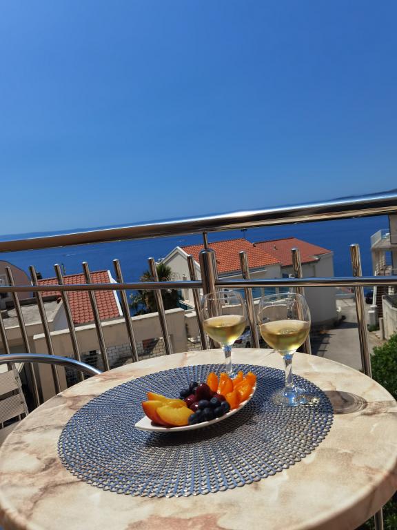 Villa Marić nalazi se u mirnom dijelu Baške Vode,200 metara od mora. Iz vile se pruža prekrasan pogled na more,otoke i okolne planine. U blizini se nalaze tržnica, restorani i kafići. Prostrani apartmani sastoje se od dvokrevetne spavaće sobe, kupatila, kuhinje, blagovaonice i dnevne sobe. U dnevnoj sobi nalazi se kauč na razvlačenje. Suvremeno opremljeni apartmani Vaš boravak čine ugodnijim :SAT TV, WiFi, klima uređaji i potrebni kuhinjski pribor,te terasa sa prekrasnim pogledom na more. Ispred vile nalazi se prostrani parking. Parking u garaži je moguće osigurati na zahtjev uz nadoplatu. Mirno okružje oko kuće osigurava mir od ulične buke i sigurnost djeci. Na usluzi je uvijek ljubazno osoblje. Želimo Vam srdačnu dobrodošlicu uz želju da se osjećate kao doma. Nadamo se ćete uživati u našim apartmanima i da ćete u Baškoj Vodi nezaboravno uživati! Radujemo se Vašem dolasku!