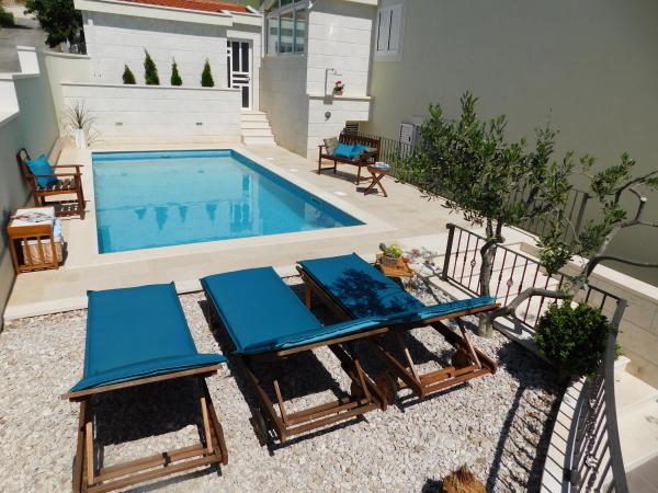 Kuća se nalazi u malom naselju Bast, podno parka prirode Biokovo, 10 km zapadno od Makarske i 3 km iznad Baške Vode. Villa Biston je okružena prirodnim ljepotama i ujedno pruža panoramski pogled na more, te otoke Brač i Hvar. Suvremeno je opremljena sa puno sadržaja za ugodan obiteljski odmor (SAT TV, Smart TV, DVD uređaj, Internet, klima uređaj, centralno grijanje, perilica rublja, perilica posuđa, mikrovalna, kuhalo za vodu, aparat za kavu, glačalo itd. ). Kuća ima dvije etaže sa četiri spavaće sobe, četiri kupaonice, terasu sa pogledom na more, dvije kuhinje u kući i ljetnu kuhinju s roštiljem u vrtu. U prizemlju ima dvokrevetnu sobu, dnevni boravak, kuhinju i kupaonicu. Na prvom katu su dvije spavaće sobe s bračnim krevetom i jedna spavaća soba s dva kreveta za jednu sobu, dnevni boravak, terasa, kuhinja i tri kupaonice. Okućnica je ograđena, a unutar nje se nalaze terasa, roštilj, ljetna kuhinja, vrt s mediteranskim biljem i otvoreni bazen veličine 25 m2.