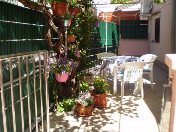 Apartman je ugodan i vrlo čist. Nalazi se u blizini mora i pješačke zone s brojnim trgovinama, pekarom i raznim ugostiteljskim objektima s pristupačnim cijenama. Ispred apartmana nalazi se uređena terasa u hladu vinove loze, okružena prekrasnim hortenzijama. Domaćini su izuzetno ljubazni i uslužni.