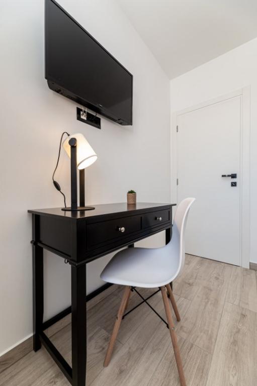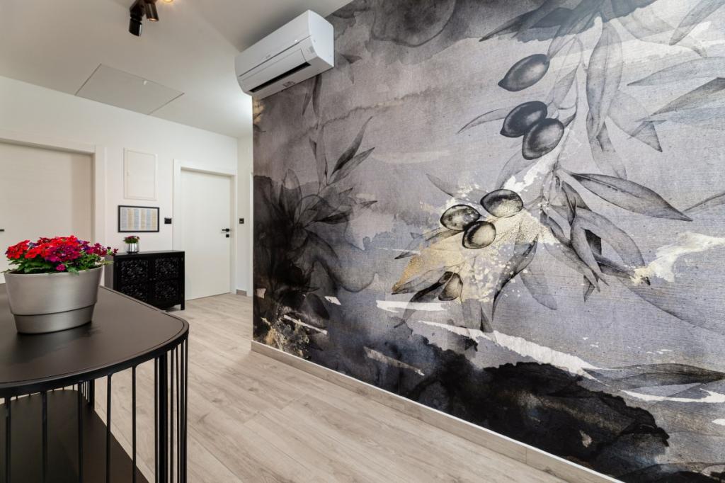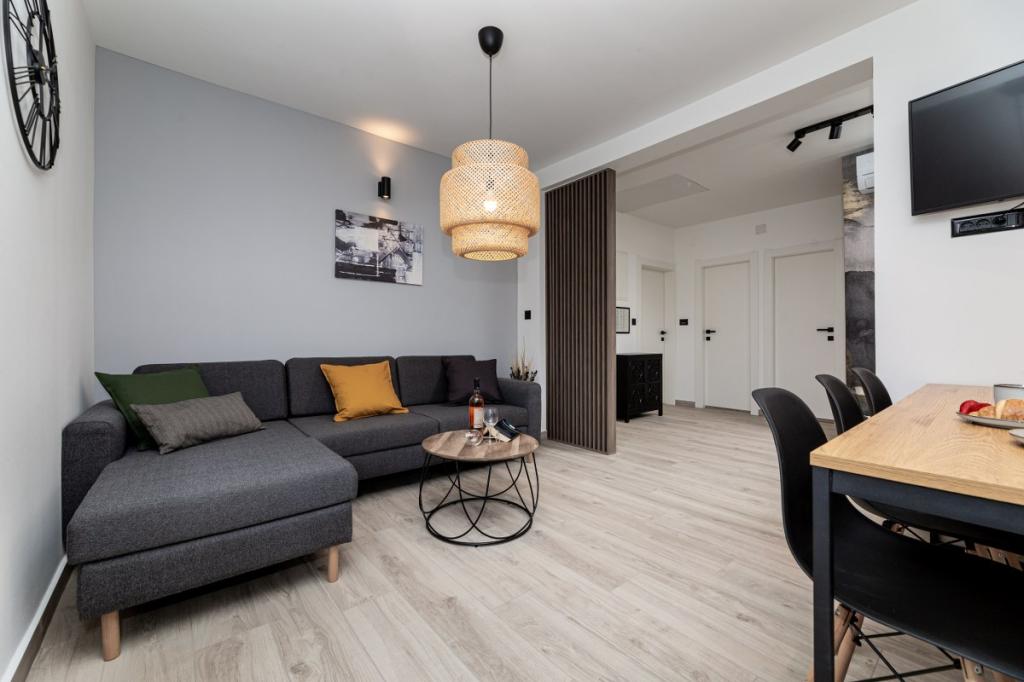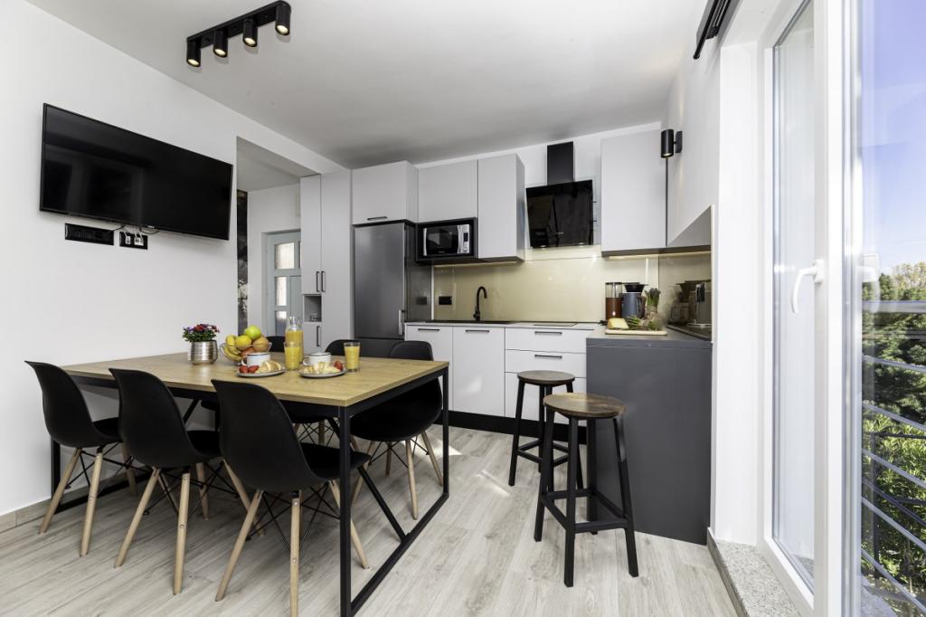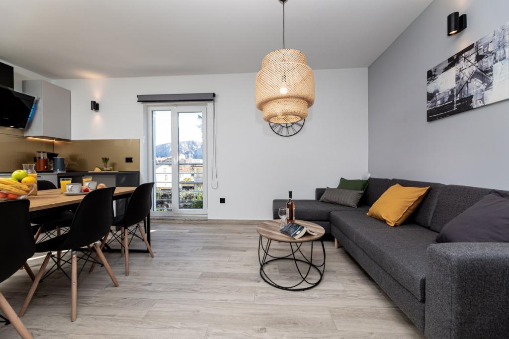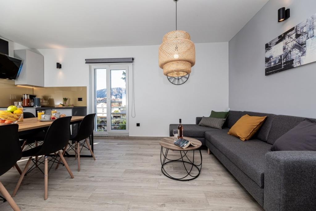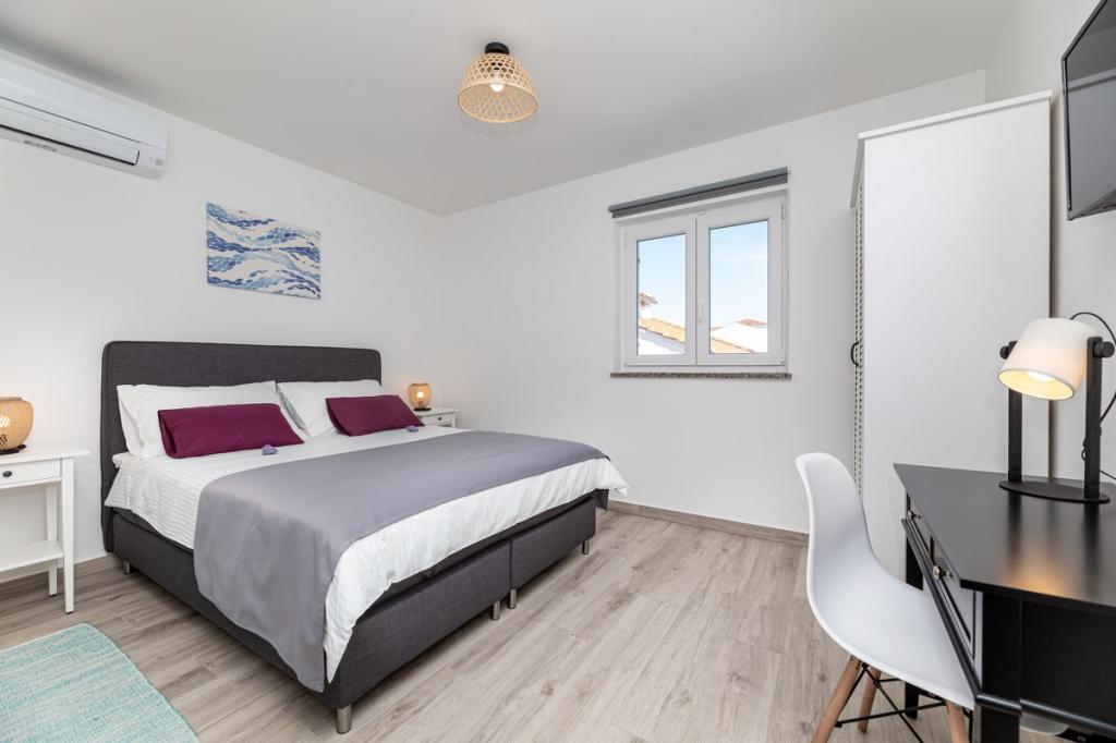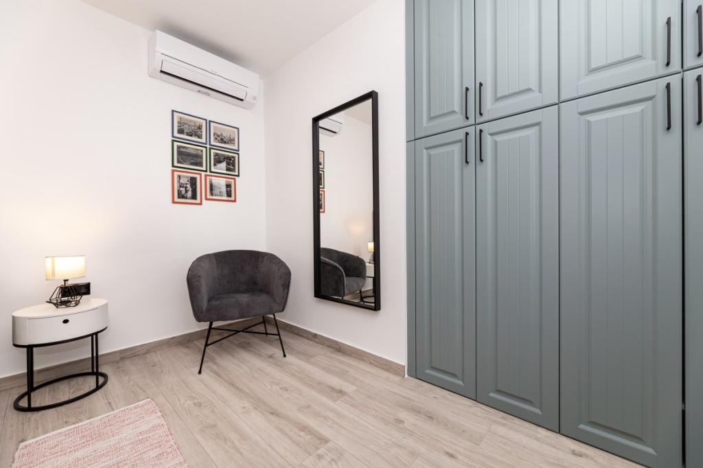 Moderno uređen apartman u mirnom predjelu, udaljen cca 200 m od mora. Nalazi se na 1. katu obiteljske kuće. Objekt se nalazi 5 do 10 minuta hoda do plaže ili centra mjesta, te posjeduje 2 parkirna mjesta. Apartman se sastoji od 3 dvokrevetne spavaće sobe od kojih su 2 sa balkonom. Svaka soba je klimatizirana i ima SAT TV i fen. Kuhinja opremljna hladnjakom, ledenicom, perilicom suđa, pločom za kuhanje, mikrovalnom pećnicom, mašinom za filter kavu, kuhalom za vodu, tosterom te svim potrebnim posuđem. Dnevni boravak je također klimatiziran i ima SAT TV. Apartman ima 2 kupaone sa tuš kabinom. WI FI uključen u cijenu. Apartman posjeduje i vrtnu terasu sa garniturom za sjedenje i grillom. Želimo vam ugodan boavak u našem apartamanu.